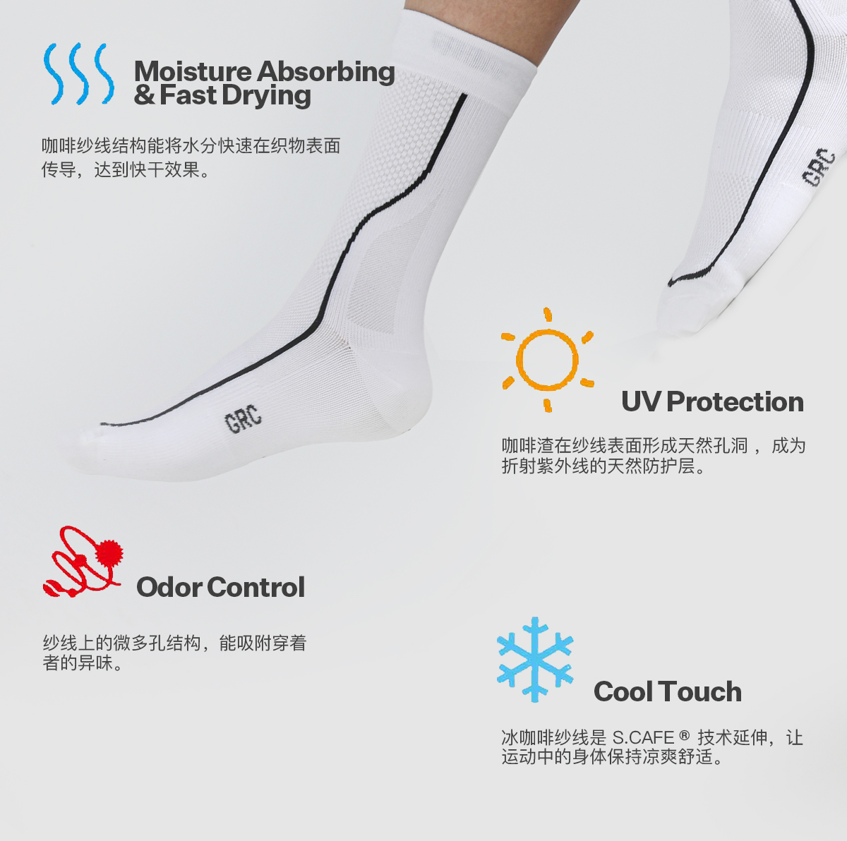 GRC桀骜无尽新款运动袜RESEARCH咖啡纱速干抗菌公路自行车骑行袜
