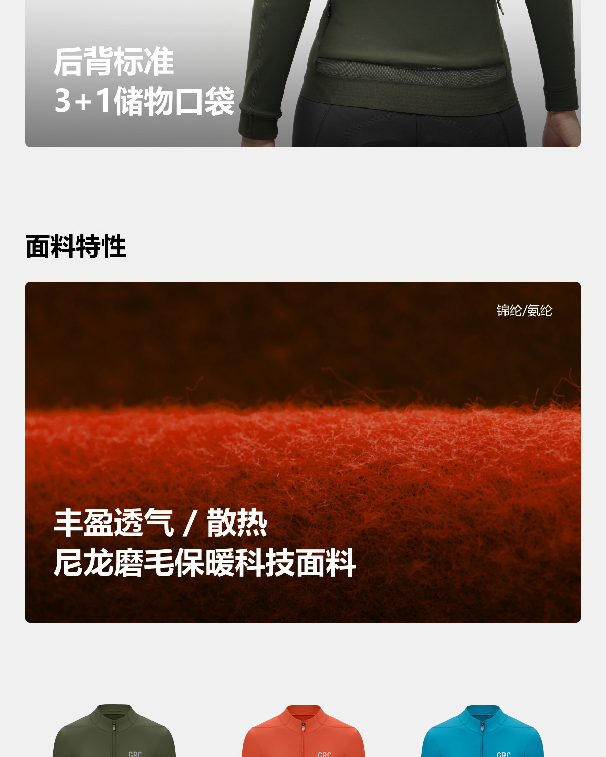 GRC桀骜无尽女士秋冬新款TECH系列长袖抓绒保暖上衣公路车骑行服