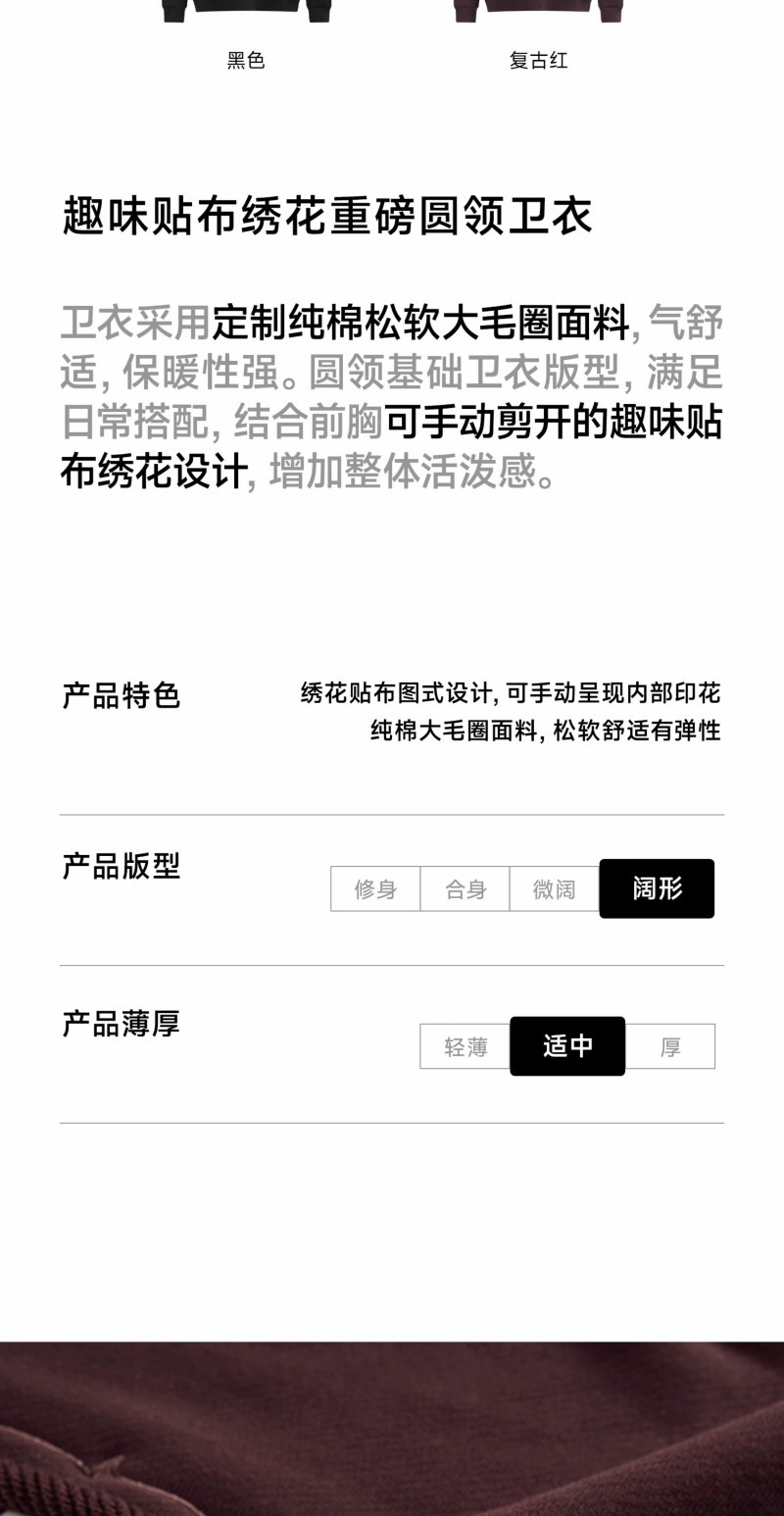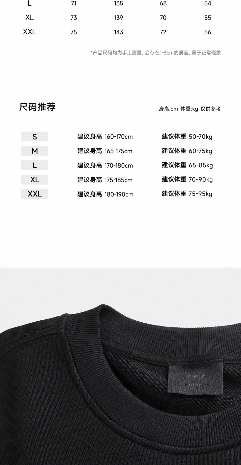 CHINISM折扣季 贴布绣重磅圆领卫衣男秋季新款宽松男生套头上衣
