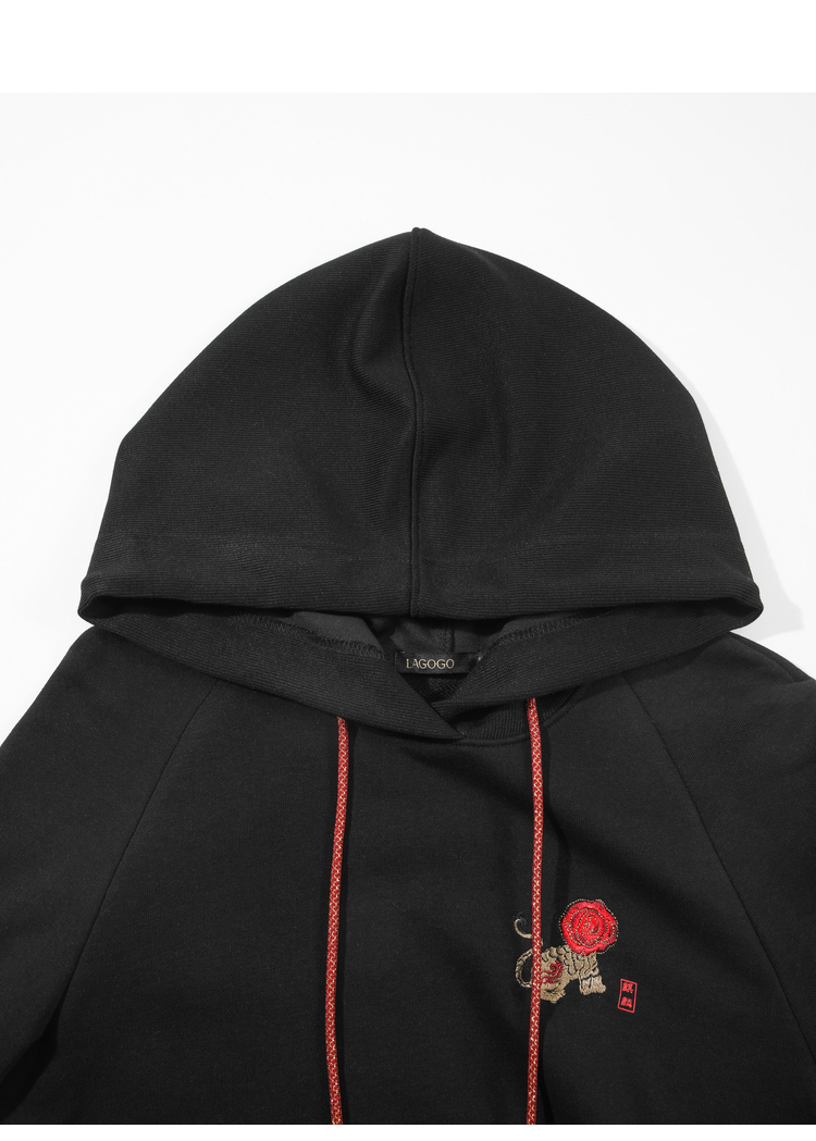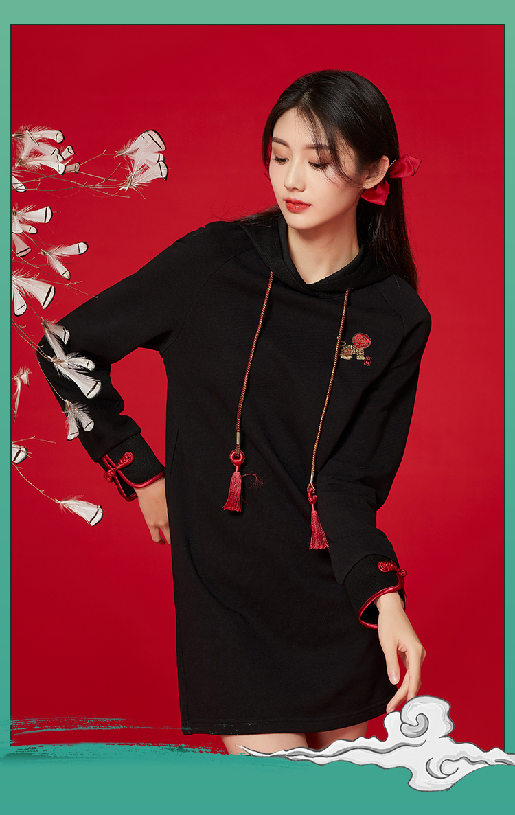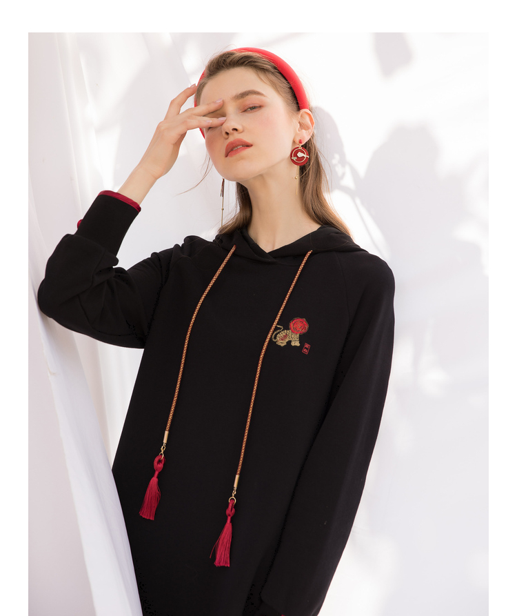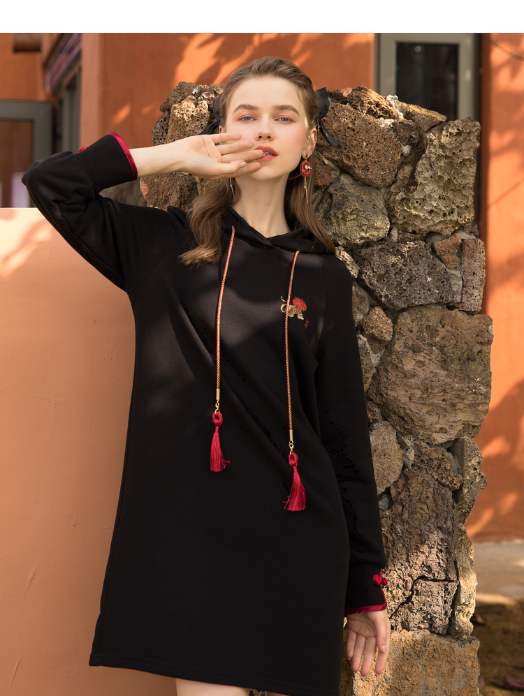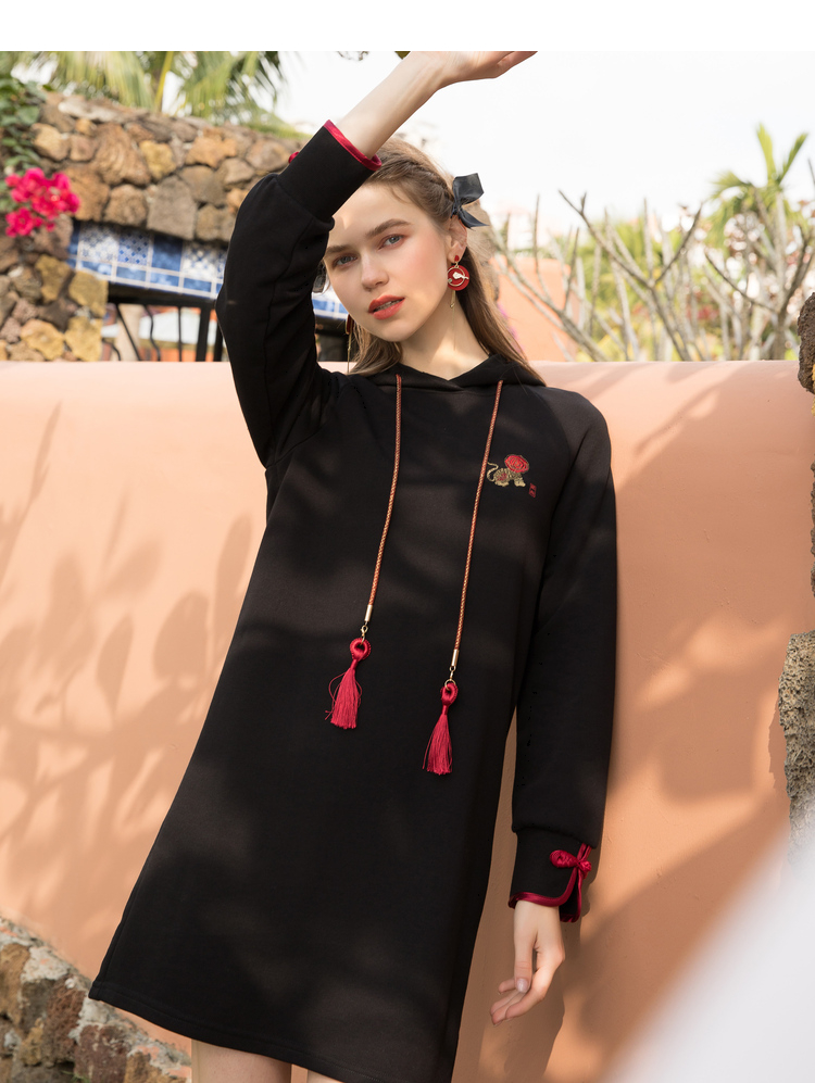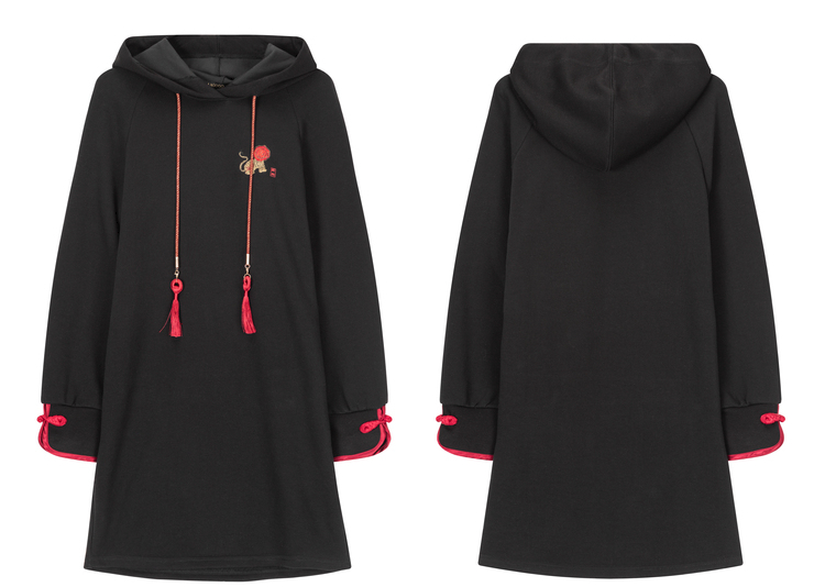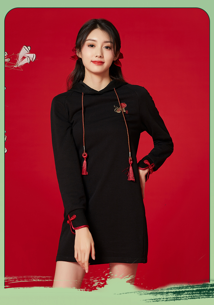 Lagogo2022新款连帽黑色插肩袖连衣裙女春季学院风LALL731C61