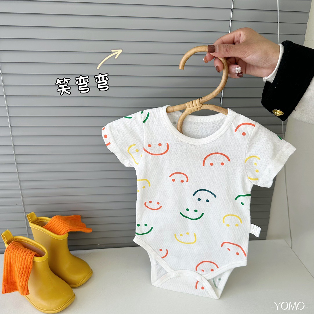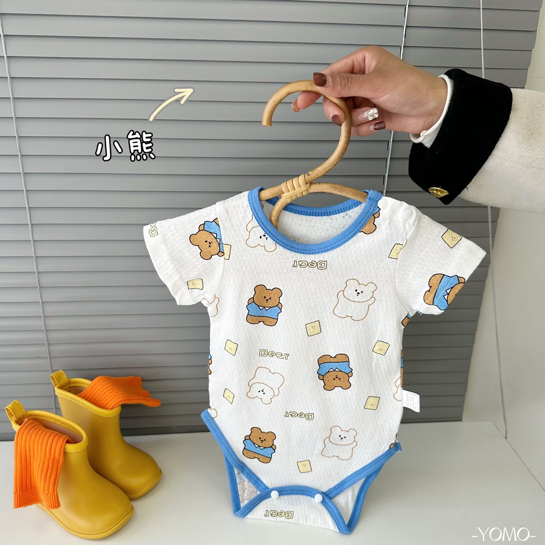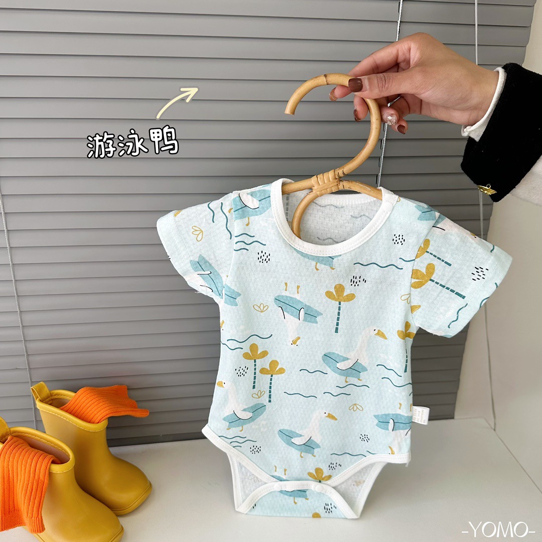 【轻薄卡通网眼纯棉包屁衣】天气热了~又该给宝宝换新衣啦!怎么搭都好看哦~🥳 ✅精选A类优质面料,宝宝穿妈妈放心! ✅无骨工艺制作,呵护宝宝娇嫩肌肤,贴身更舒适! ✅手感软软糯糯,透气排汗,柔软亲肤✔ ✅各种卡通萌趣印花,谁穿谁可爱
