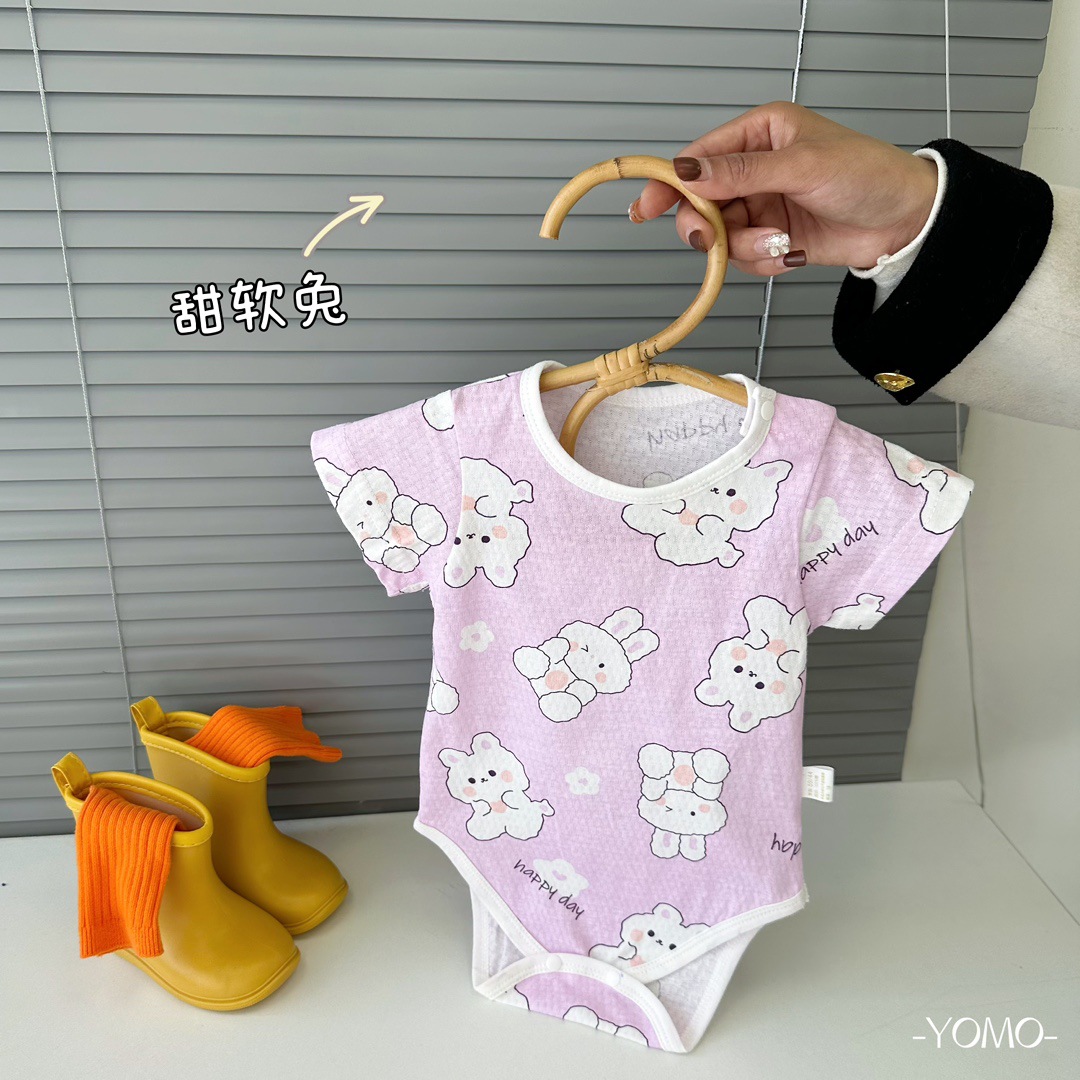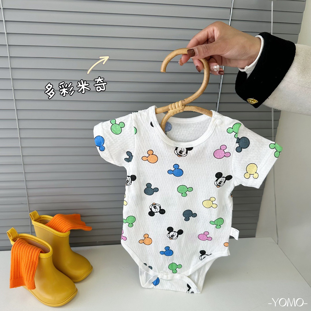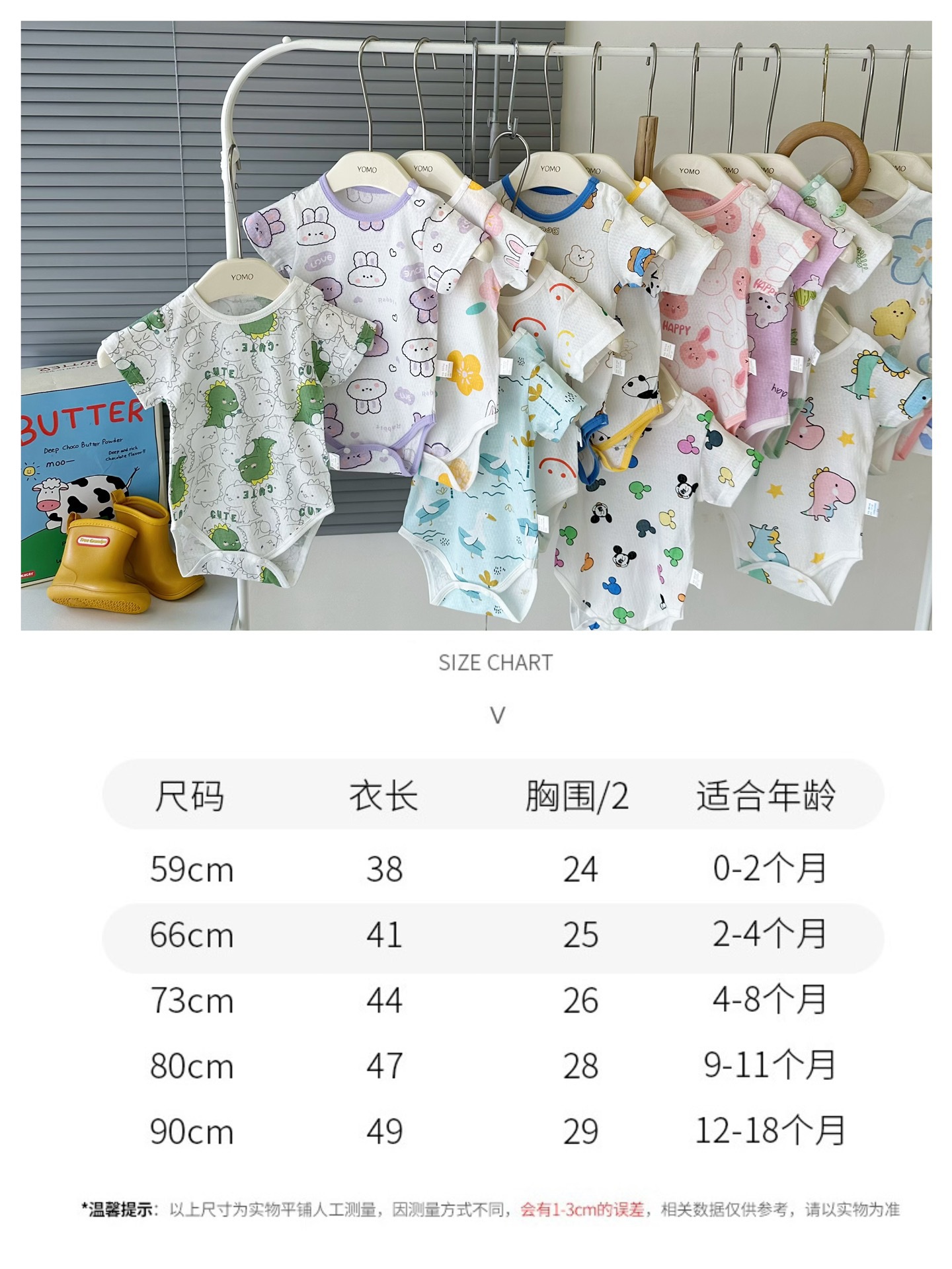 【轻薄卡通网眼纯棉包屁衣】天气热了~又该给宝宝换新衣啦!怎么搭都好看哦~🥳 ✅精选A类优质面料,宝宝穿妈妈放心! ✅无骨工艺制作,呵护宝宝娇嫩肌肤,贴身更舒适! ✅手感软软糯糯,透气排汗,柔软亲肤✔ ✅各种卡通萌趣印花,谁穿谁可爱