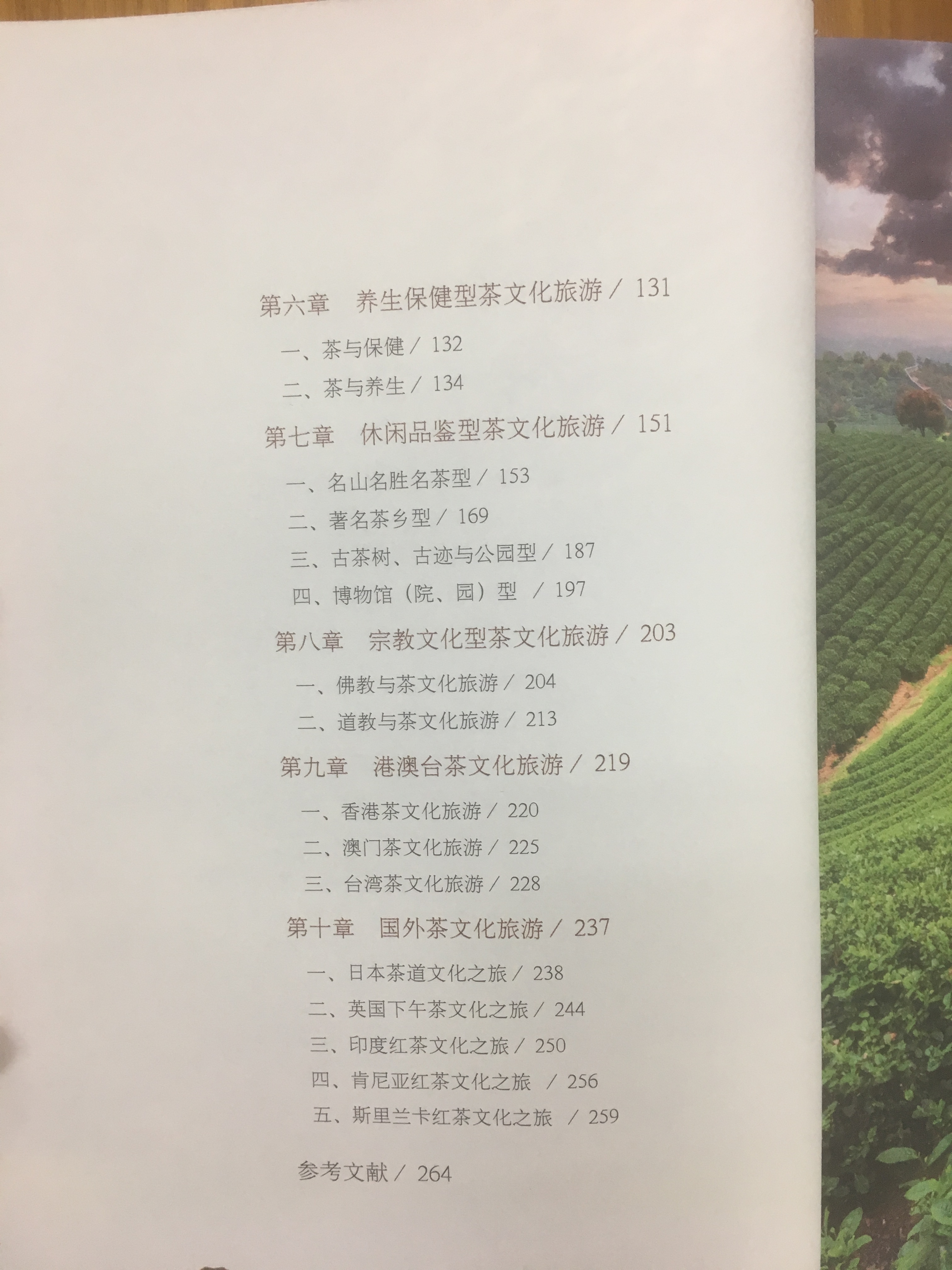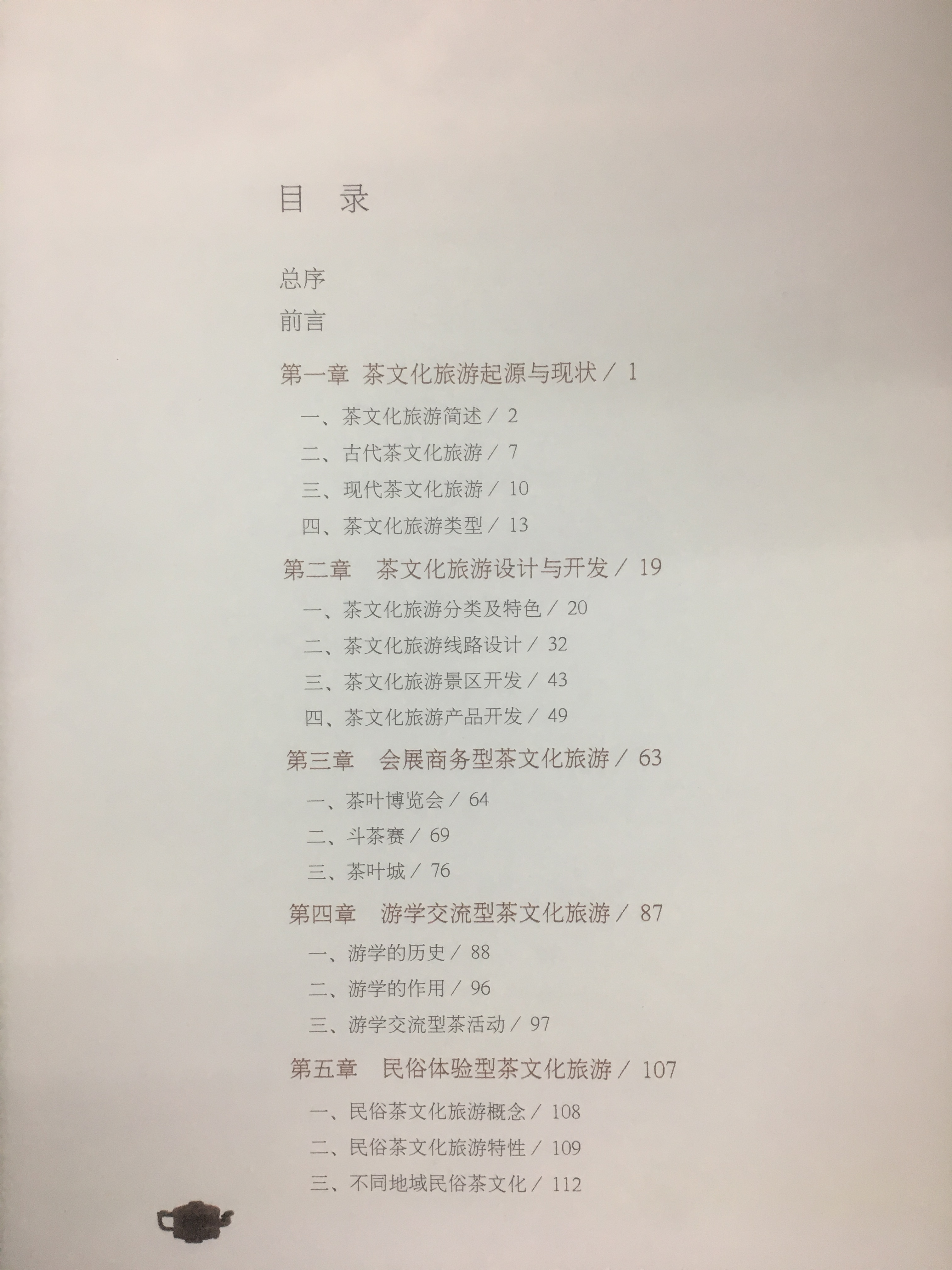 书内容包括:茶文化旅游起源与现状,茶文化旅游设计与开发,会展商务型茶文化旅游,游学交流型茶文化旅游,民俗体验型茶文化旅游,养生保健型茶文化旅游,休闲品鉴型茶文化旅游,宗教文化型茶文化旅游,港澳台茶文化旅游,外国茶文化旅游(“一带一路”与茶文化旅游)等。