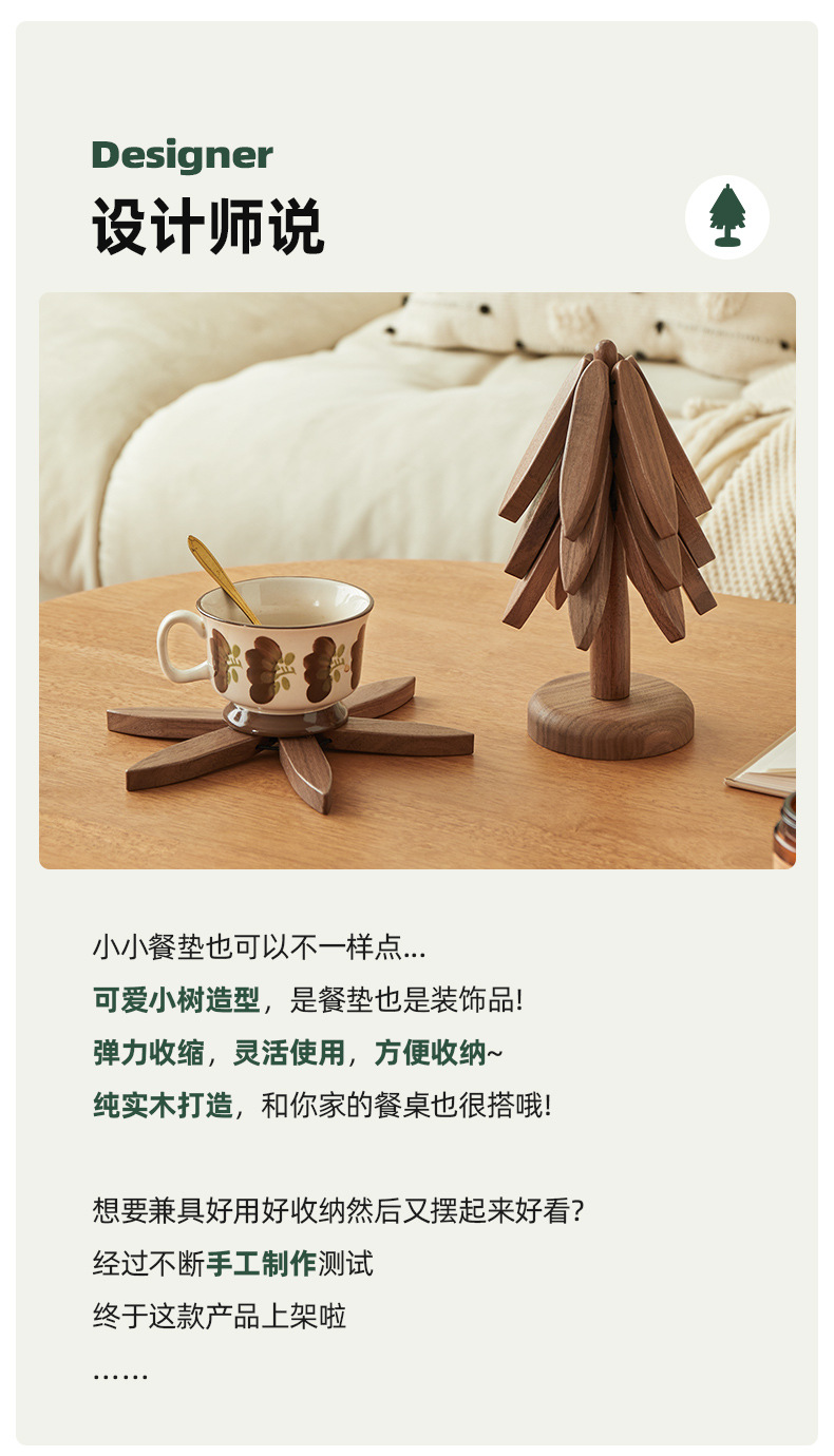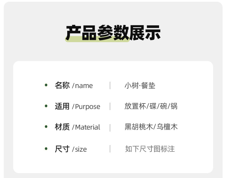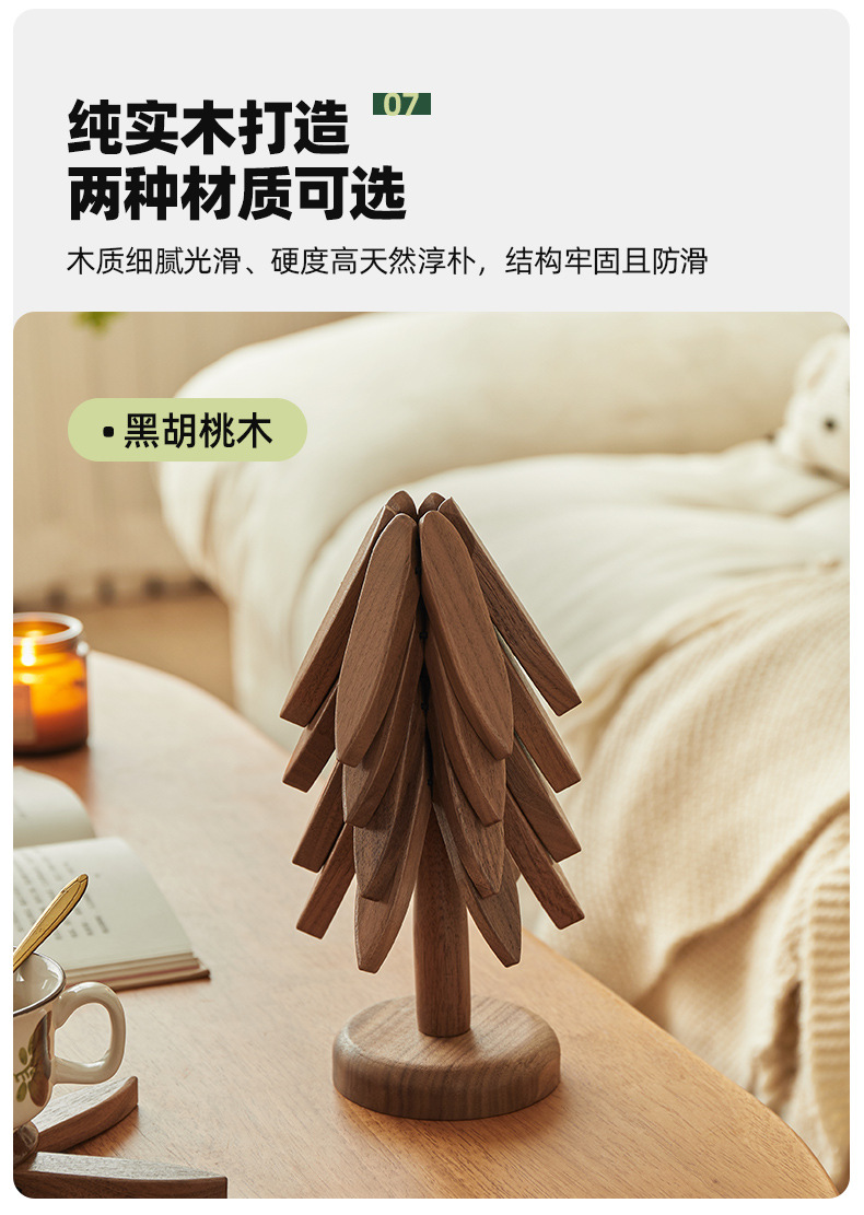 【多样屋专柜】小树黑胡桃木餐垫单片装20*1.2cm