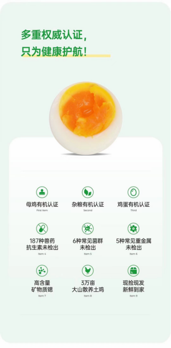 一正有机,更高于有机,除了美味(散养土鸡蛋),在安全(有机认证,抗生素兽药重金属排除),营养(微量元素钙、锌、锶),新鲜(只发当日新鲜蛋)也是完胜的。