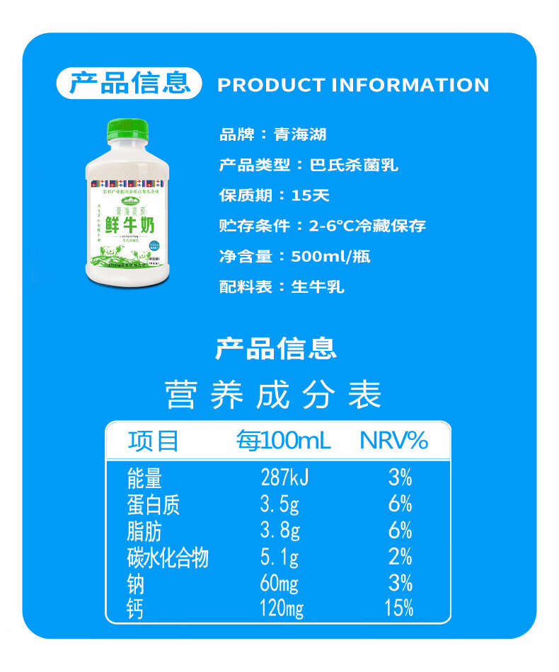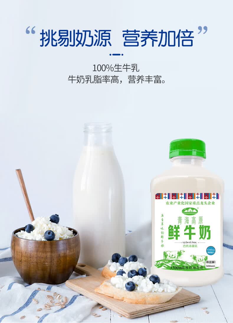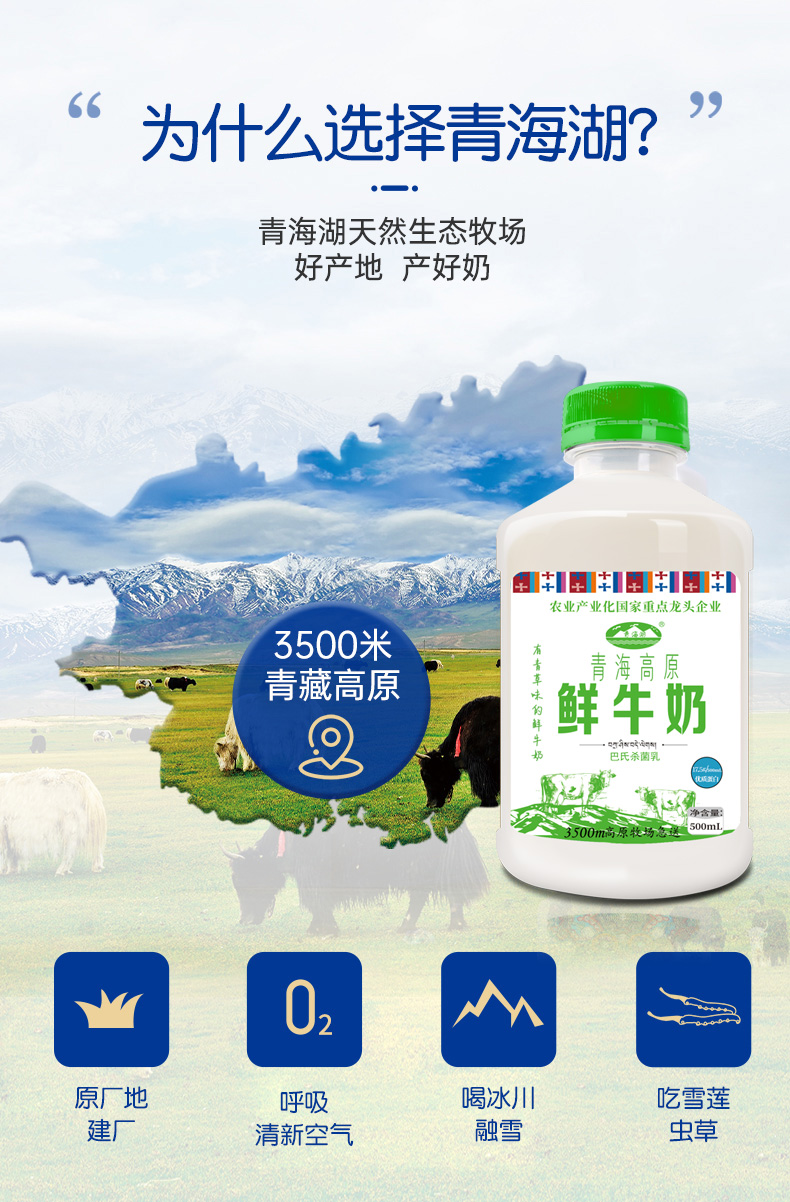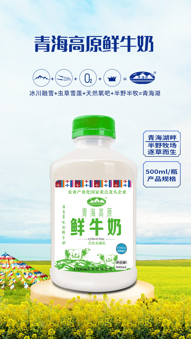 青海湖 青海高原鲜牛奶 500ml/瓶