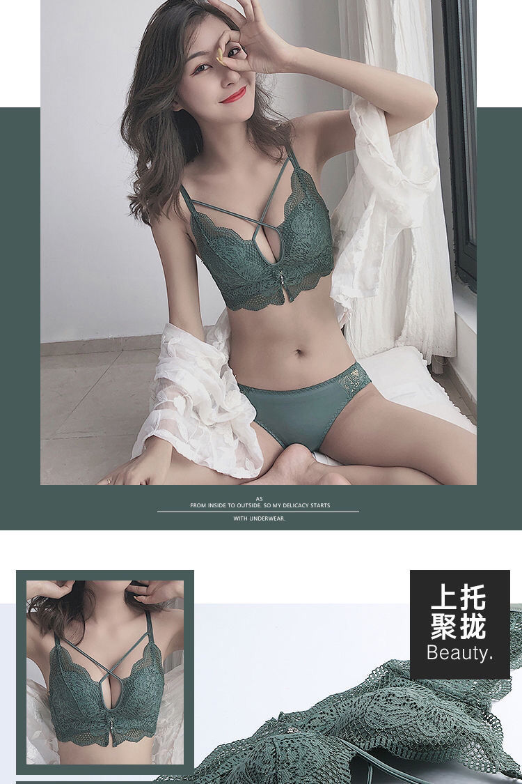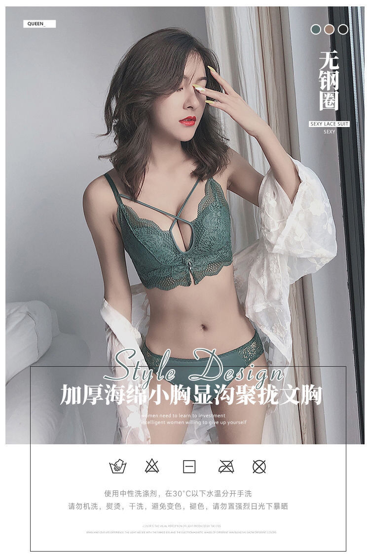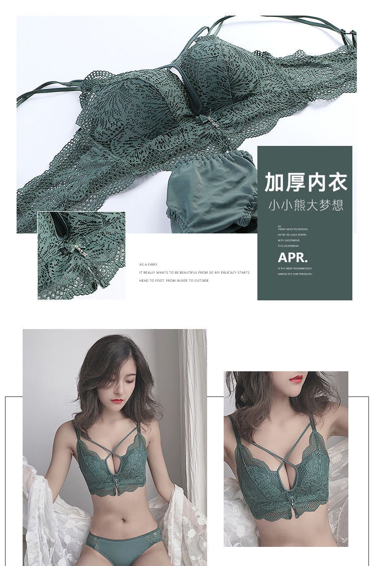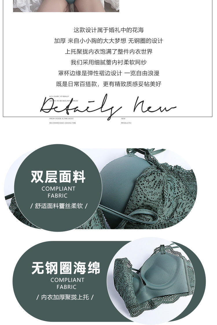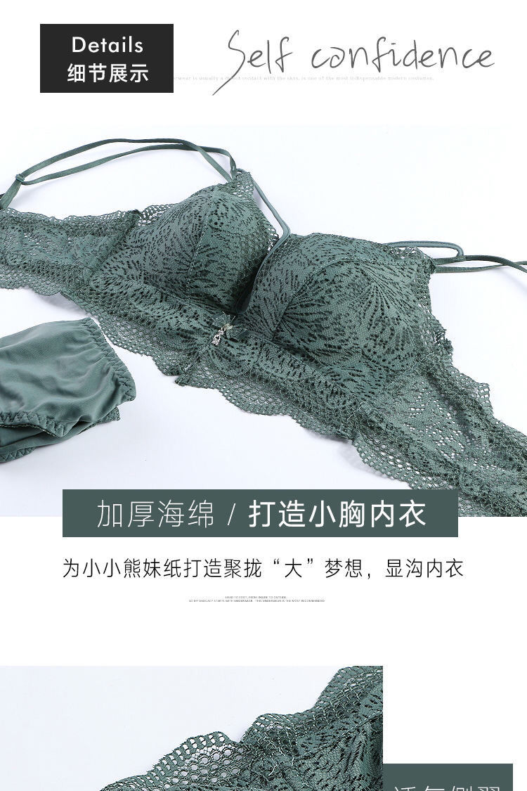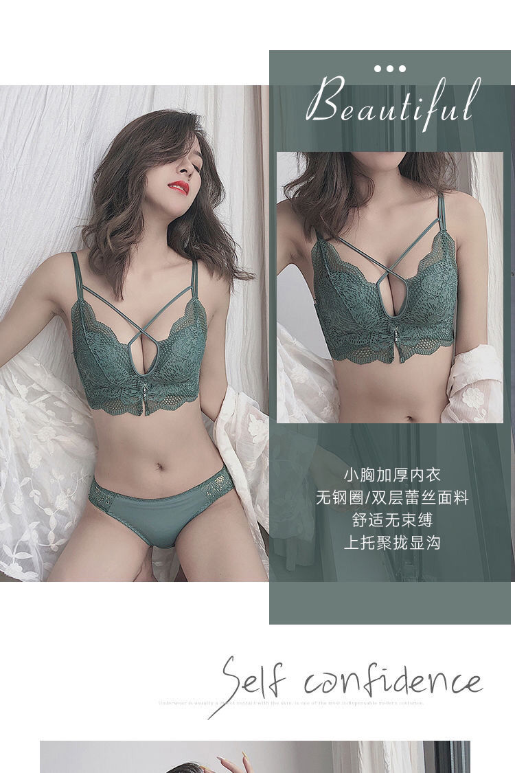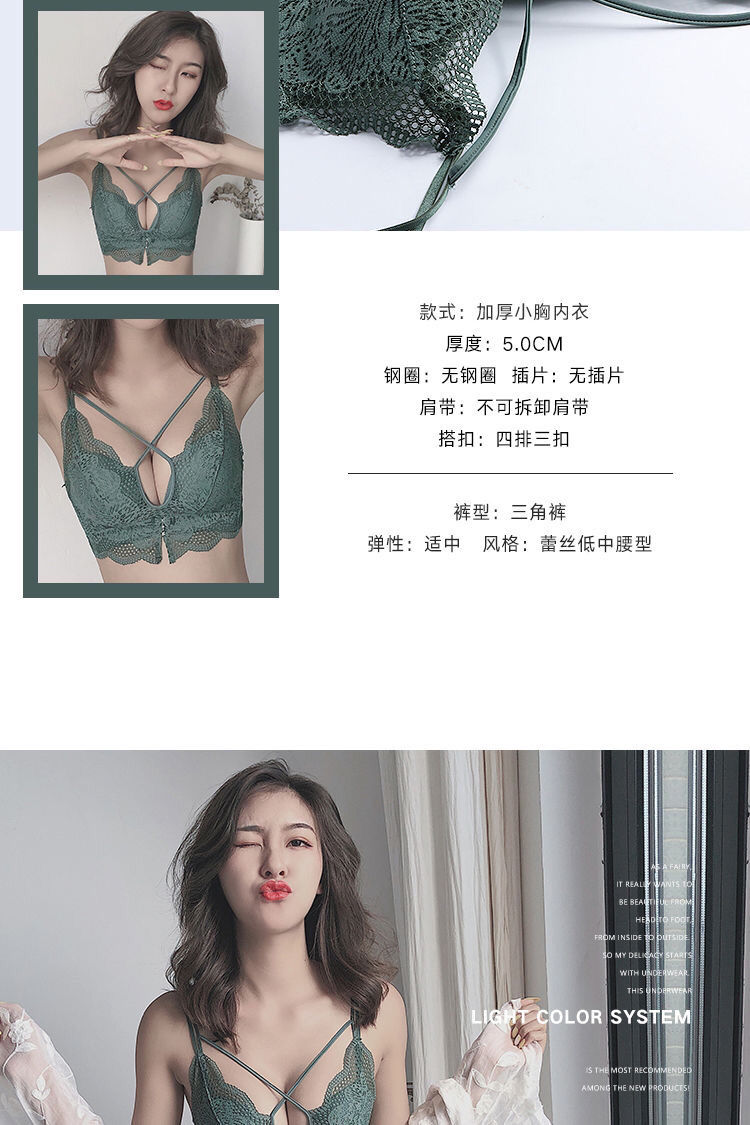 无钢圈加厚5cm性感美背蕾丝内衣女学生小胸聚拢文胸罩单件/套装