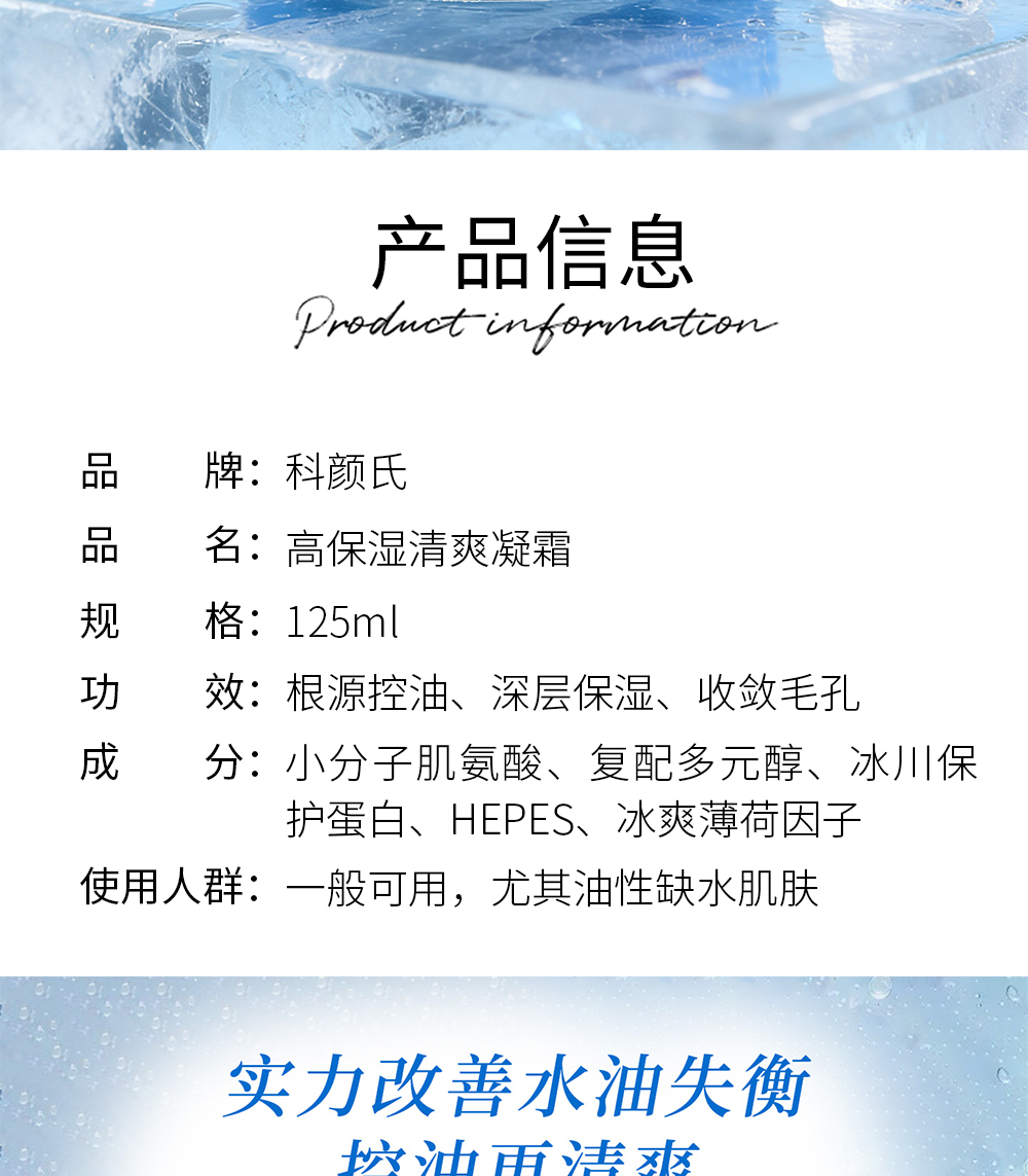 新品 科颜氏高保湿清爽凝霜125ml/14ML