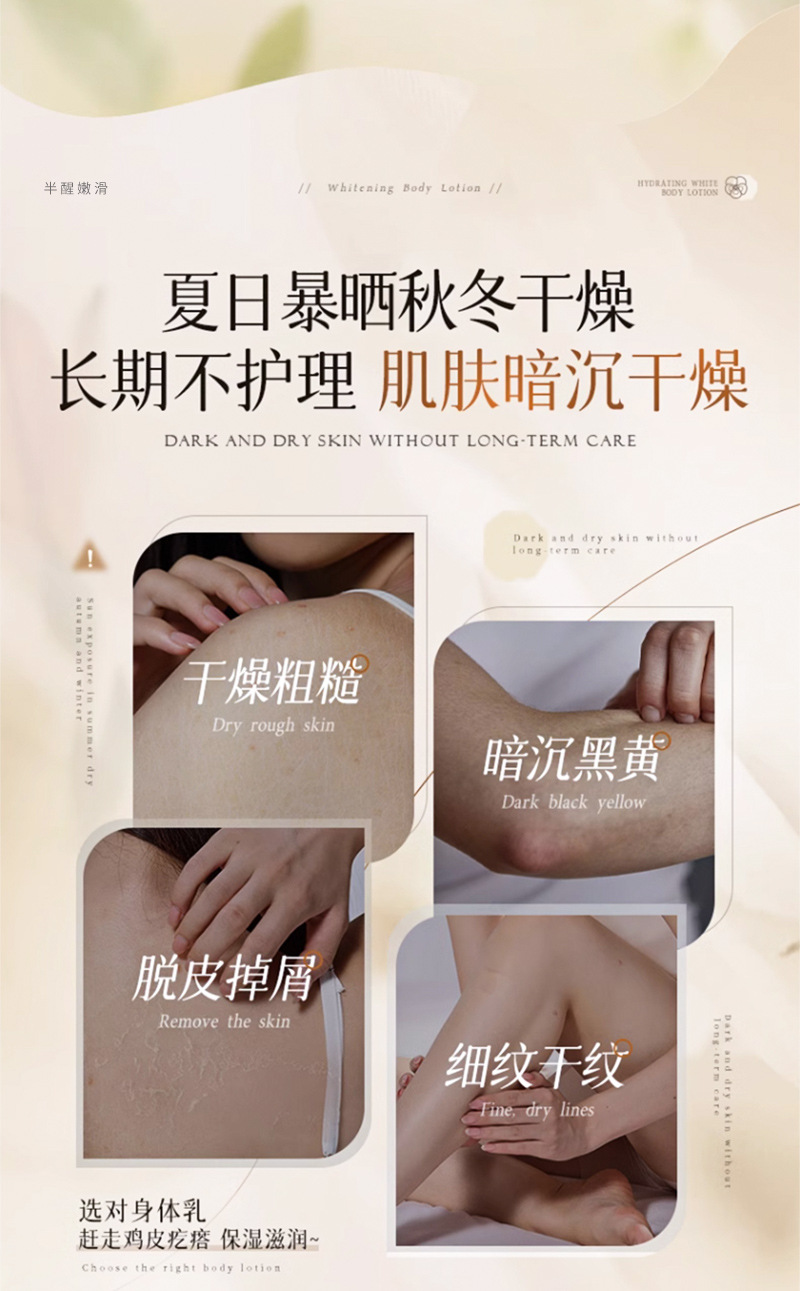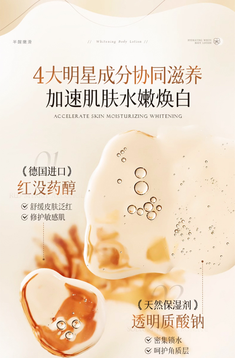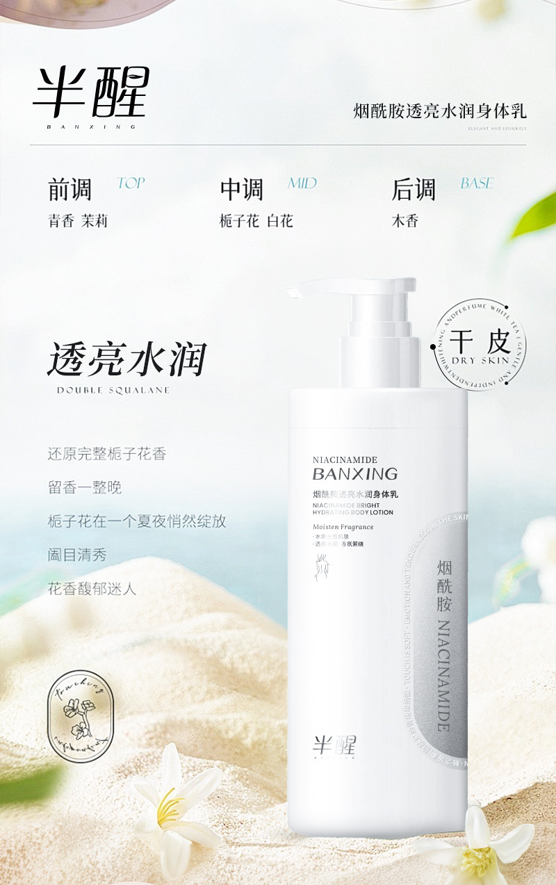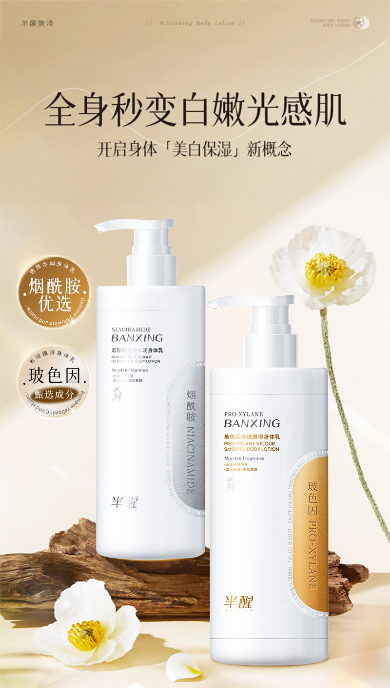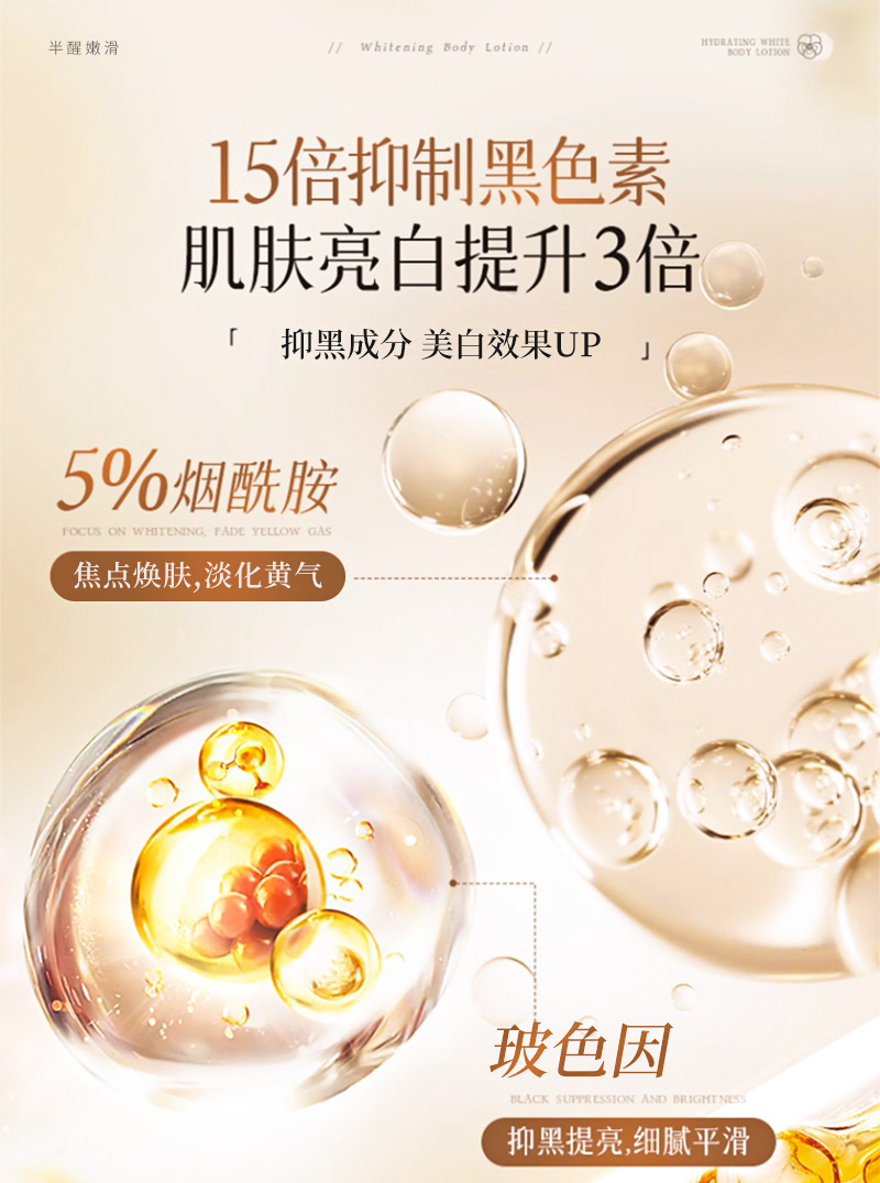 【2瓶装巨划算!大瓶装身体乳!】半醒烟酰胺身体乳 补水保湿提亮肤色 持久留香玻色因身体乳去干皮