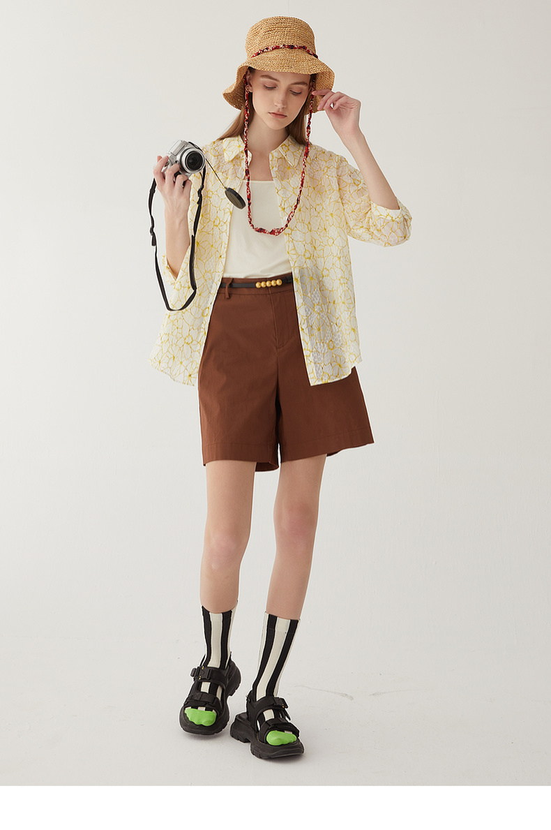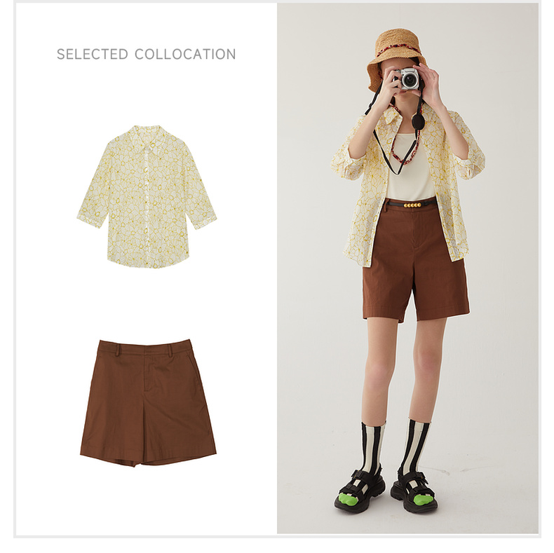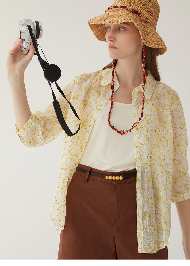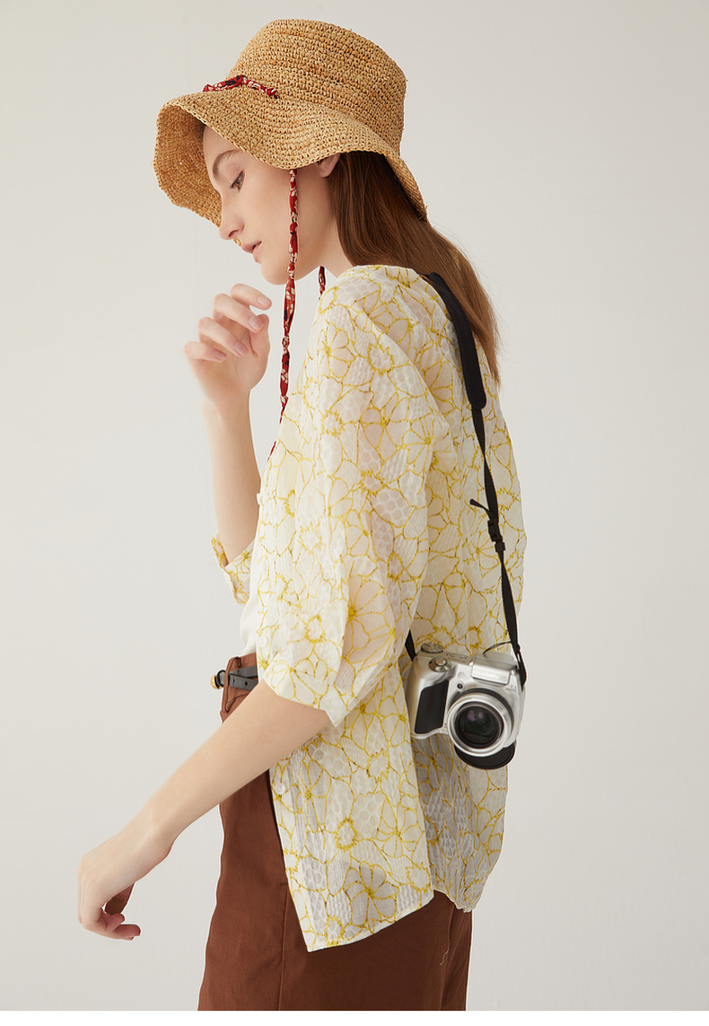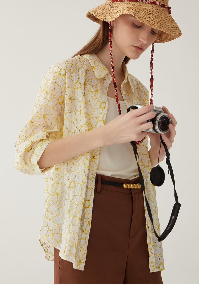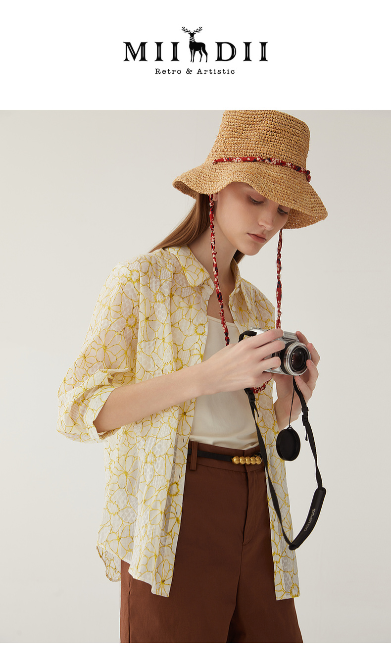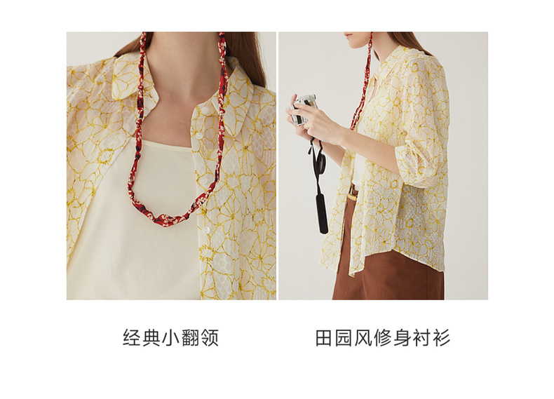 谜底碎花衬衫分袖女2024夏新款文艺风百搭宽松印花衬衣246MC9007