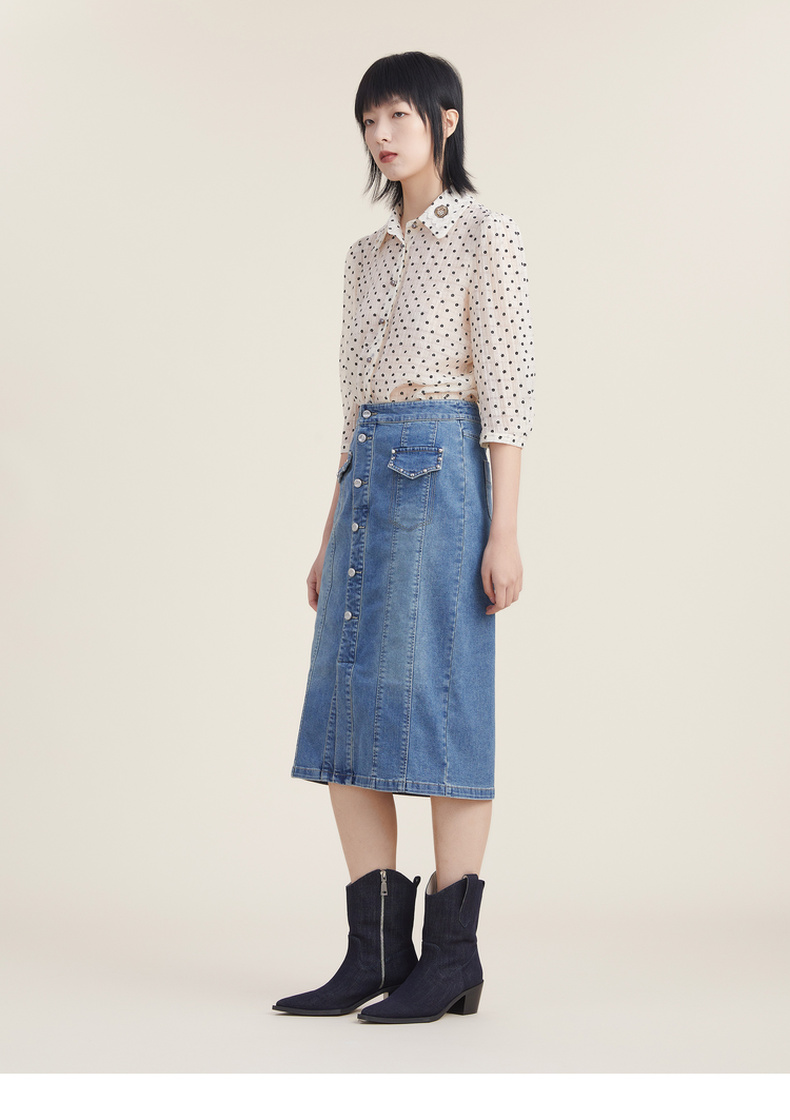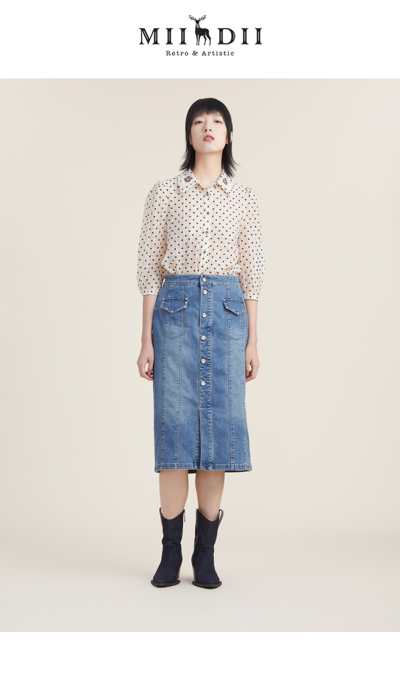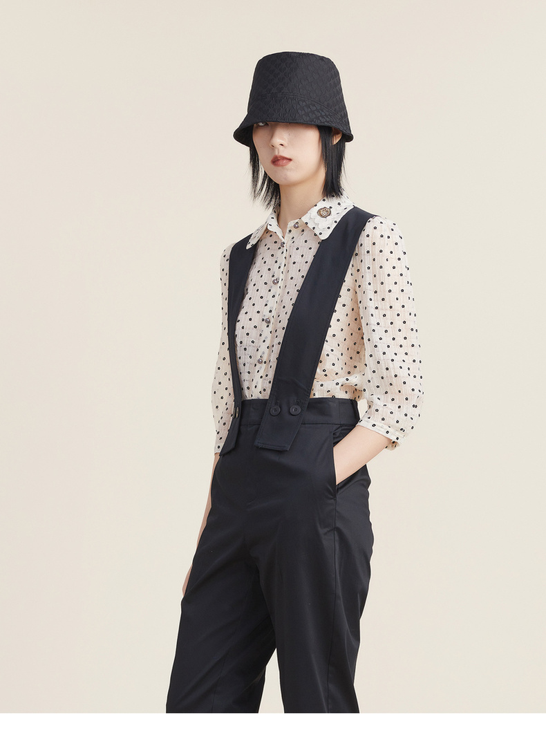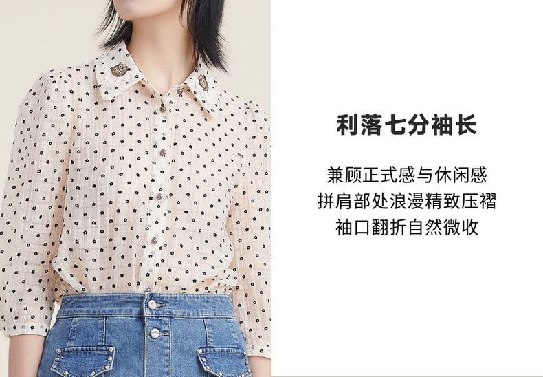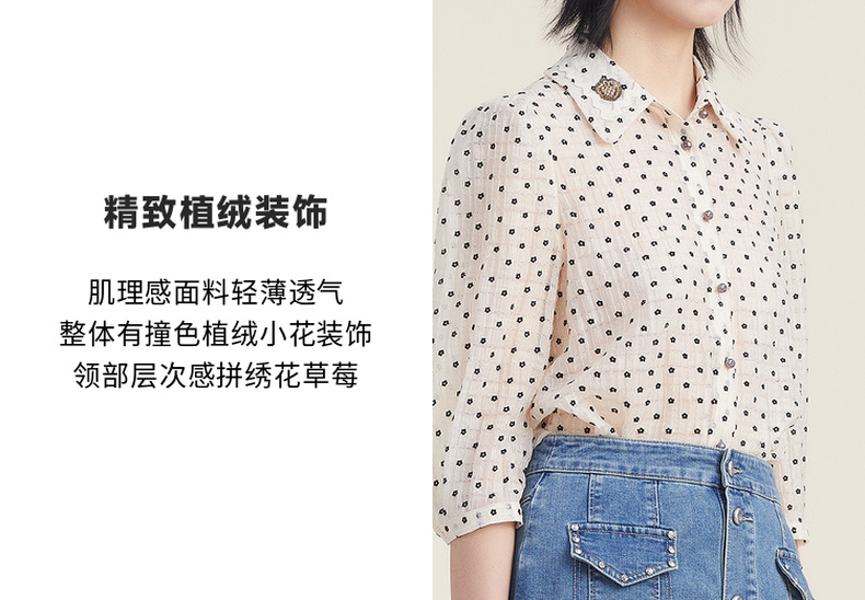 谜底天丝衬衫女2022秋新品文艺通勤植绒小花分袖上衣女223MC1166