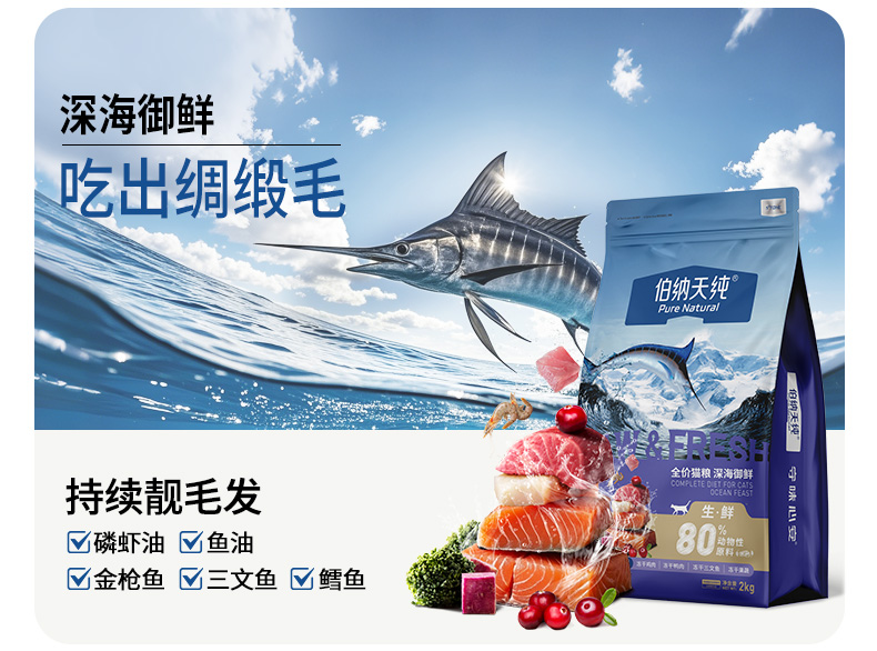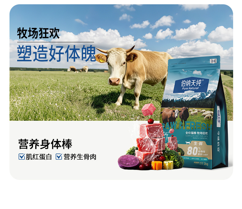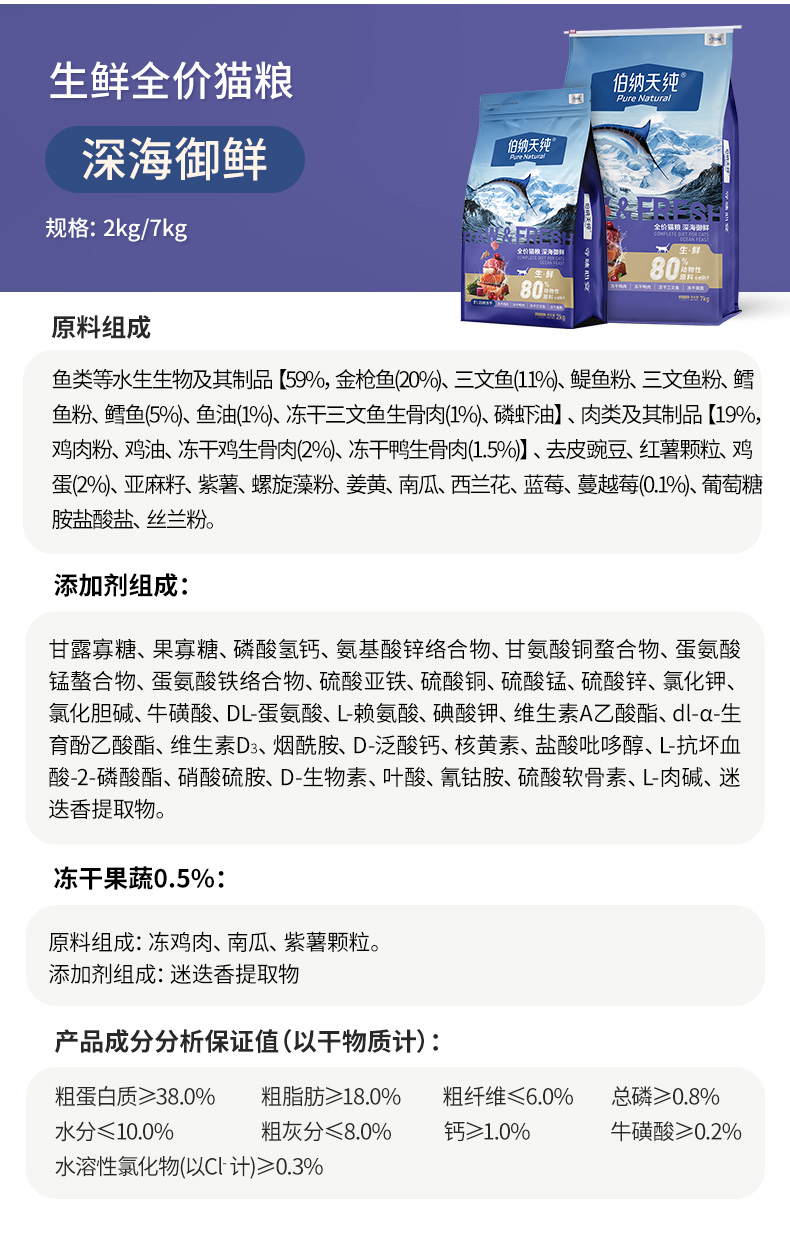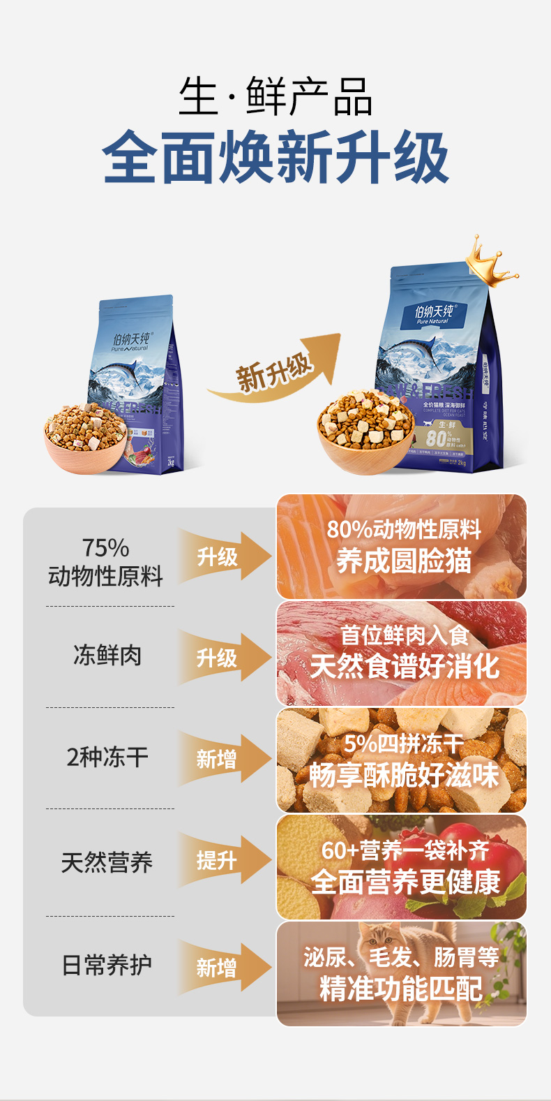 【升级款】伯纳天纯生鲜冻干猫粮7kg 全价全猫种通用天然粮美毛护肠胃泪痕管理
