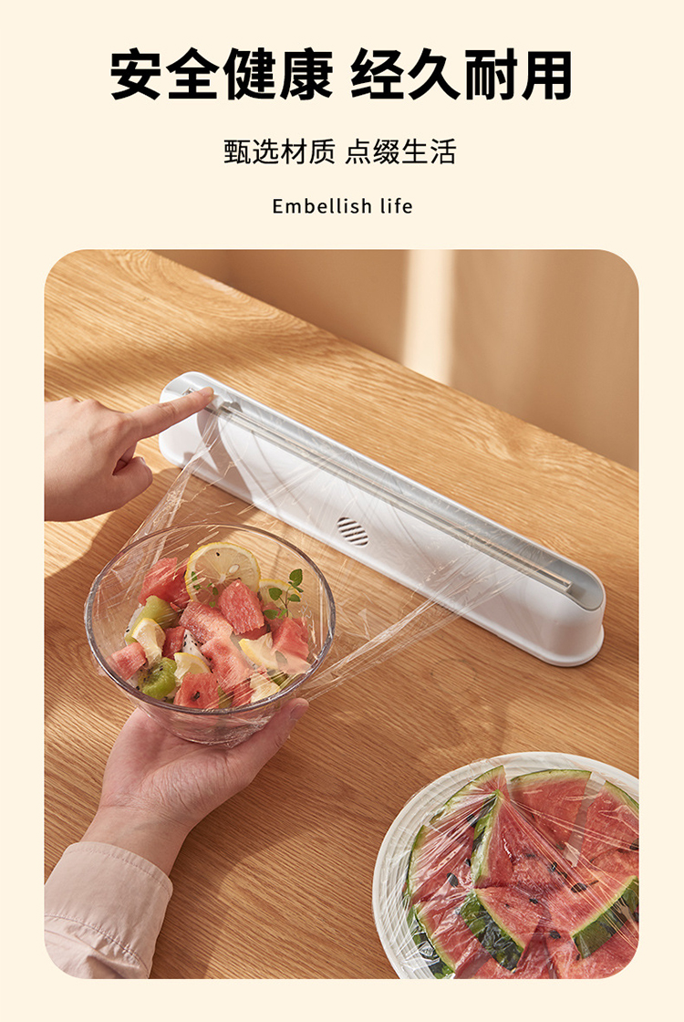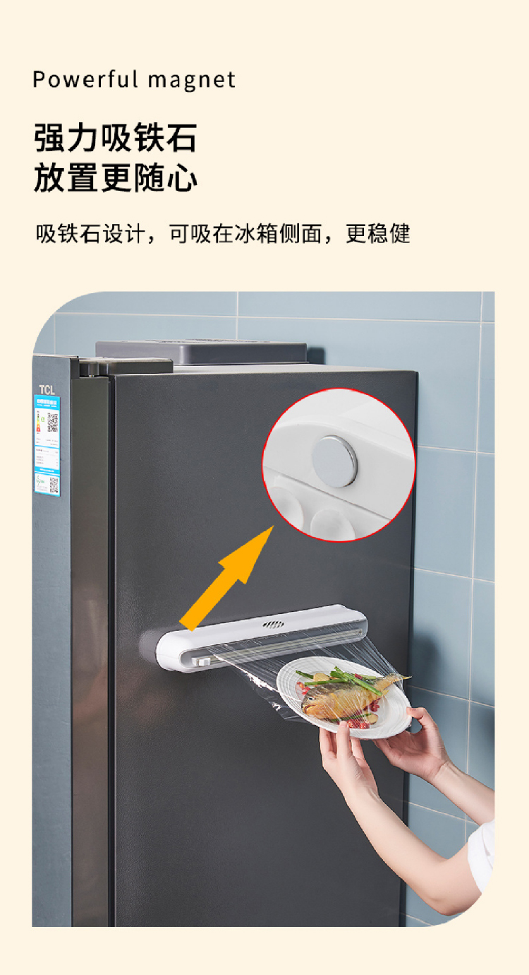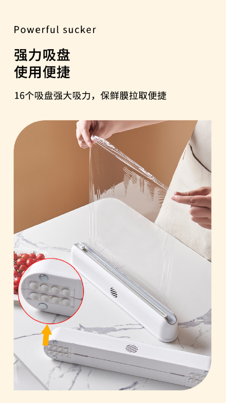 【保鲜膜切割器】厨房日用壁挂保鲜膜切割盒 吸盘式可调节收纳切割器(加赠一卷保鲜膜)