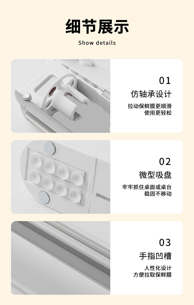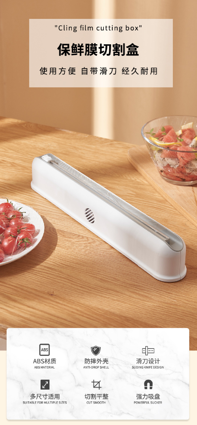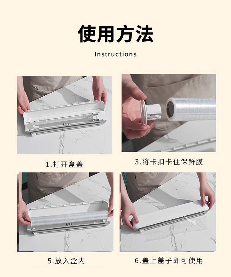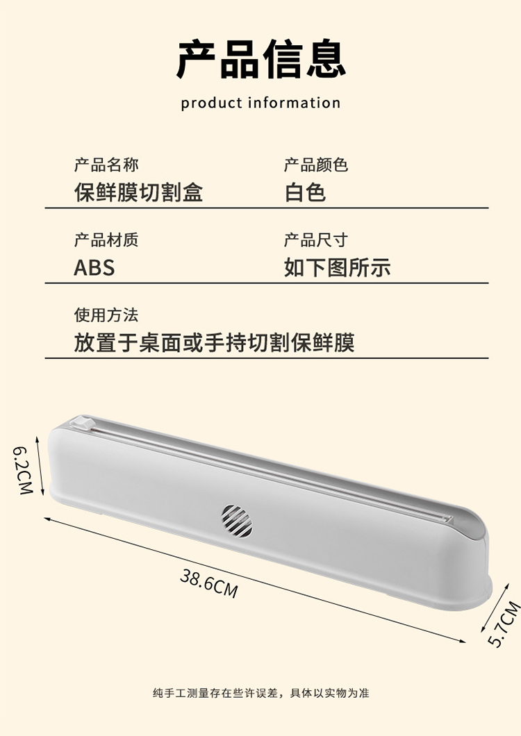 【保鲜膜切割器】厨房日用壁挂保鲜膜切割盒 吸盘式可调节收纳切割器(加赠一卷保鲜膜)