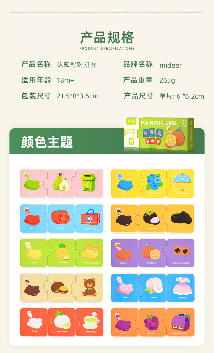 T 弥鹿mideer颜色认知配对拼图