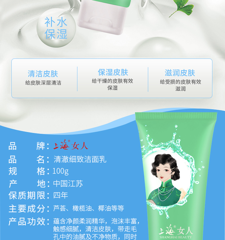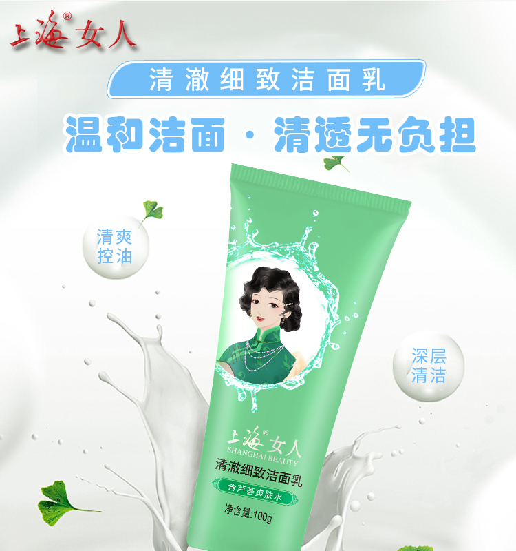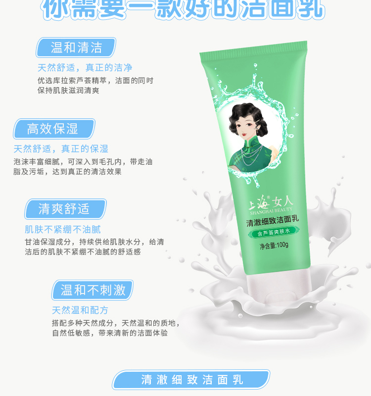 上海女人清澈细致洁面乳·含芦荟爽肤水100g