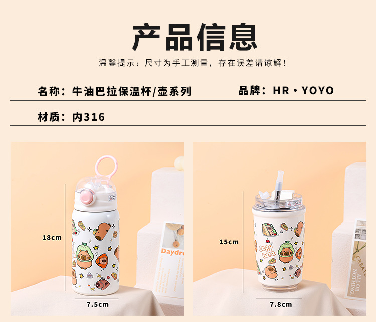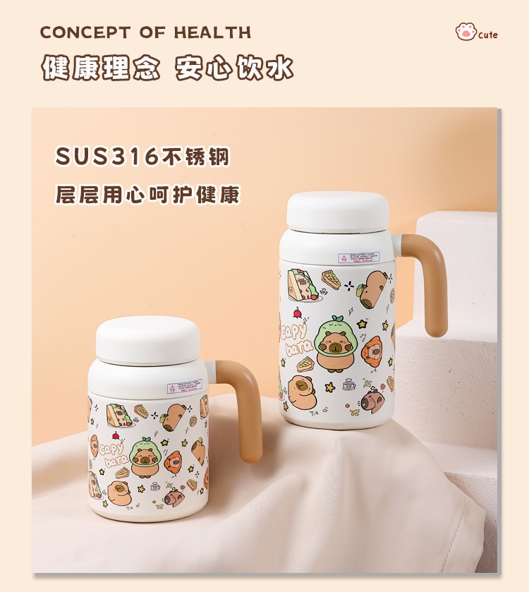 【卡皮巴拉萌宠杯,颜值与实力并存】316不锈钢双饮设计✨长效保温保冷❄夏日冷库冬日暖宝🌞孩子爱不释手的喝水神器!