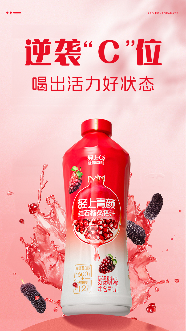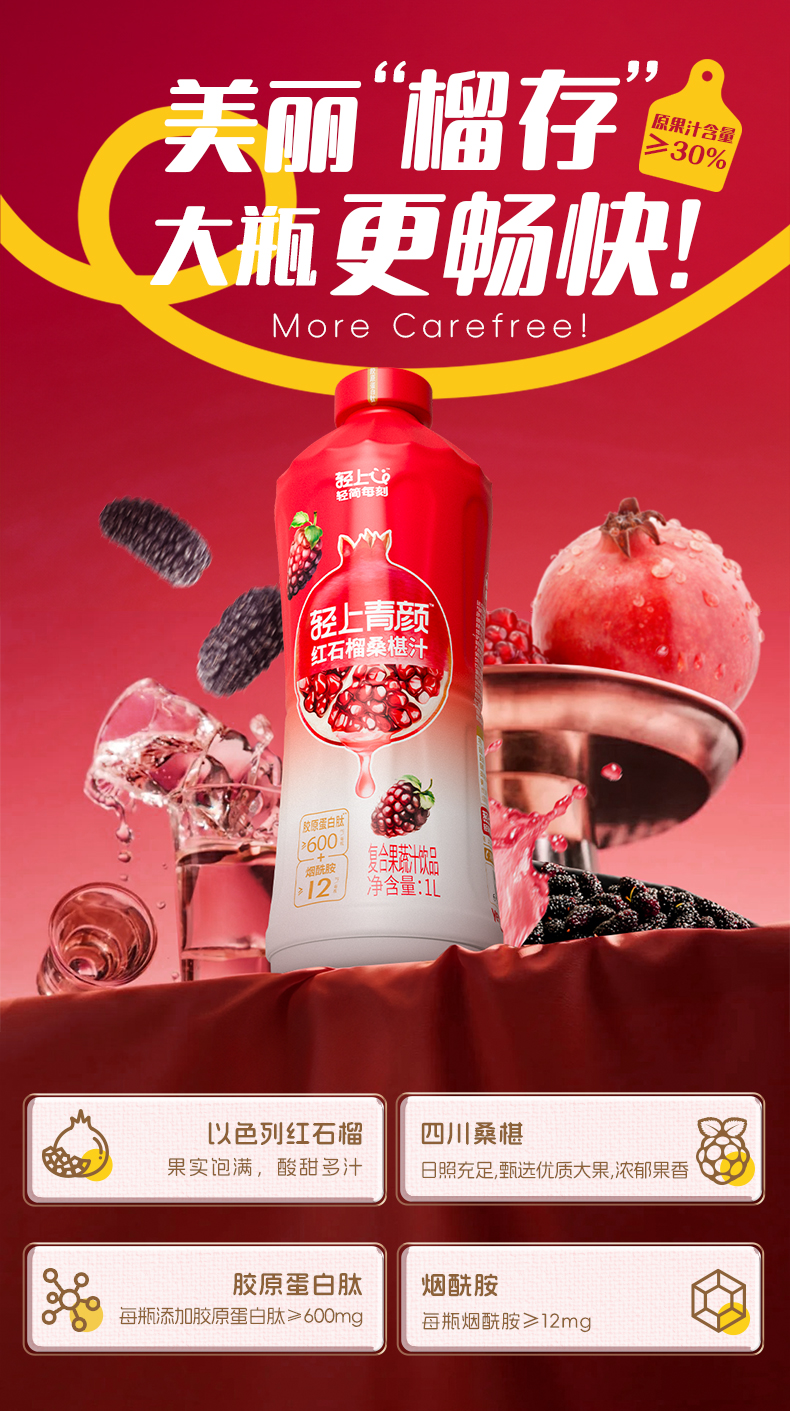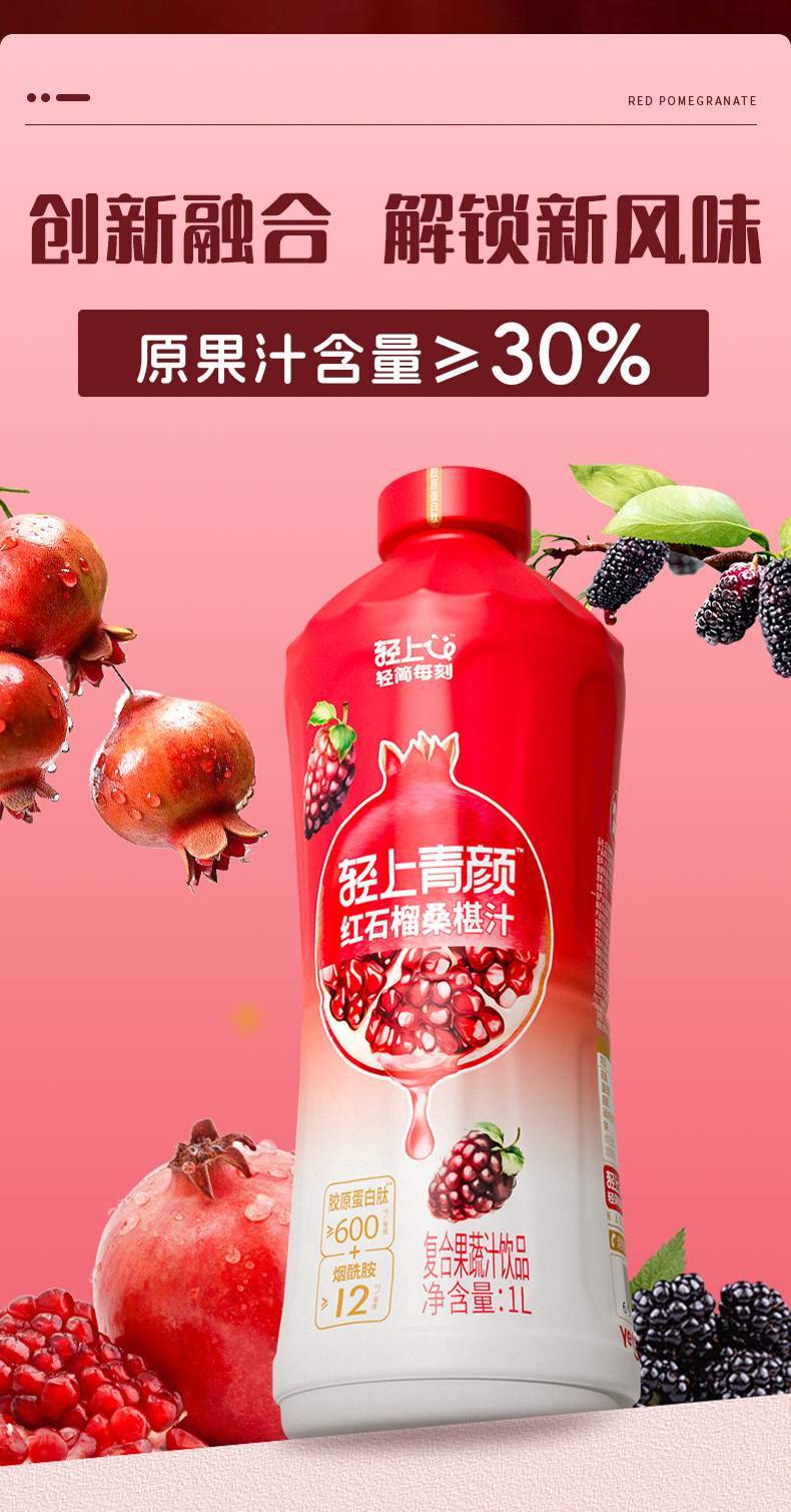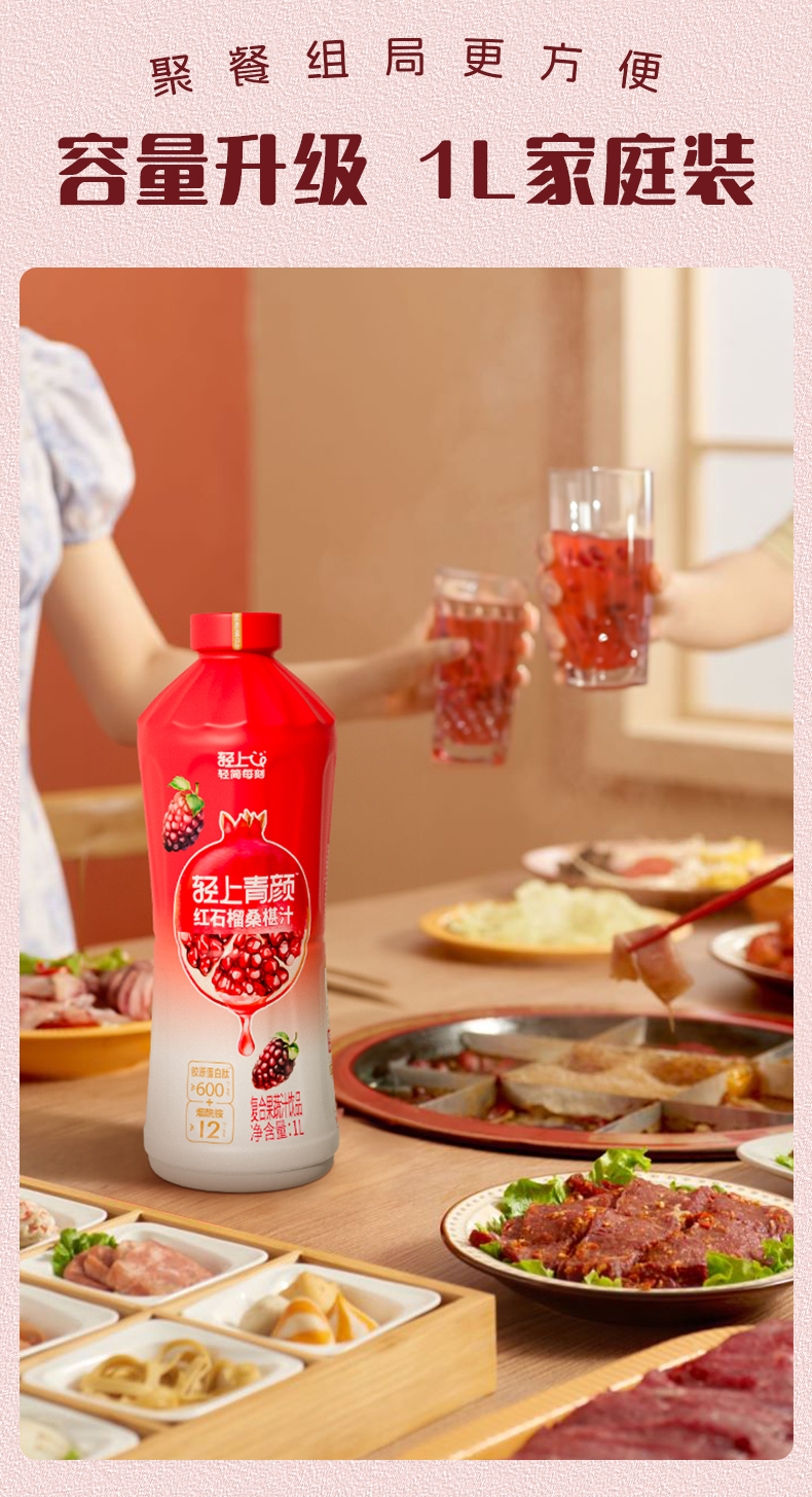 轻上 大瓶装红石榴桑葚汁家庭分享装特别添加烟酰胺和胶原蛋白肽