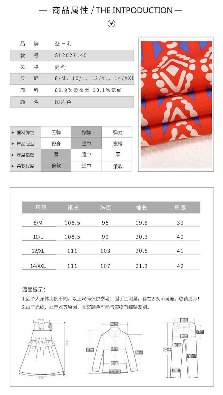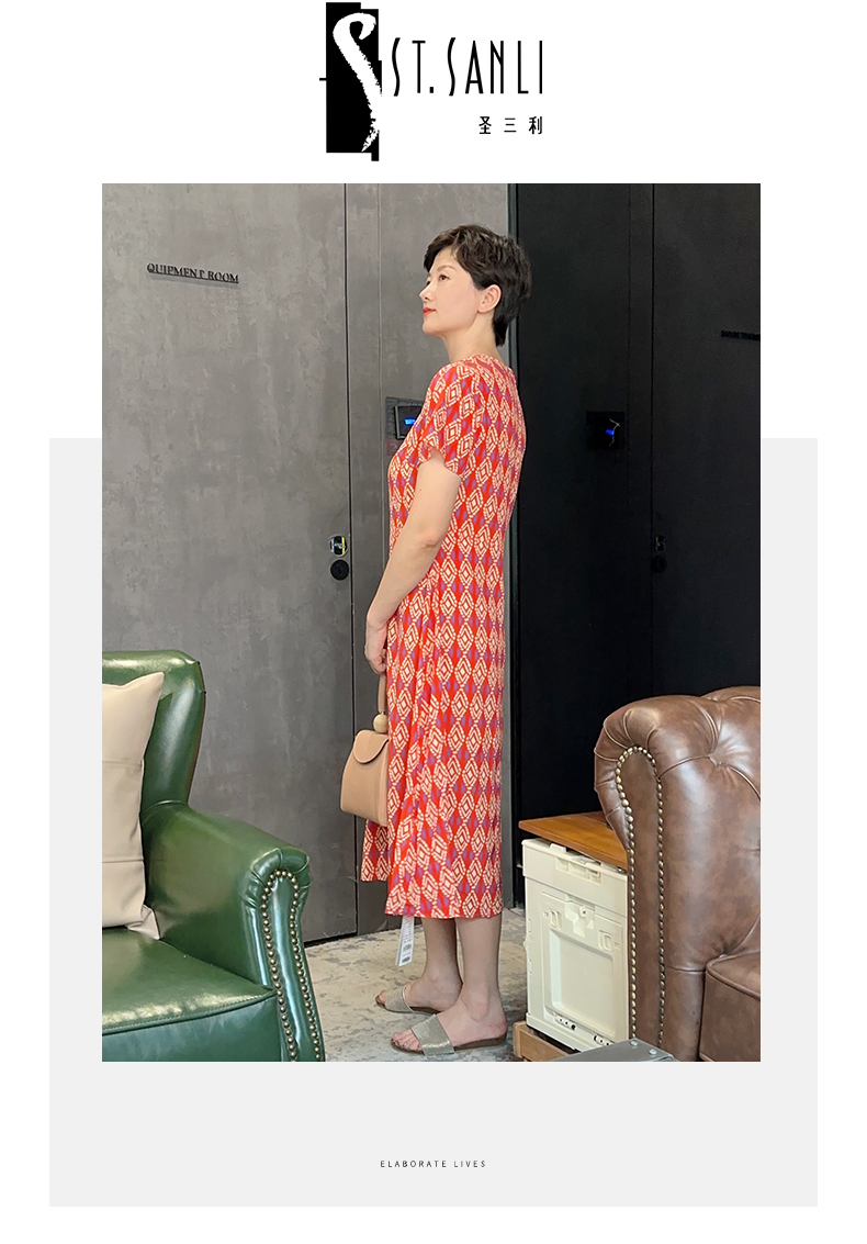 圣三利女装桑蚕丝民族风印花连衣裙SL2027140