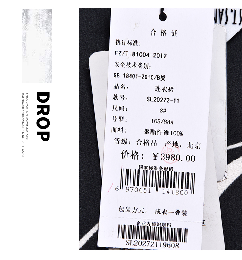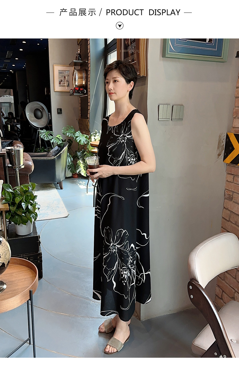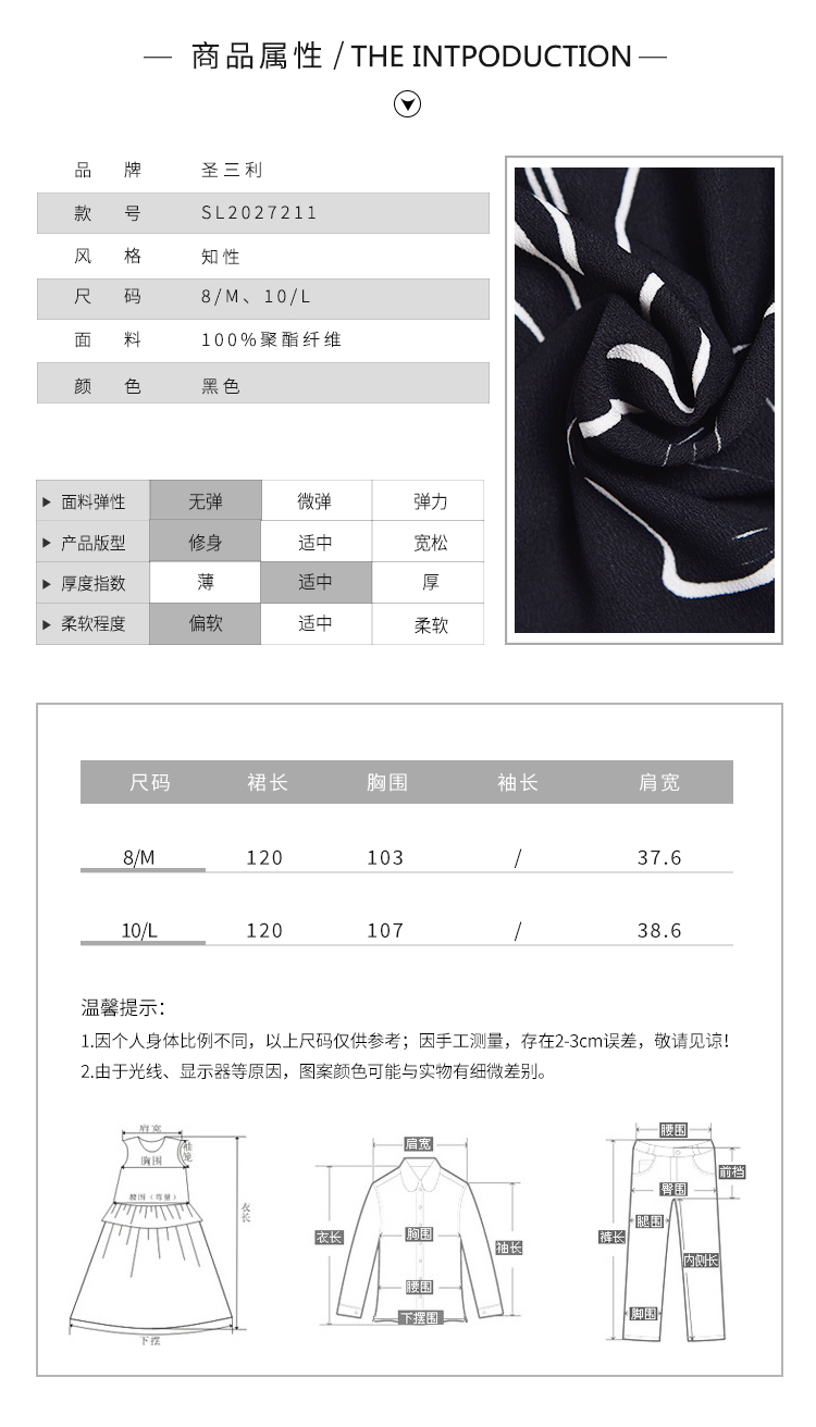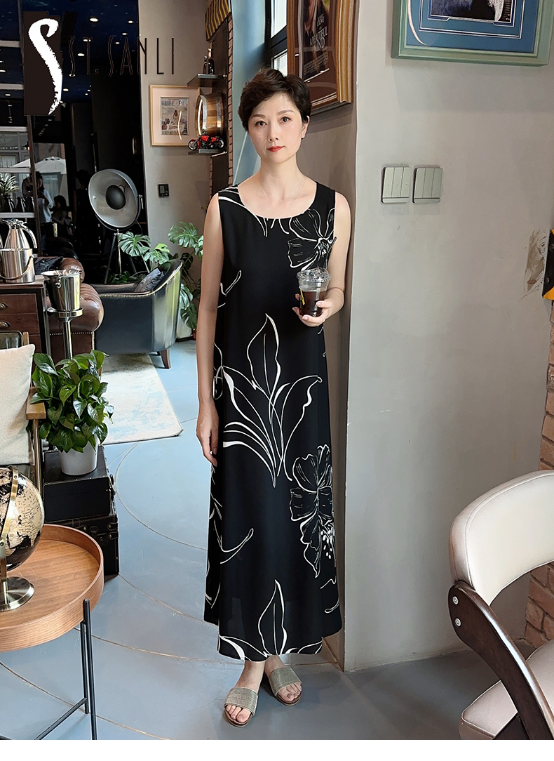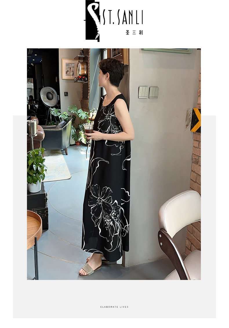 圣三利女装 优雅黑白印花无袖中长款连衣裙SL2027211