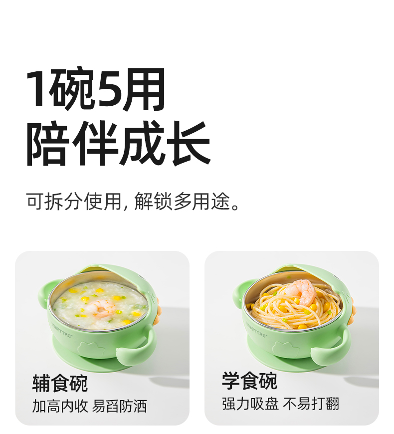 贝肽斯宝宝辅食碗自主进食吸盘碗婴儿专用硅胶碗训练吃饭儿童餐具