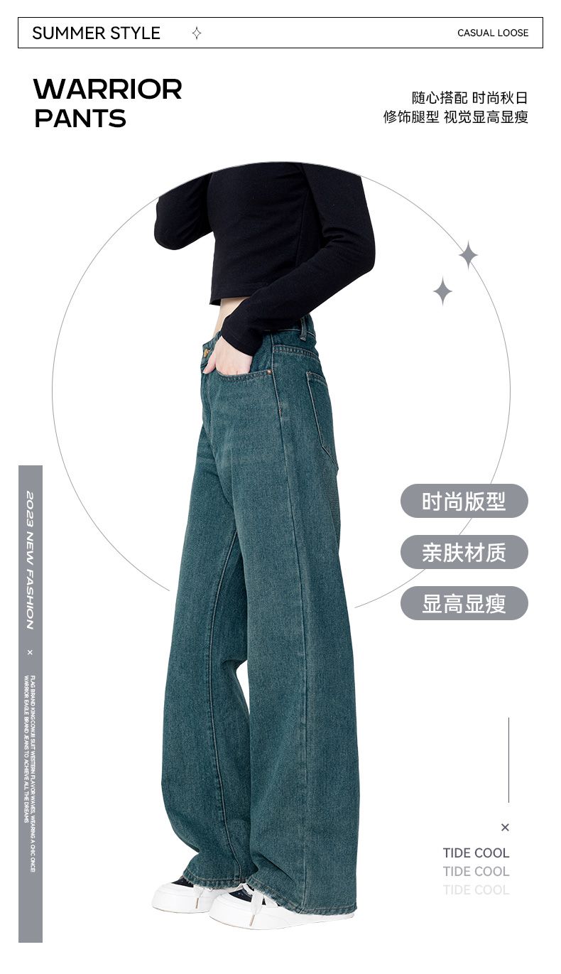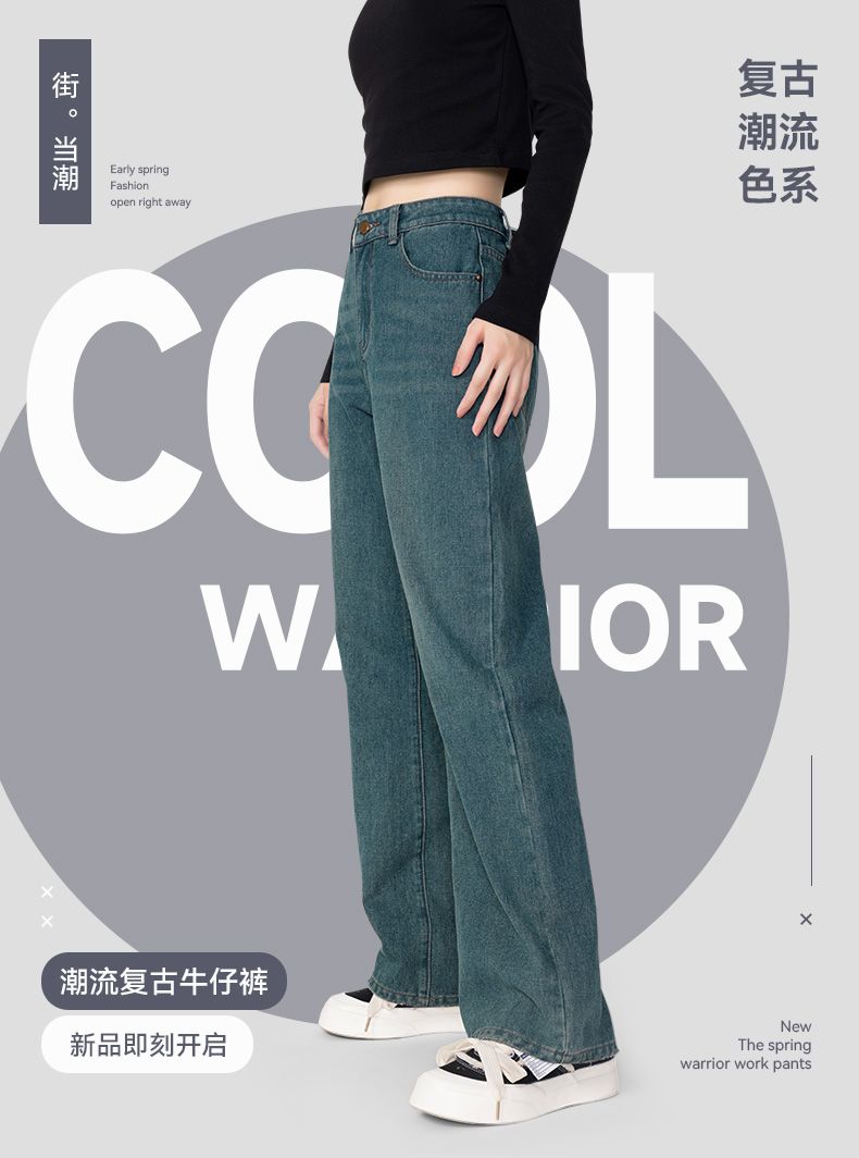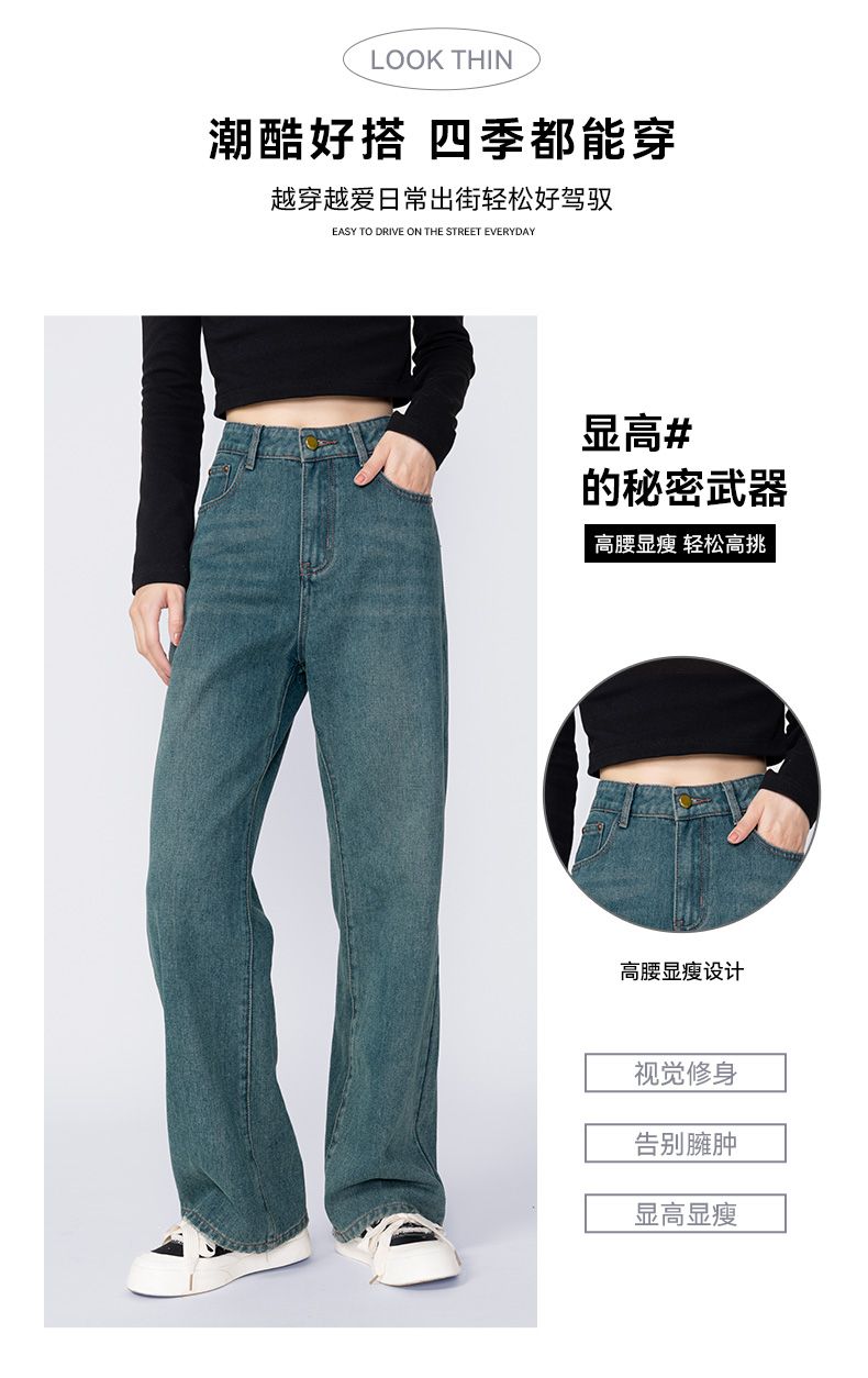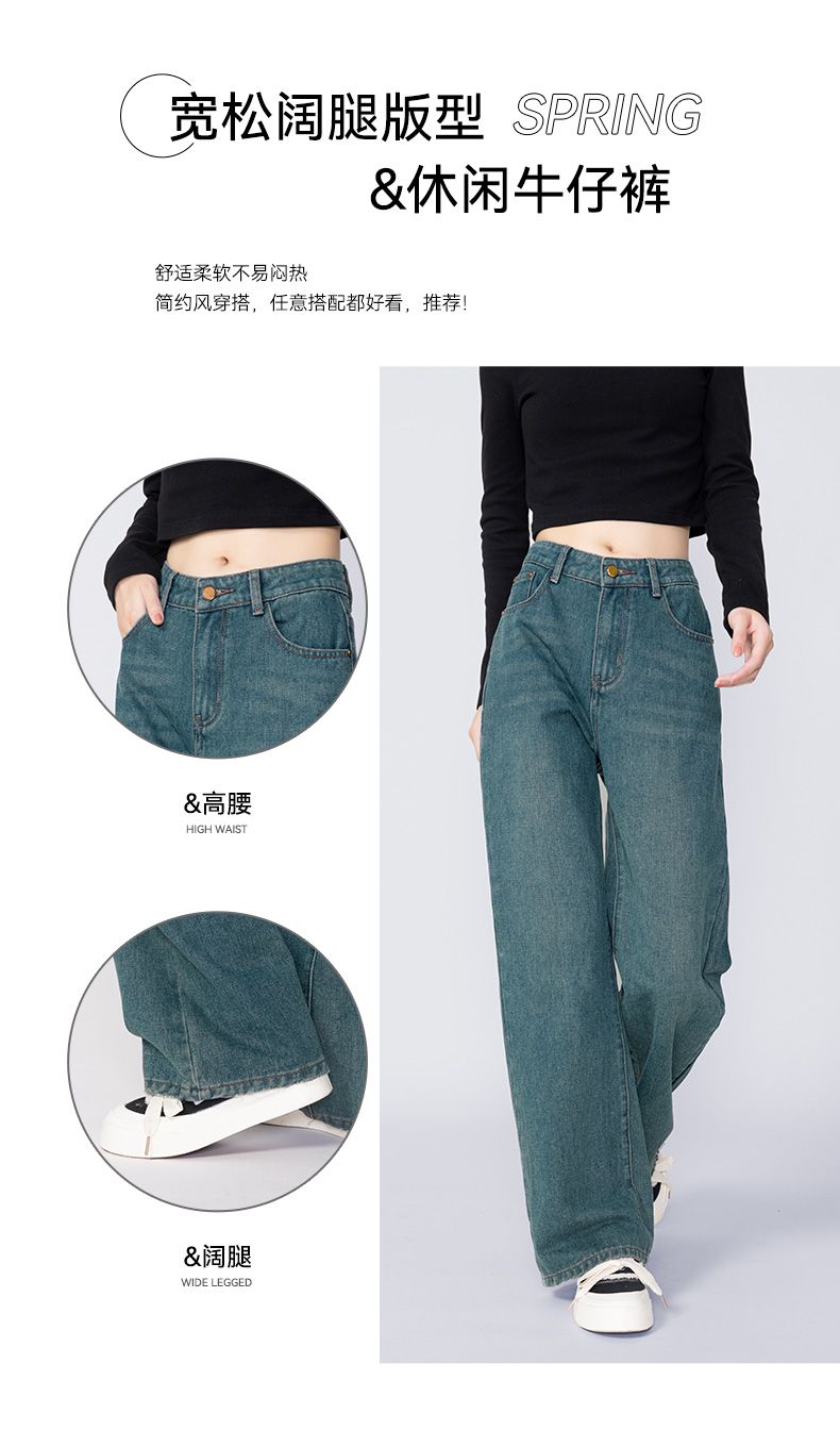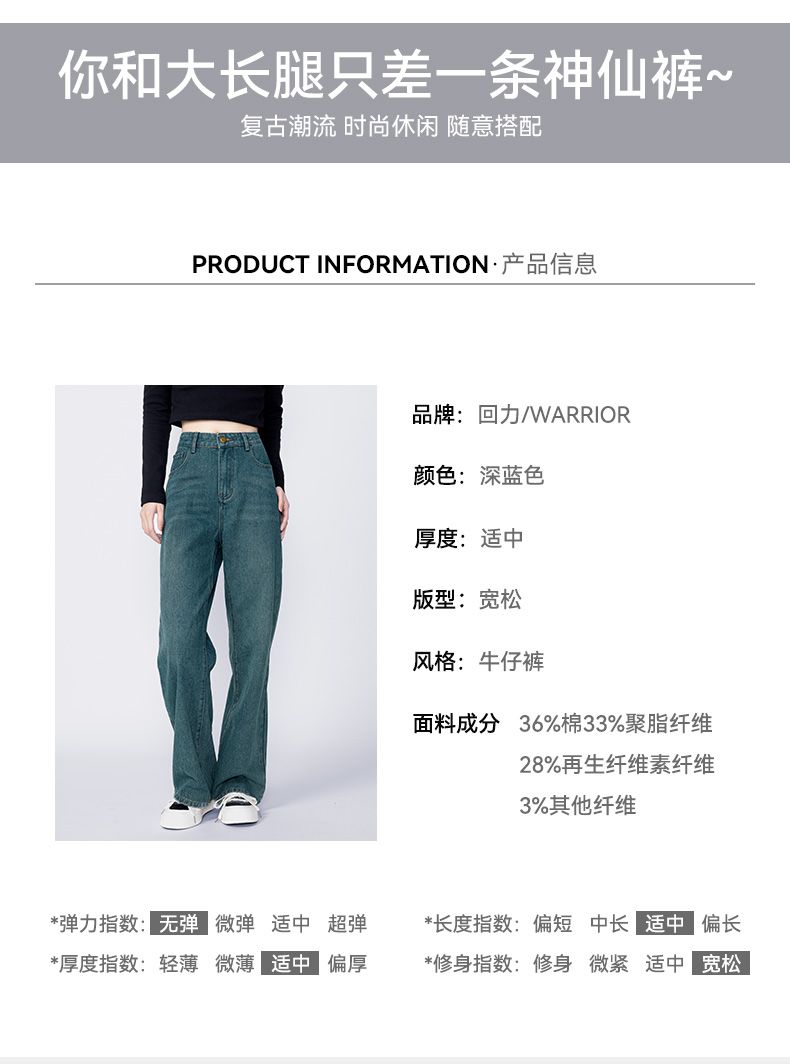 回力牛仔裤女春秋新款宽松显瘦遮肉阔腿裤韩版小个子高腰休闲裤子