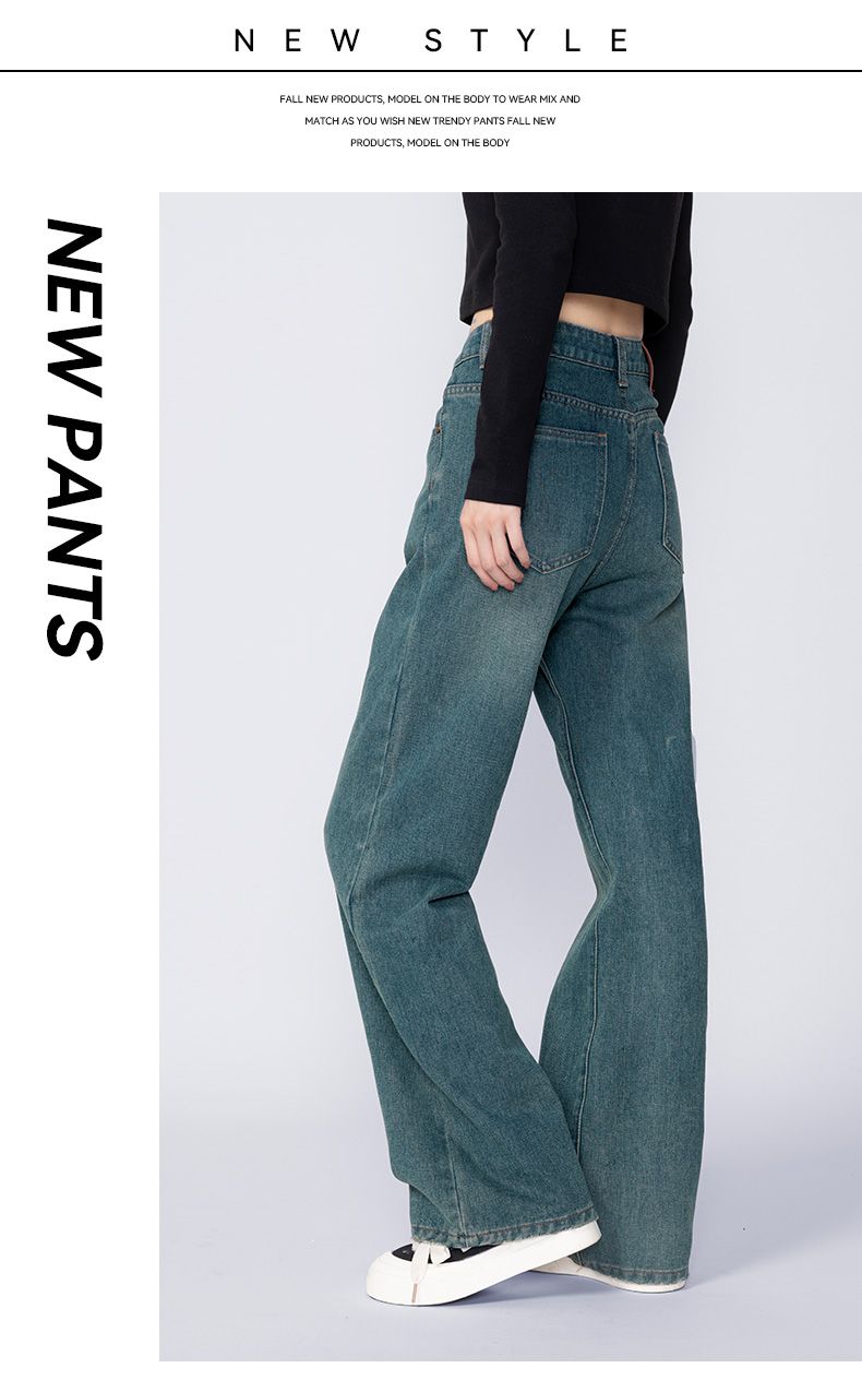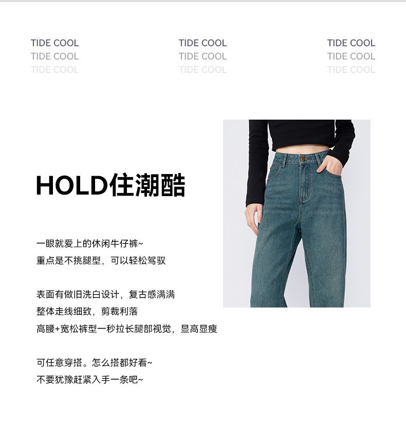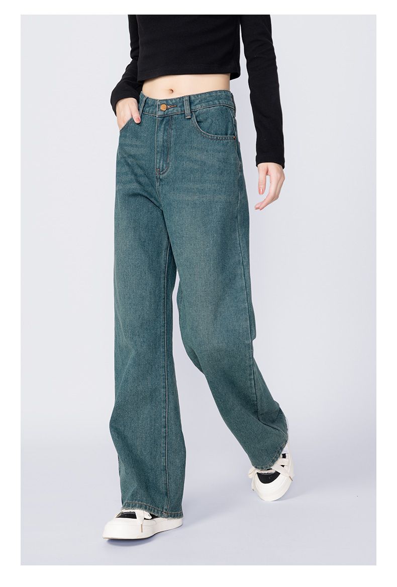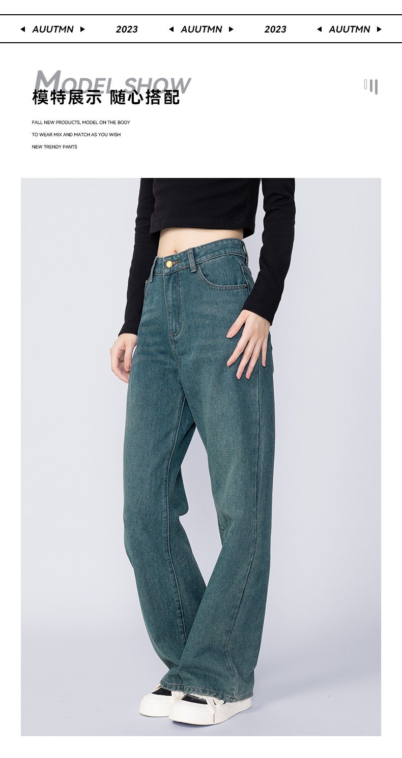 回力牛仔裤女春秋新款宽松显瘦遮肉阔腿裤韩版小个子高腰休闲裤子