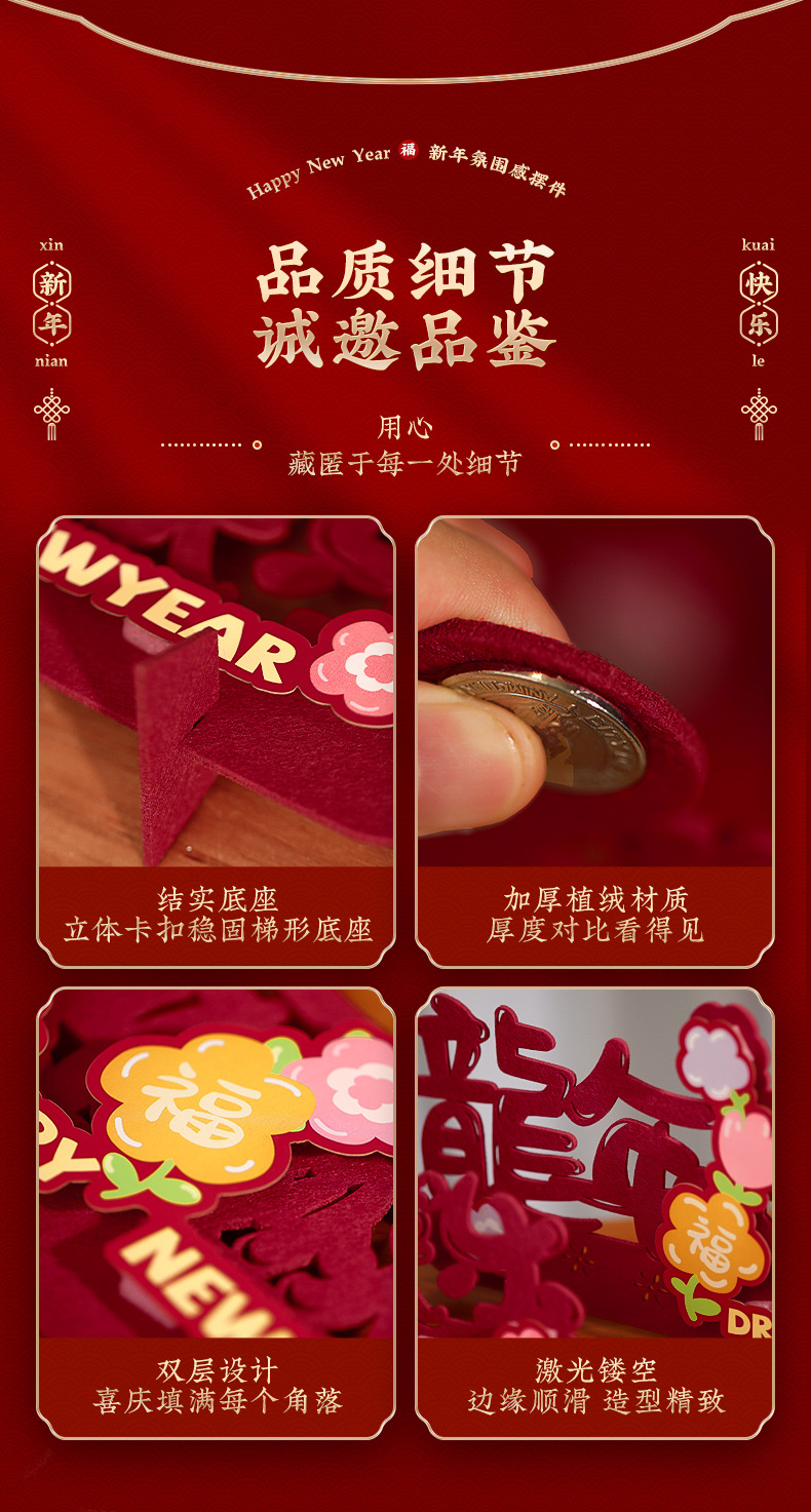 2024新年摆件春节过年装饰无纺布柜台前台招财龙年展示台桌面摆台