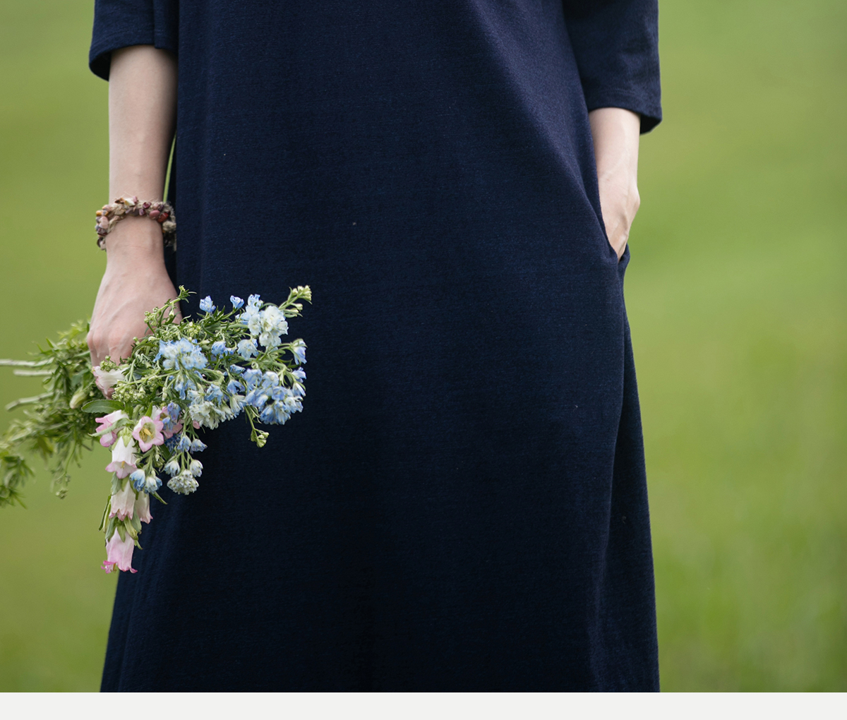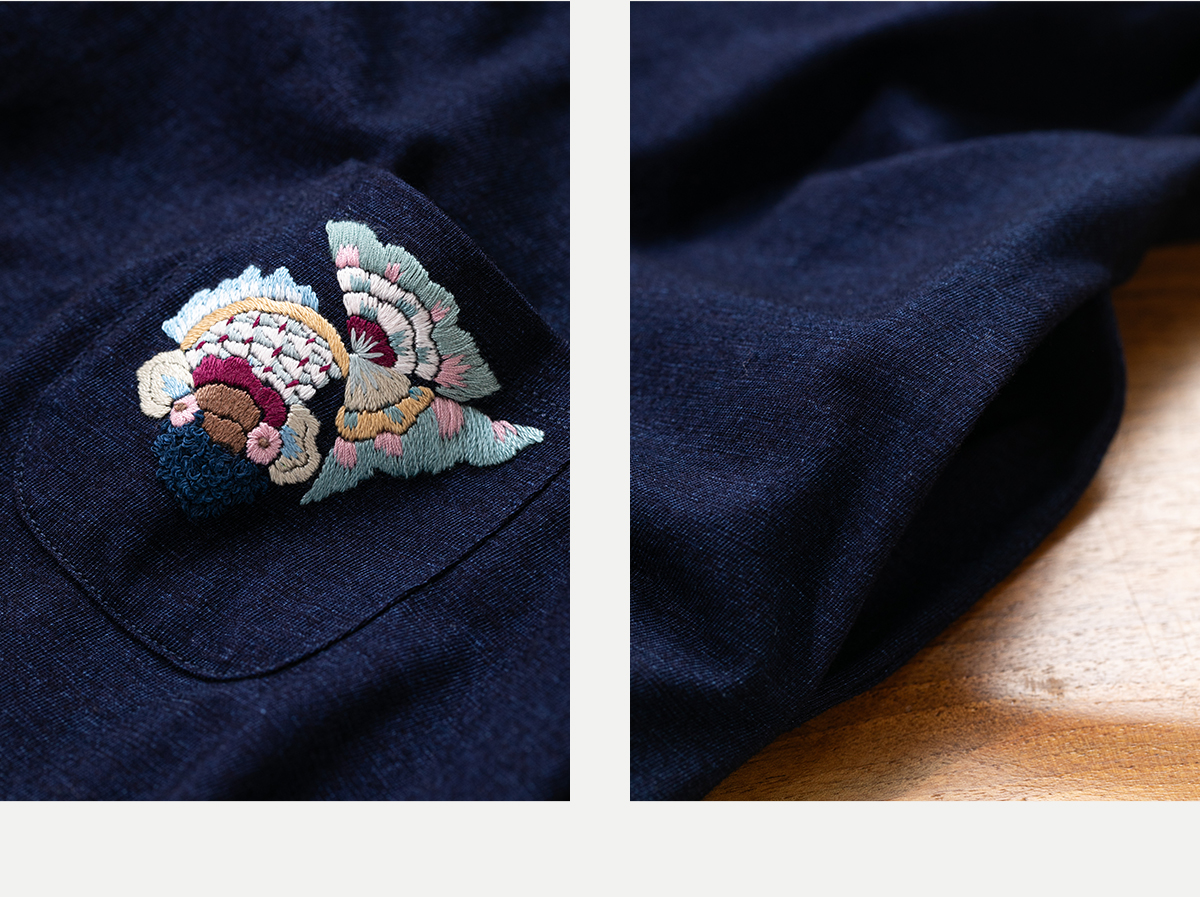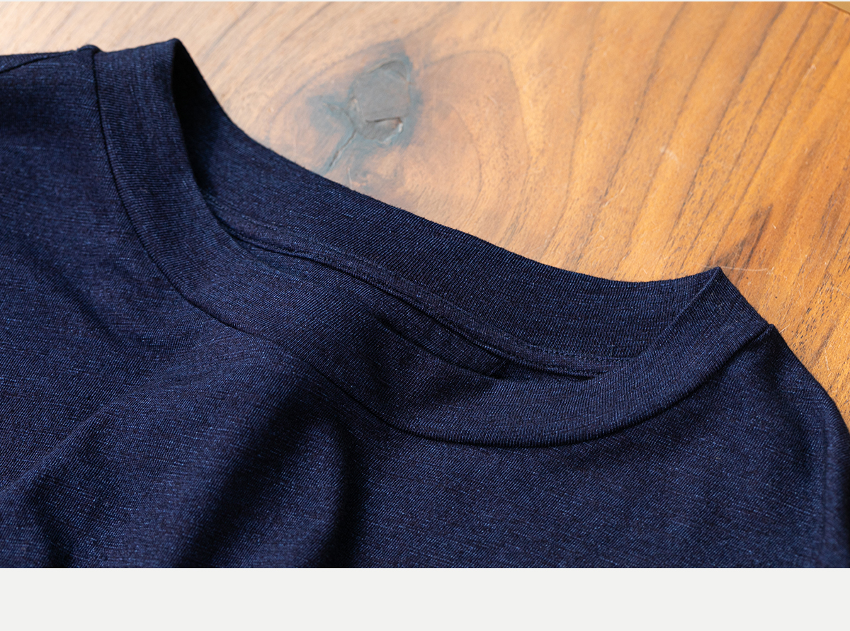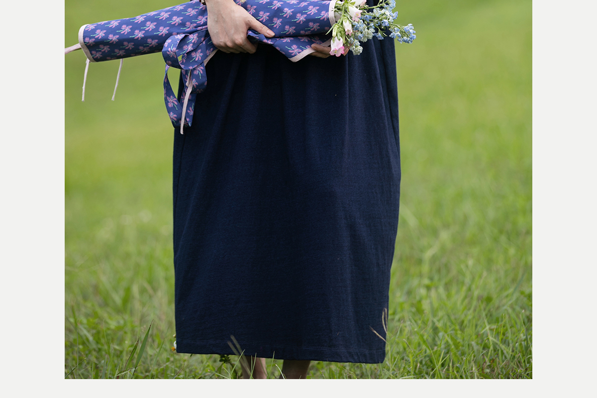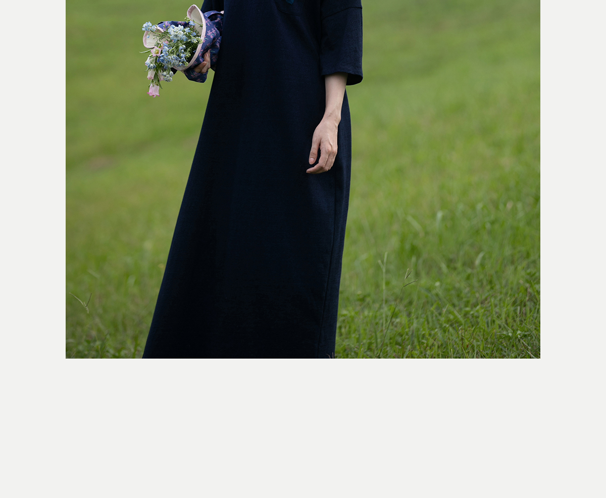 牧衣游原创 酵洗刺绣连衣裙轻薄圆领靛蓝色随性宽松短袖长裙 月景