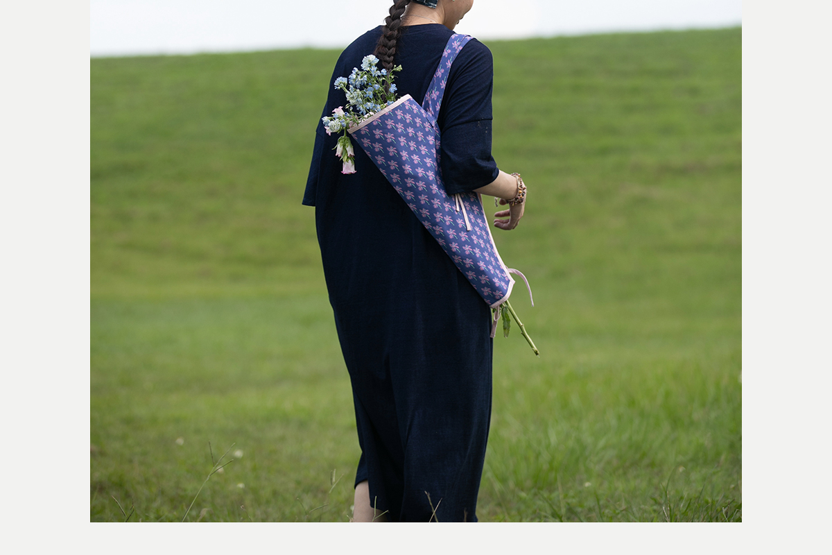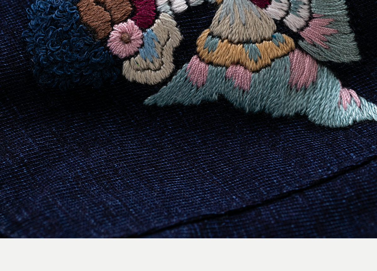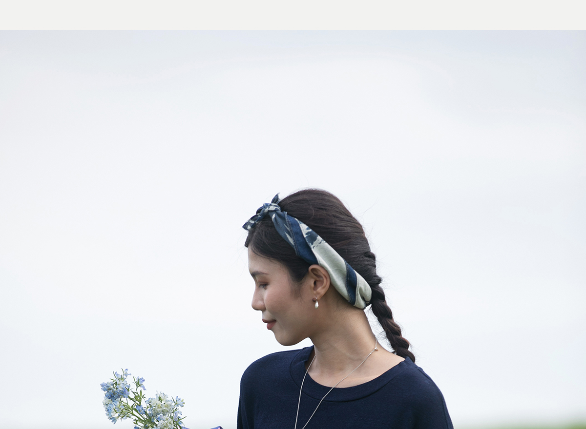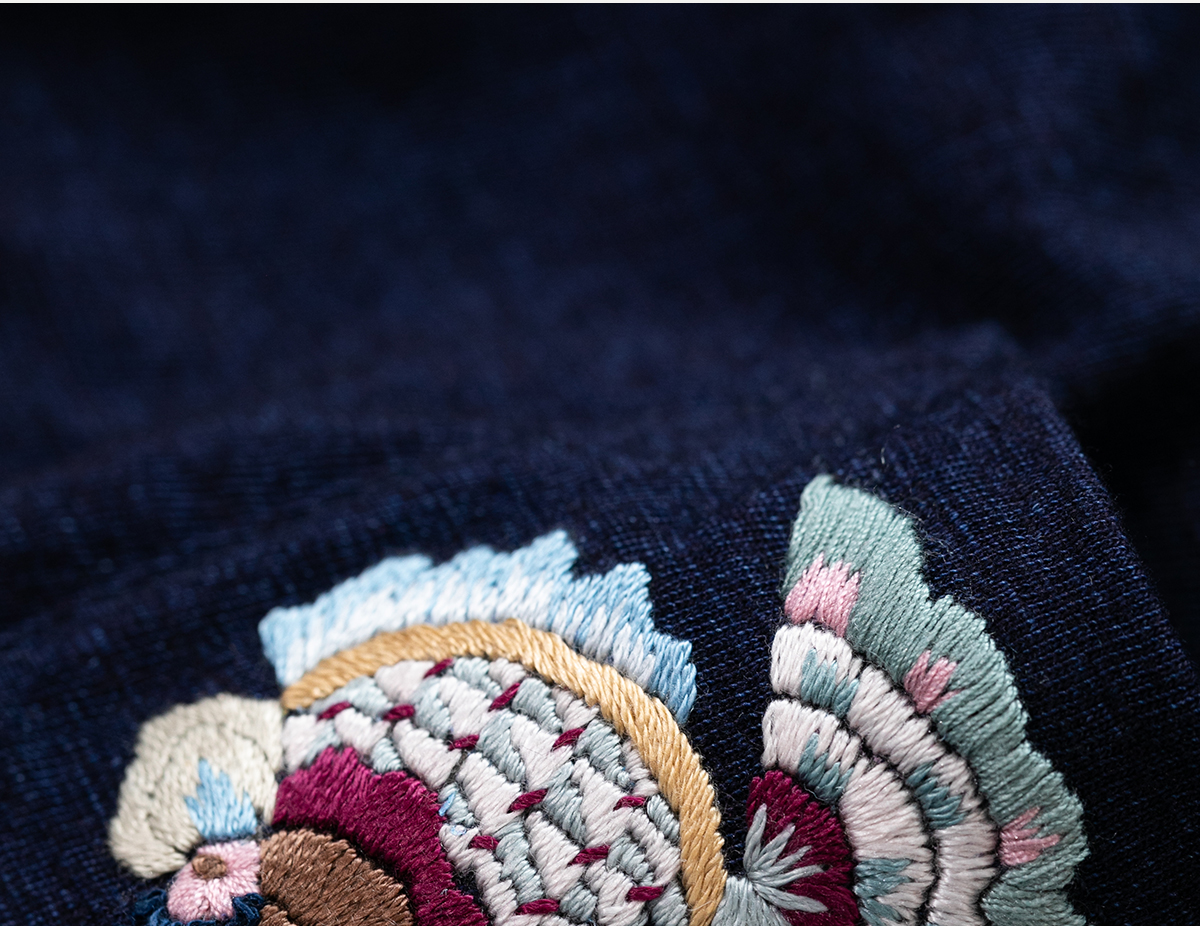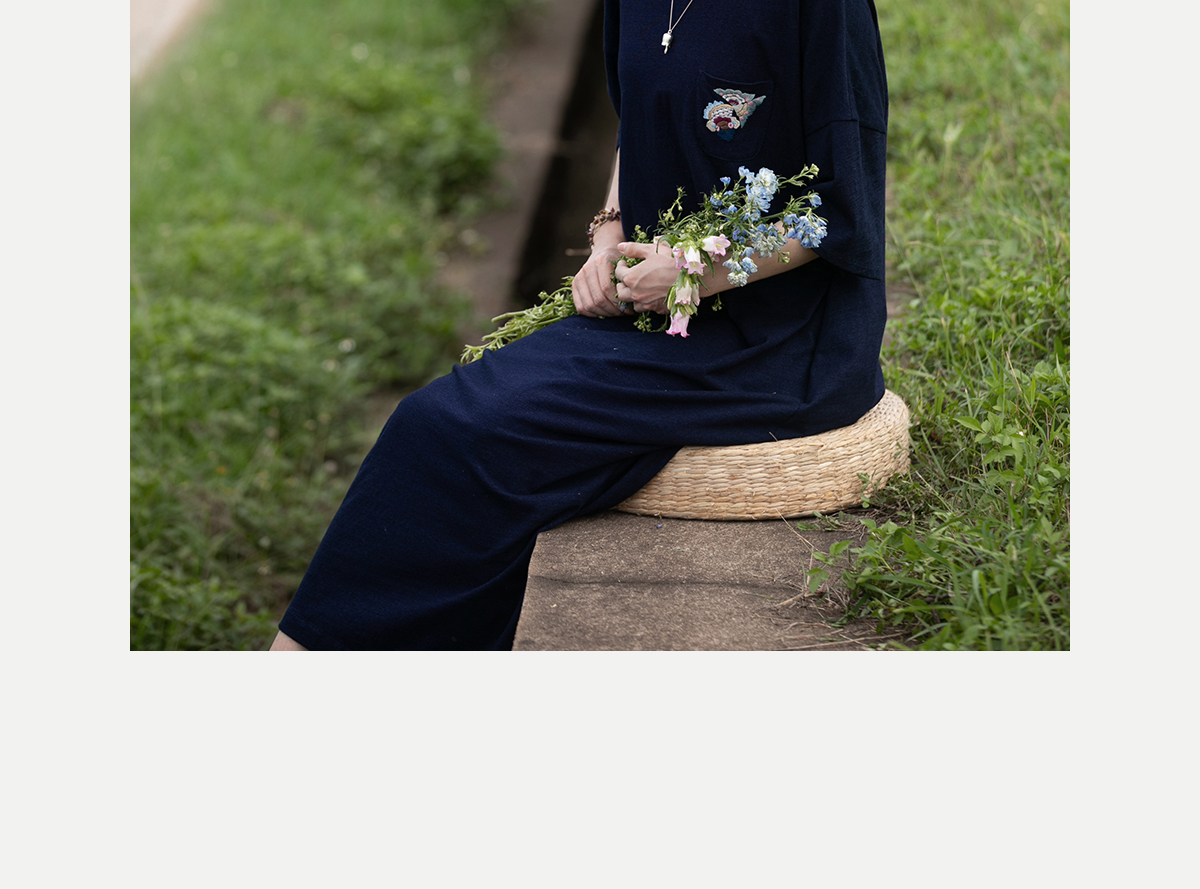牧衣游原创 酵洗刺绣连衣裙轻薄圆领靛蓝色随性宽松短袖长裙 月景