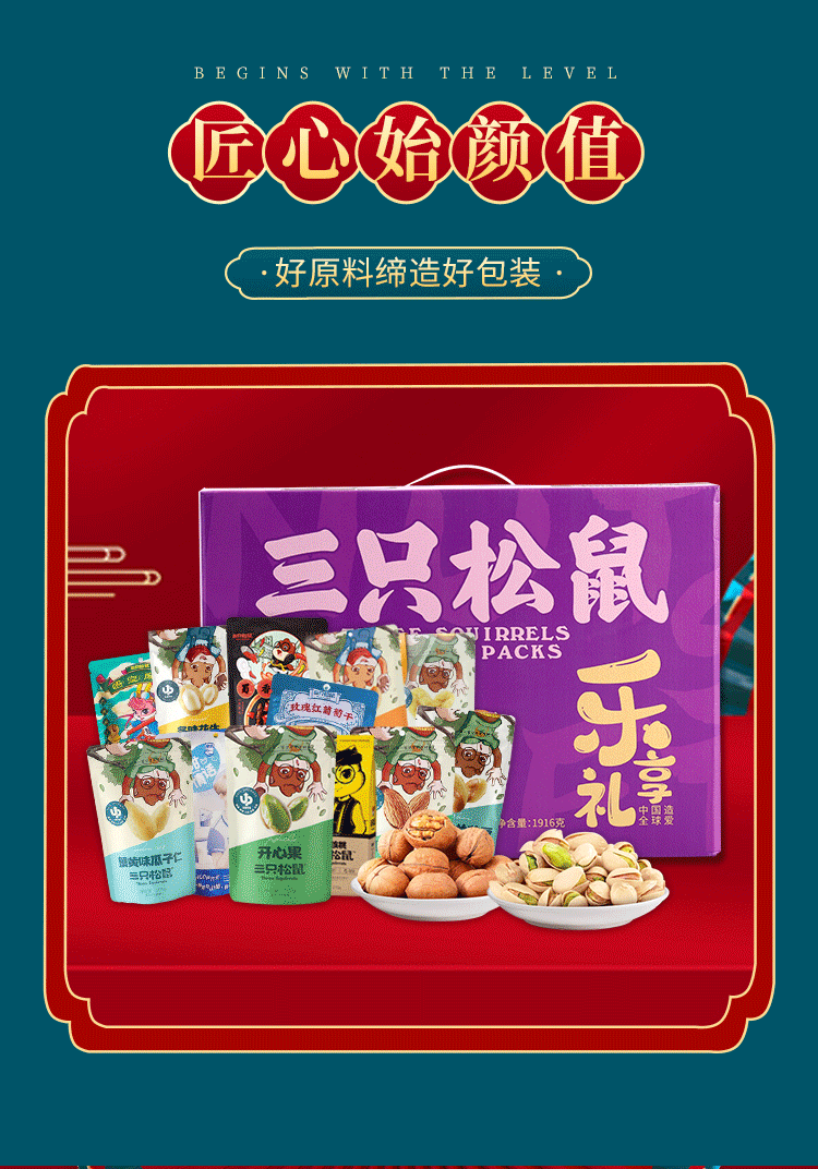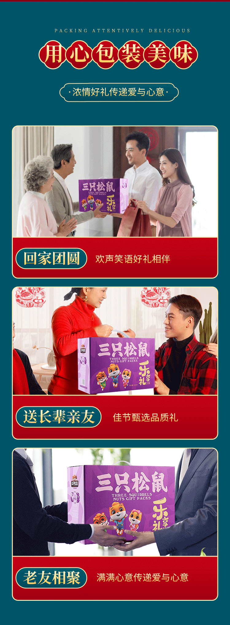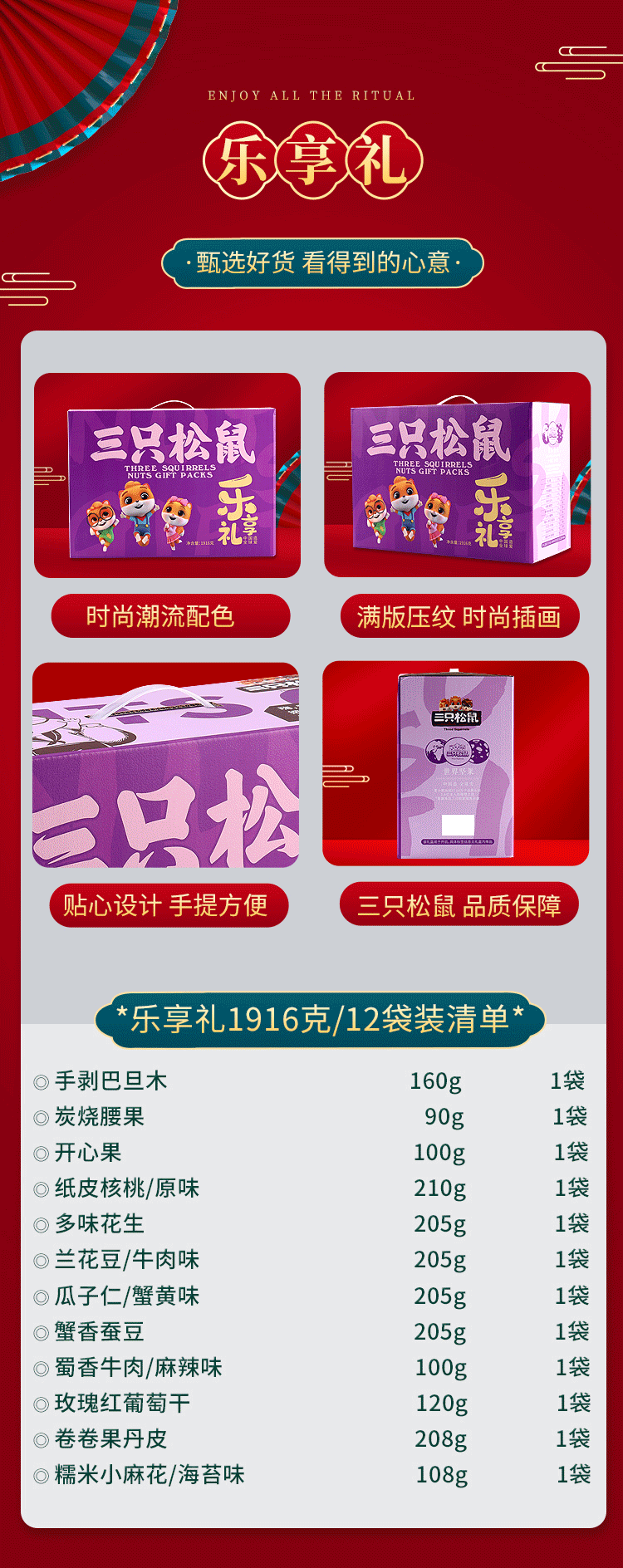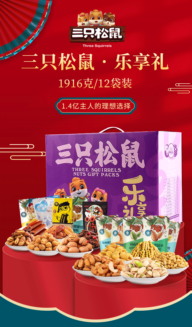 【已下架】积分换购 | 三只松鼠 乐享礼 坚果新年礼盒12袋(1916g)[福利品]