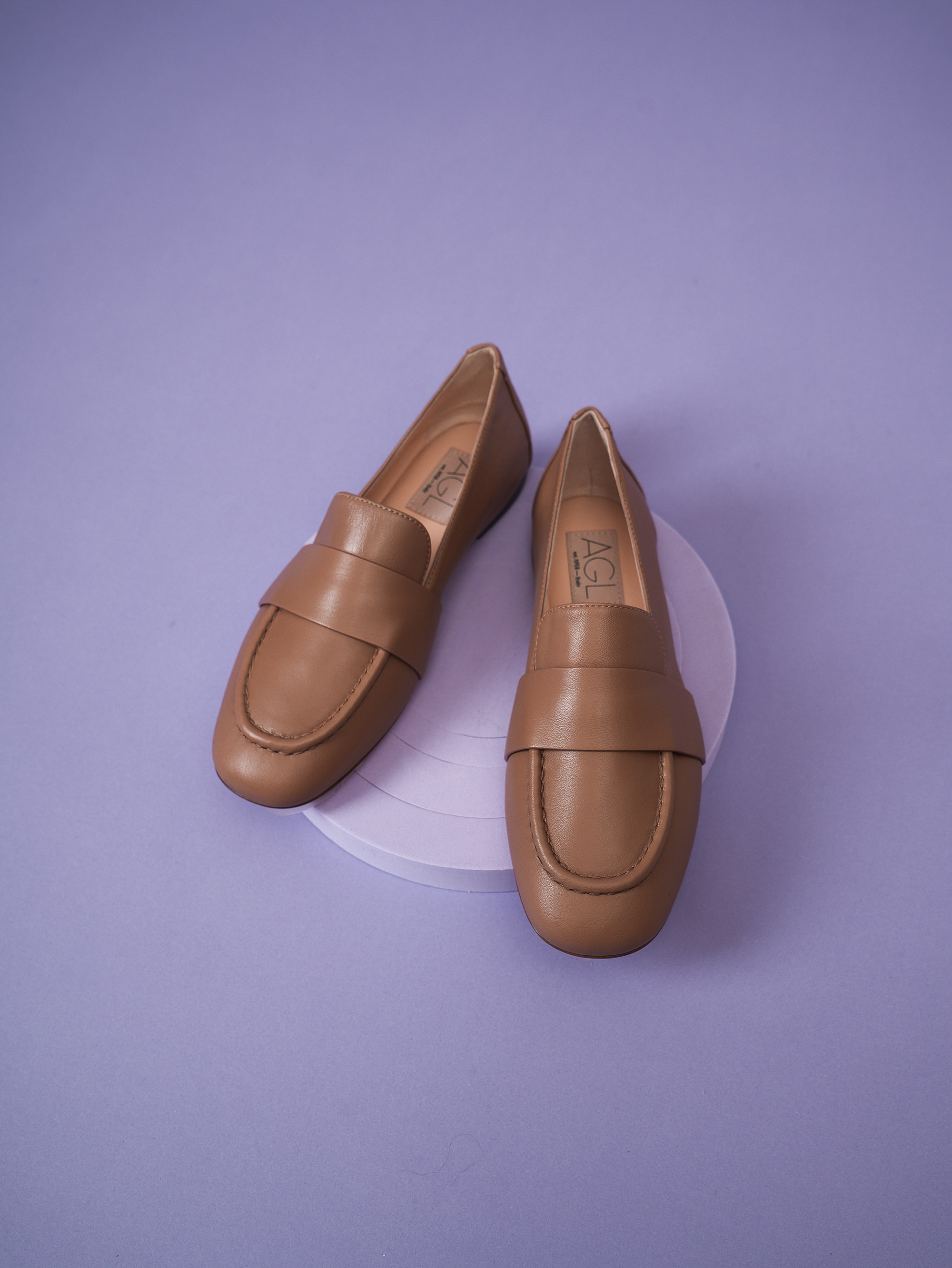 豪麟名鞋AGL女鞋平底鞋羊皮革D834083驼色