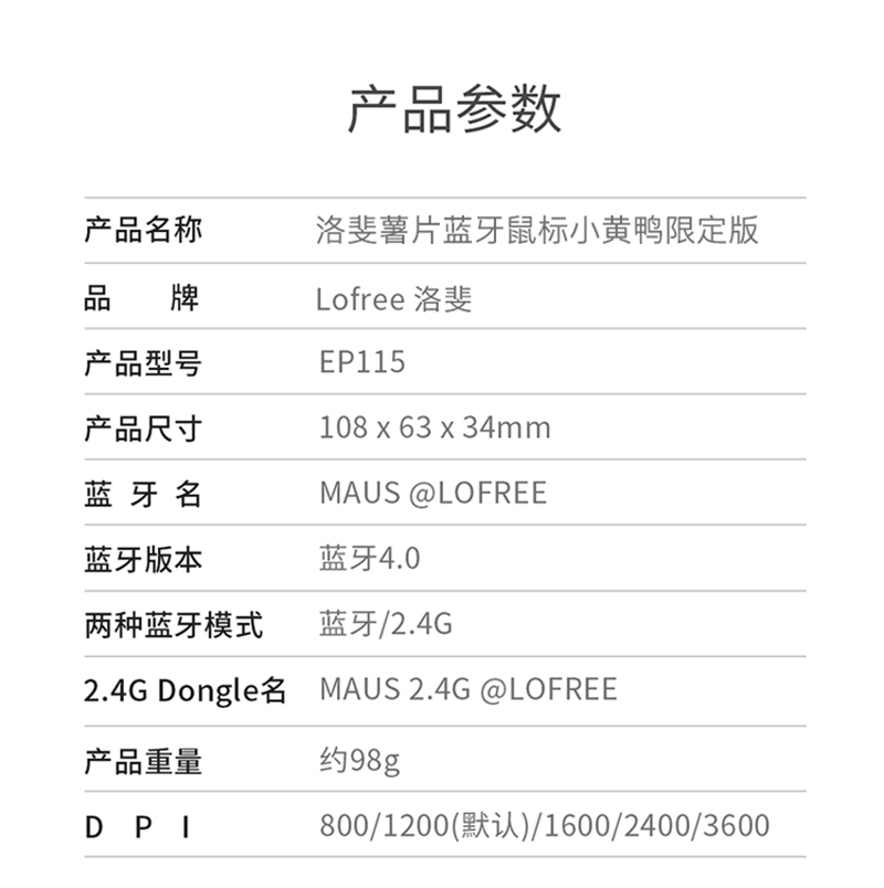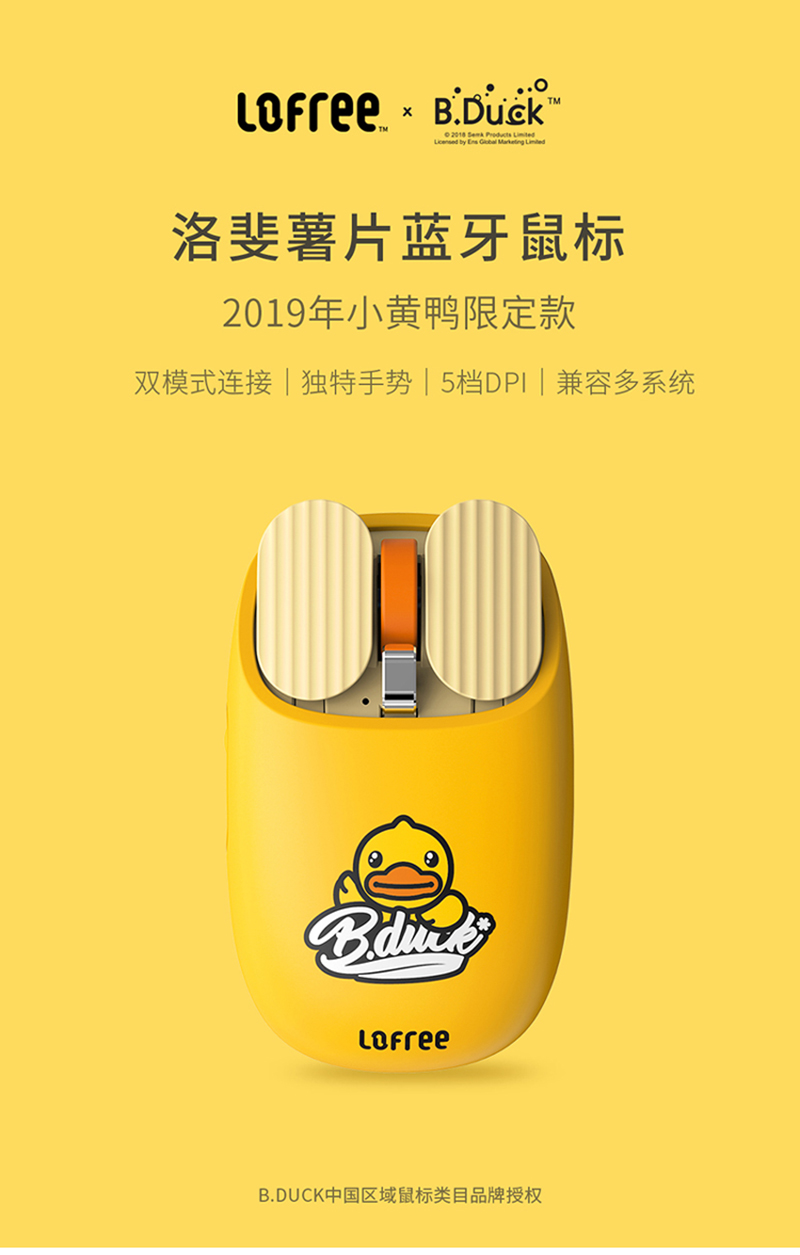 LOFREE 洛斐薯片小黄鸭限定蓝牙鼠标 [福利品]