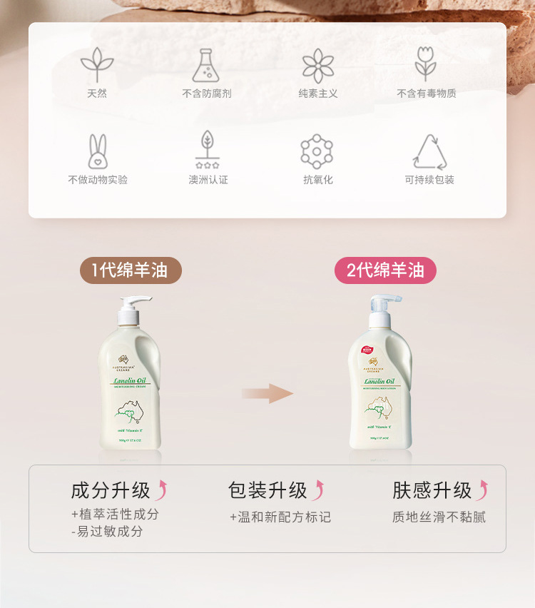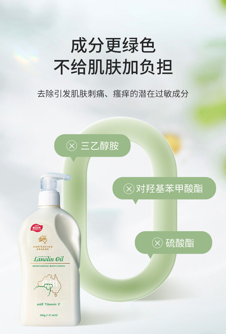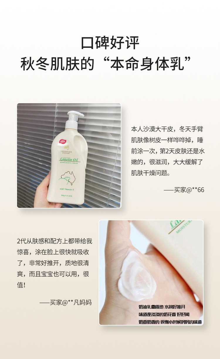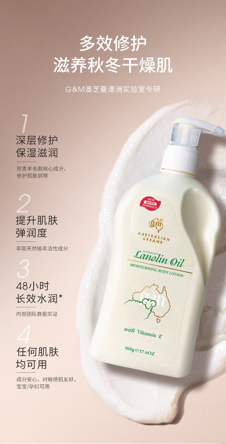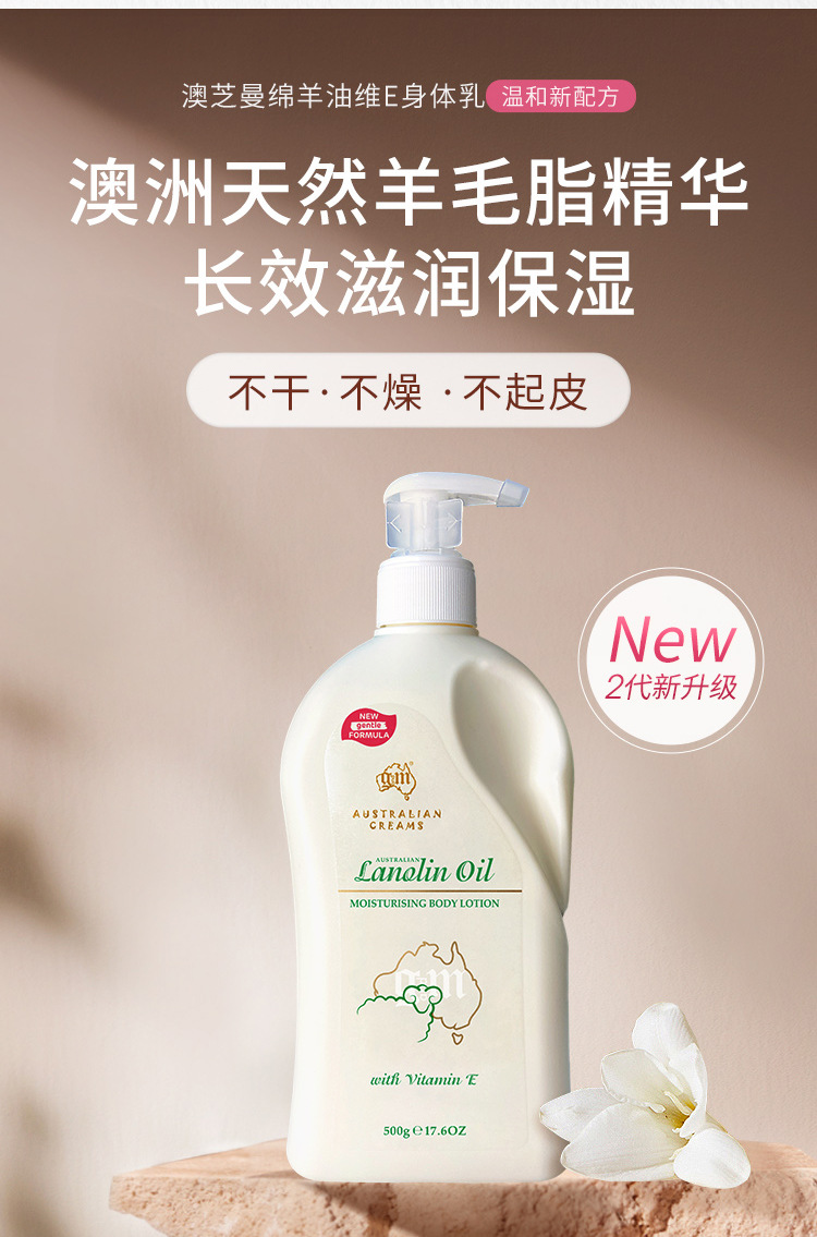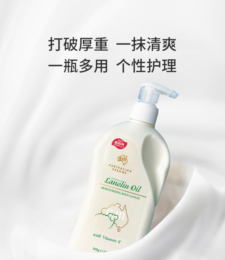 澳洲G&M澳芝曼绵羊脂维生素E霜身体乳保湿补水乳液500g一般贸易