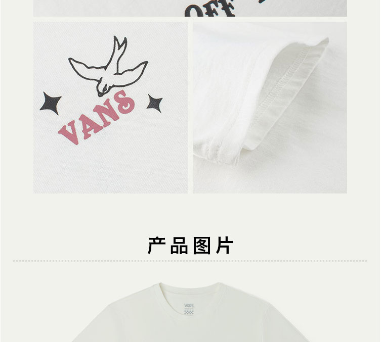 VANS女子短袖T恤夏季彩色图案蝴蝶米白色VN0A7Q17FS8