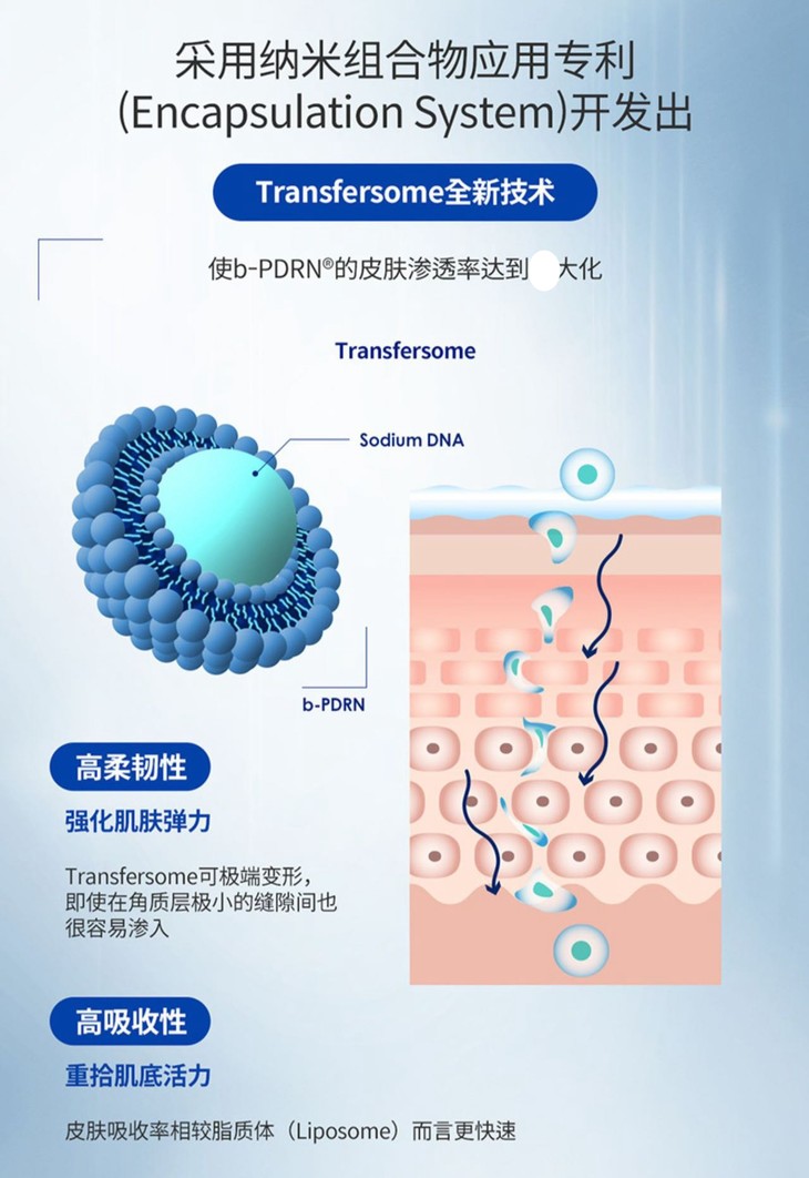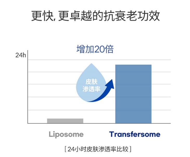 其次采用Transfersome专利技术,实现皮肤渗透率蕞大化,24小时内让吸收率提升20倍,大大提高重要成分的有效作用!