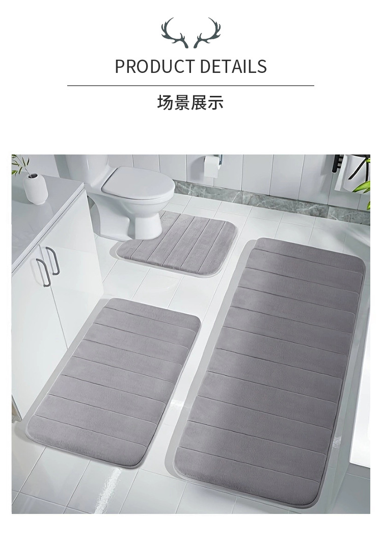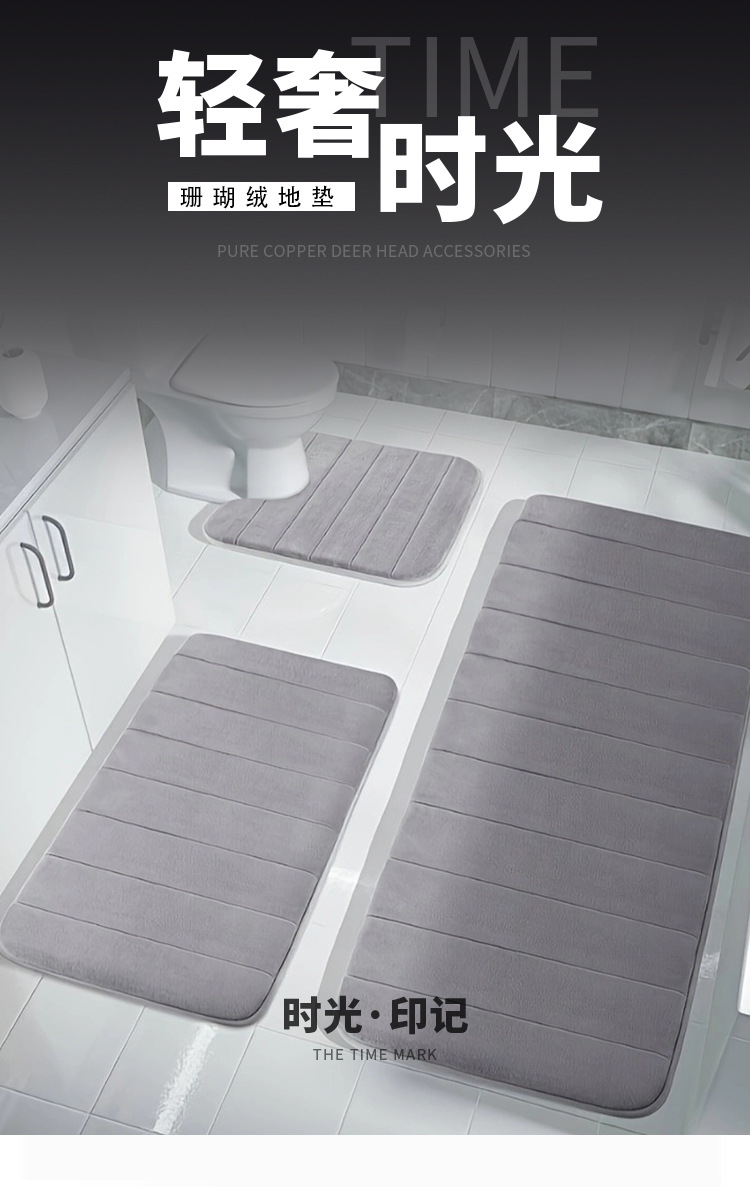 「三件套!轻奢质感」马桶地垫浴室吸水防滑垫卫生间纯色珊瑚绒地垫居家布艺