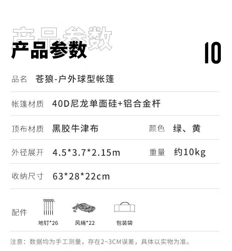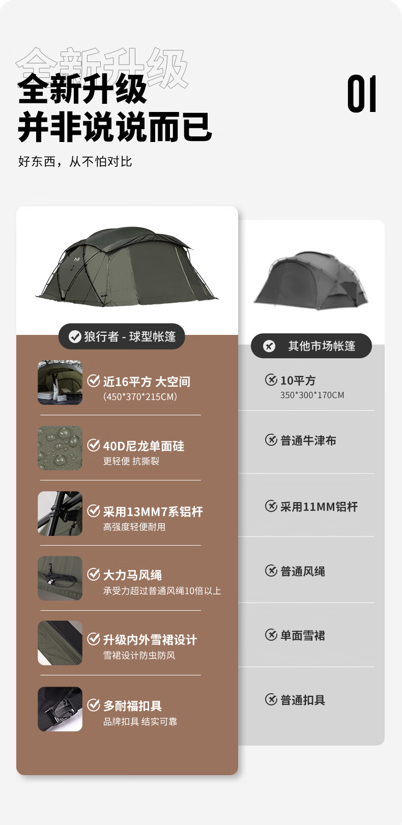 狼行者苍狼卫帐篷户外球形穹顶四季加厚防风防雨野营露营装备过夜 翠星