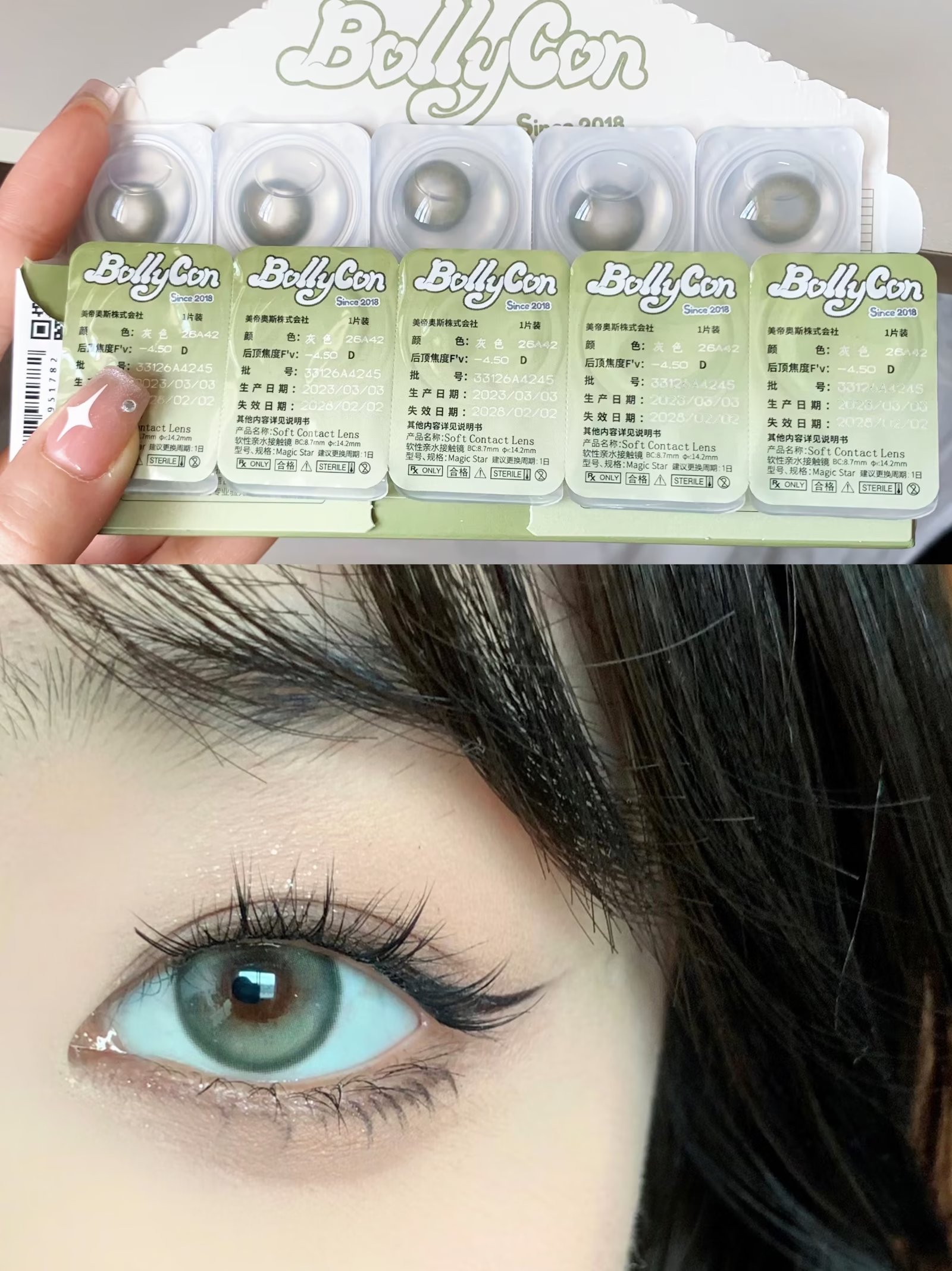【日抛】小幽灵 Bollycon 中直径14.2 着色直径13.2 (同品牌多盒更划算,选款色板在详情页内)基弧8.7 绿色美瞳