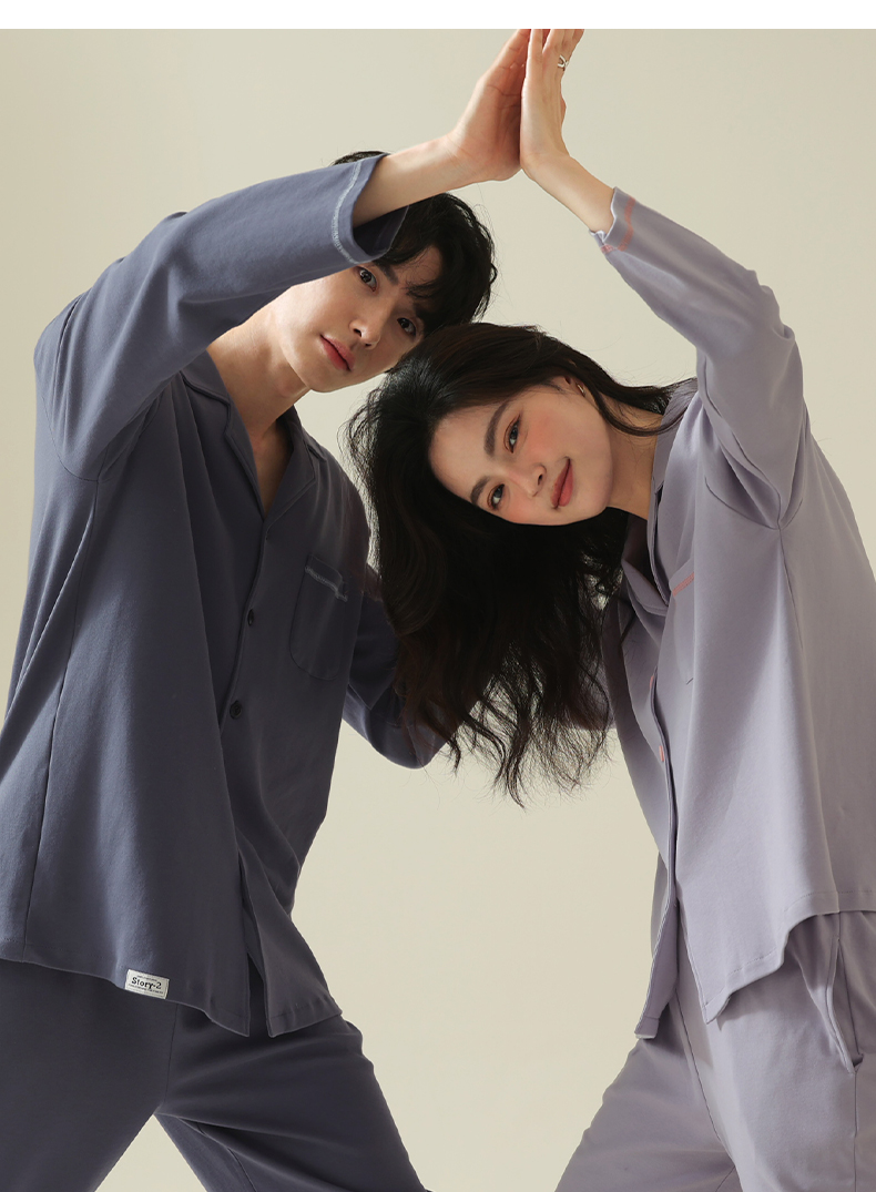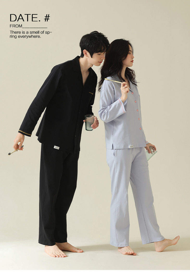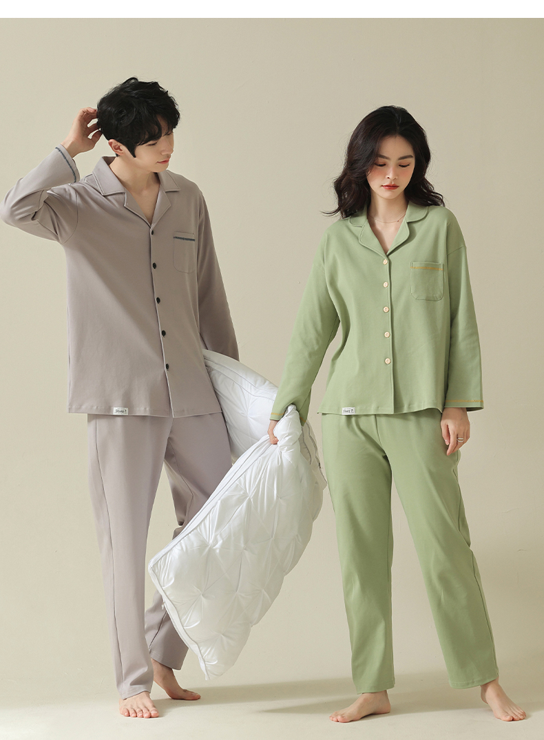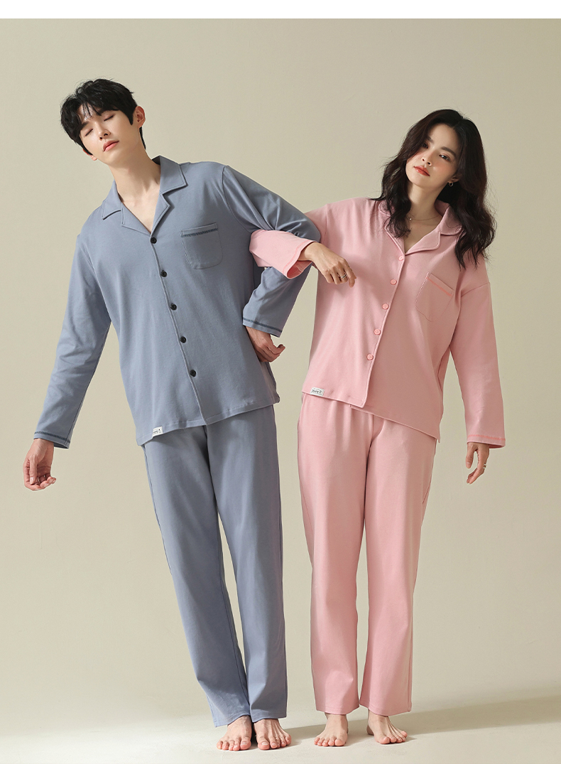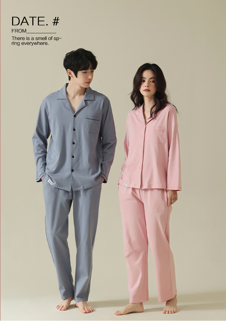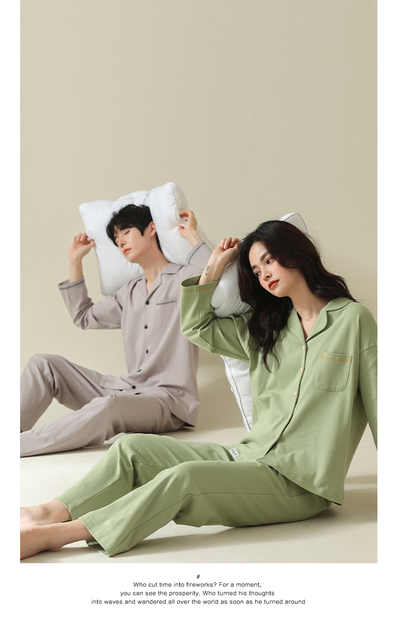 【舒肤棉】自然醒新疆棉情侣睡衣女春季新款长袖翻领开衫素色套装男士家居服可外穿JLM