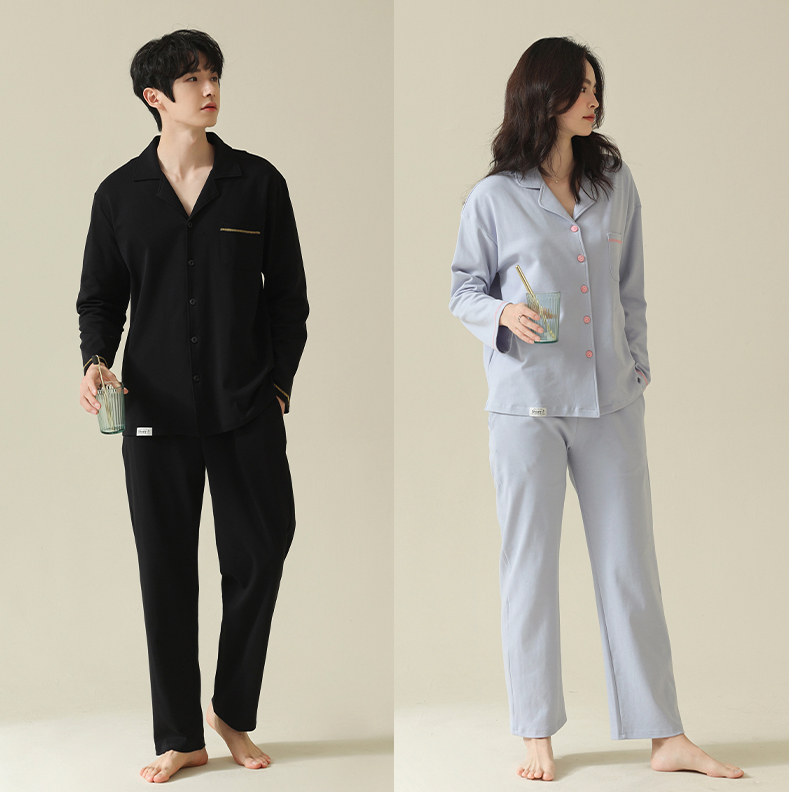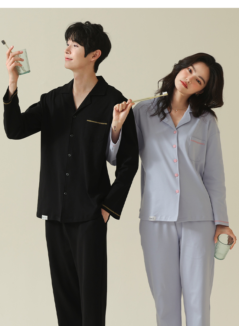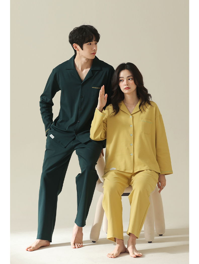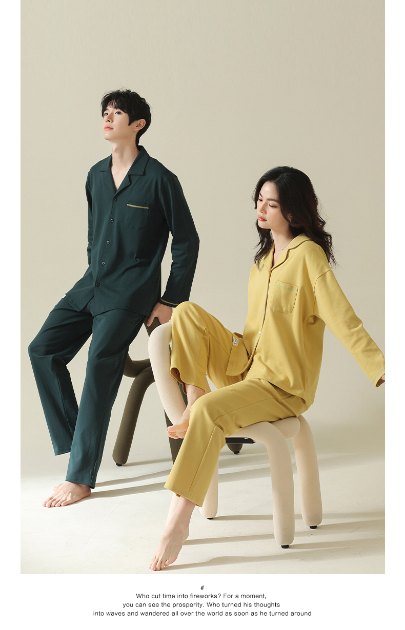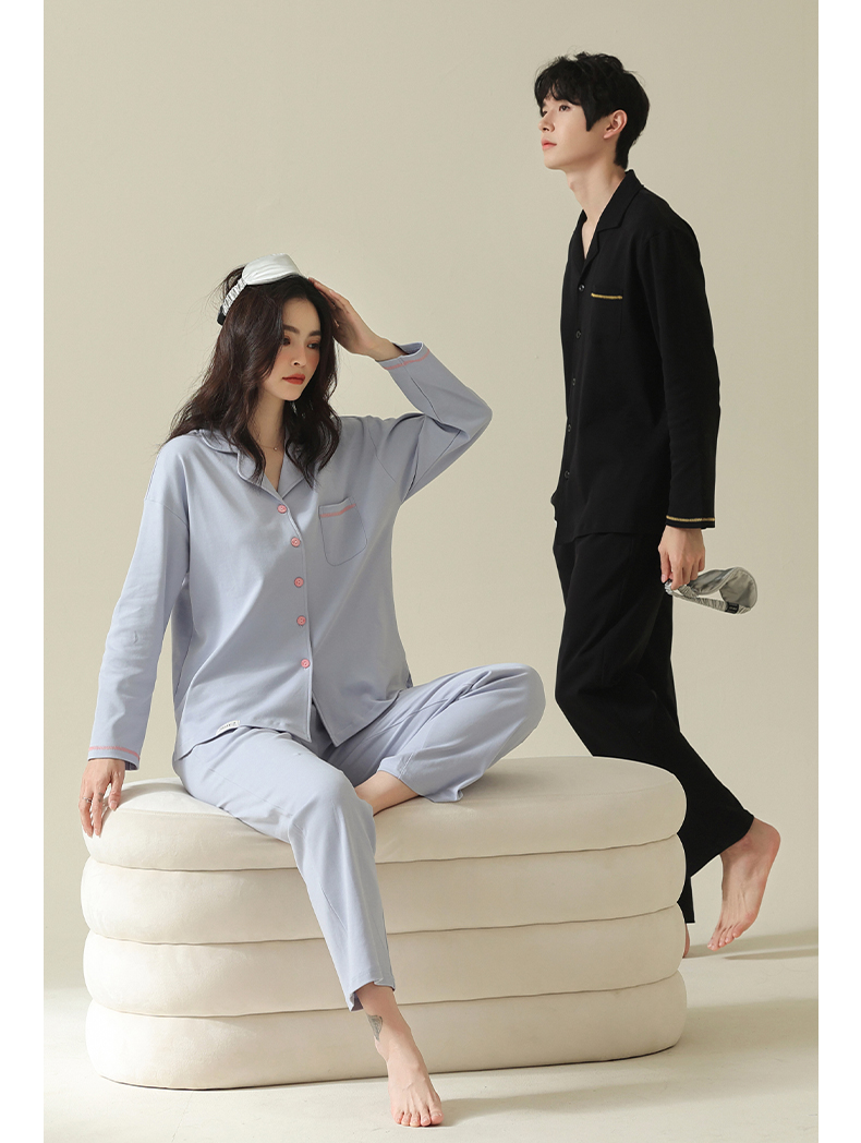 【舒肤棉】自然醒新疆棉情侣睡衣女春季新款长袖翻领开衫素色套装男士家居服可外穿JLM