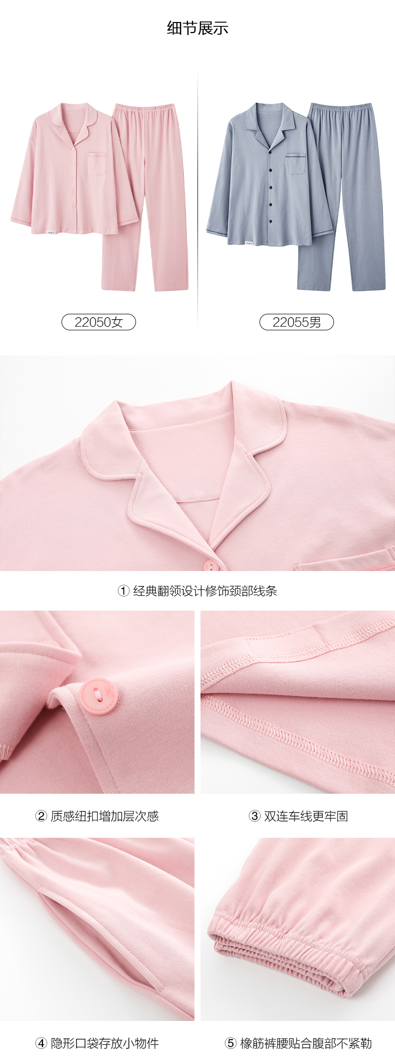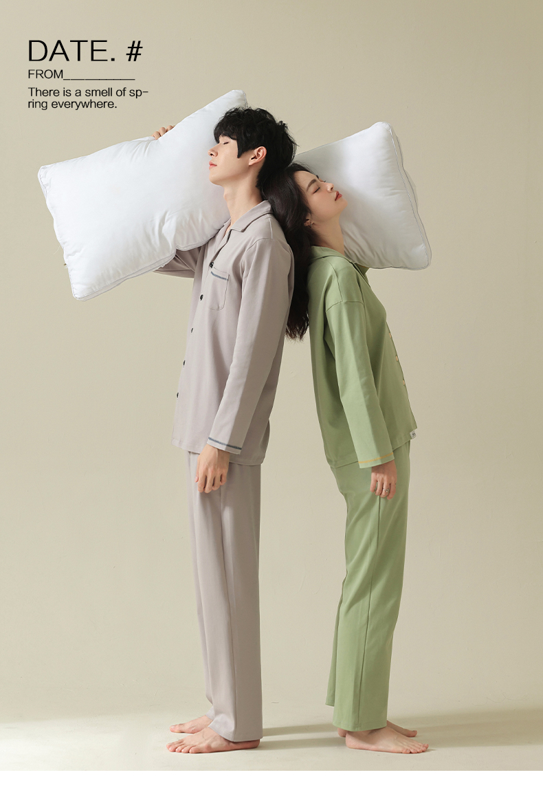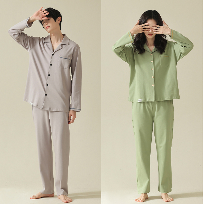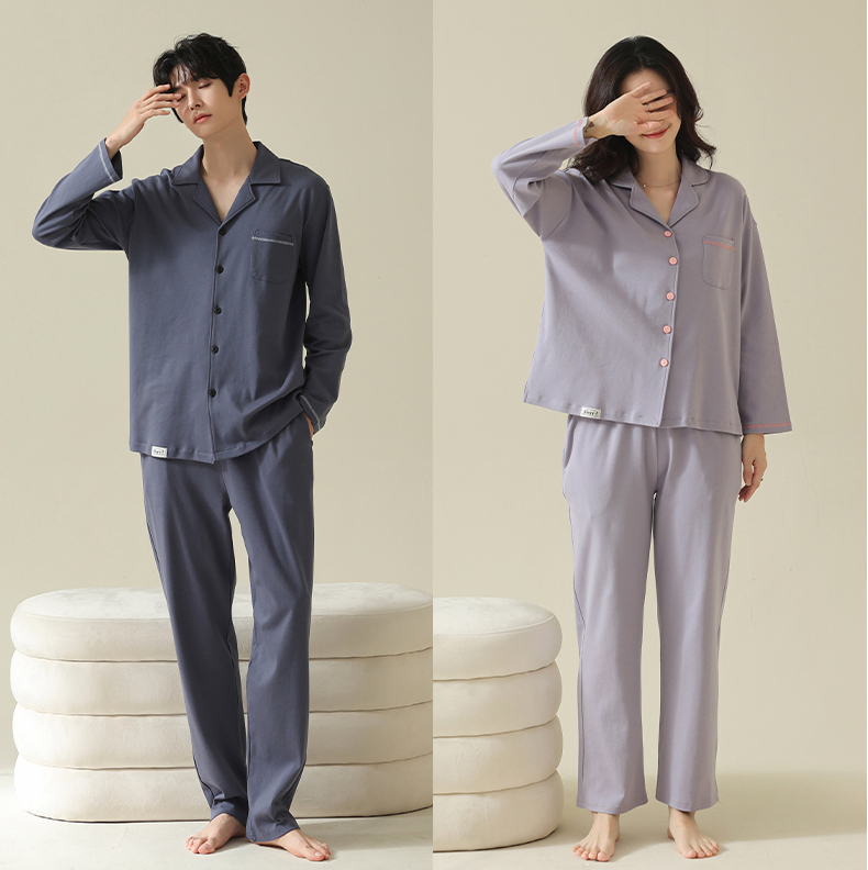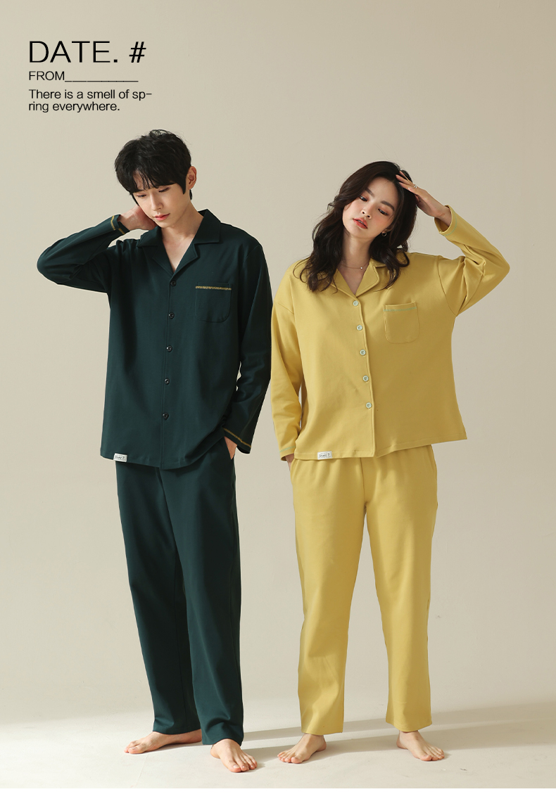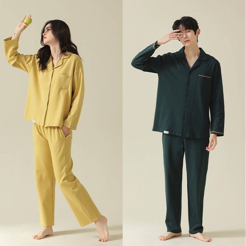 【舒肤棉】自然醒新疆棉情侣睡衣女春季新款长袖翻领开衫素色套装男士家居服可外穿JLM