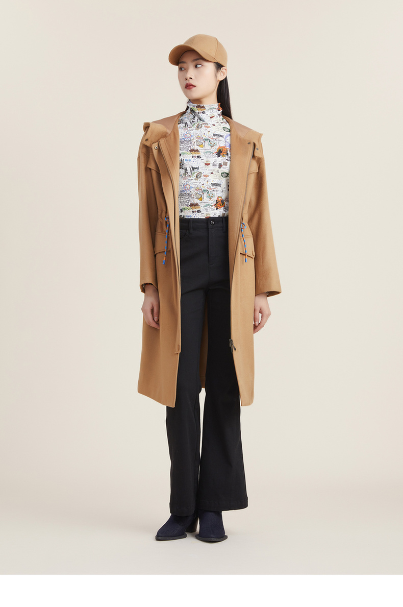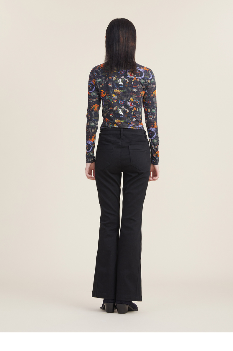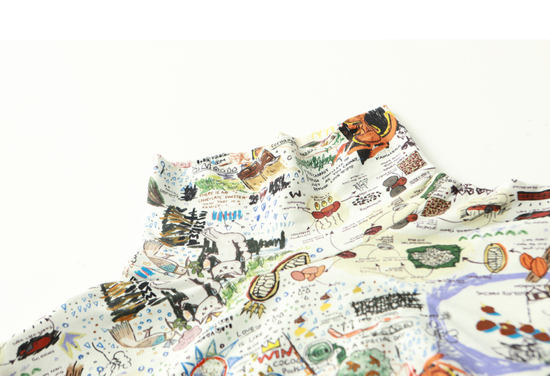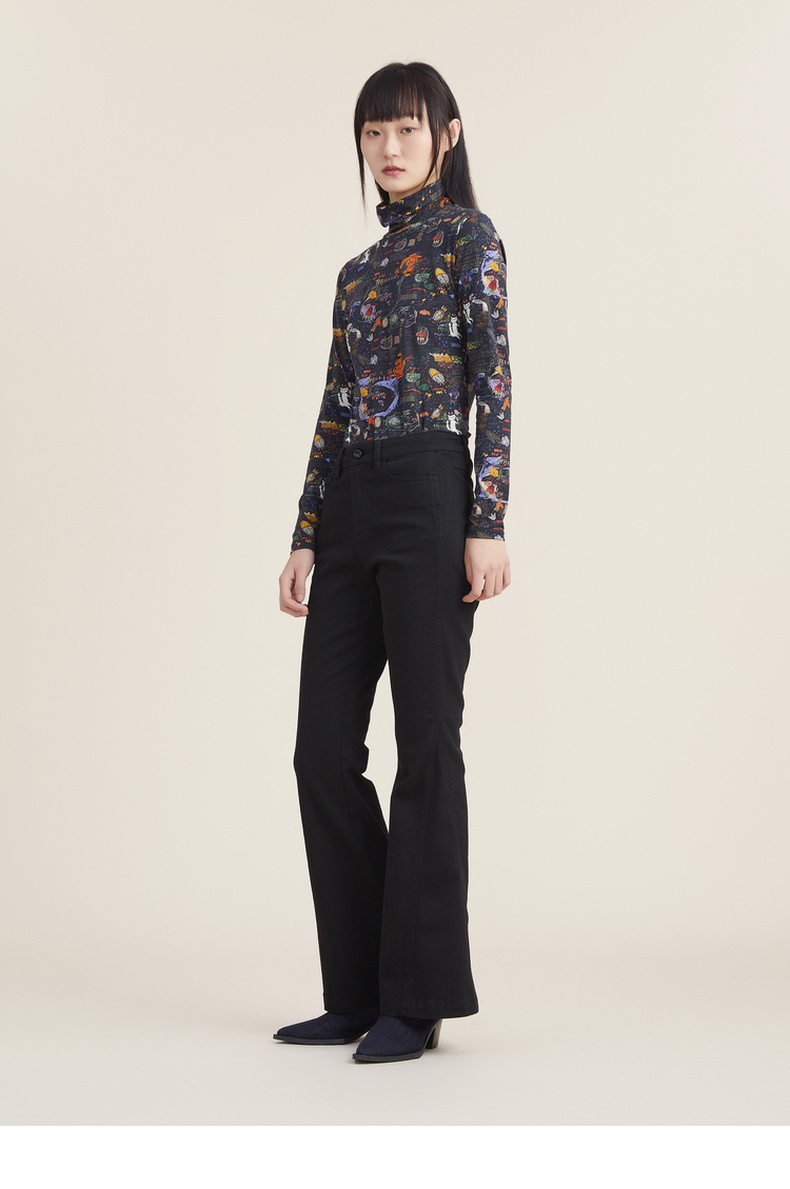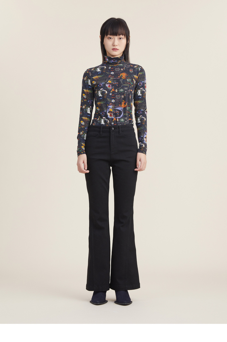 谜底休闲花色长袖半高领T恤女2022秋新款打底衫内搭上衣223MT1026