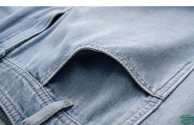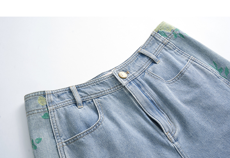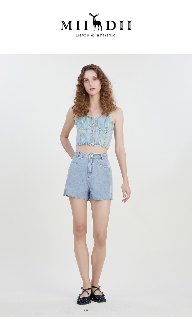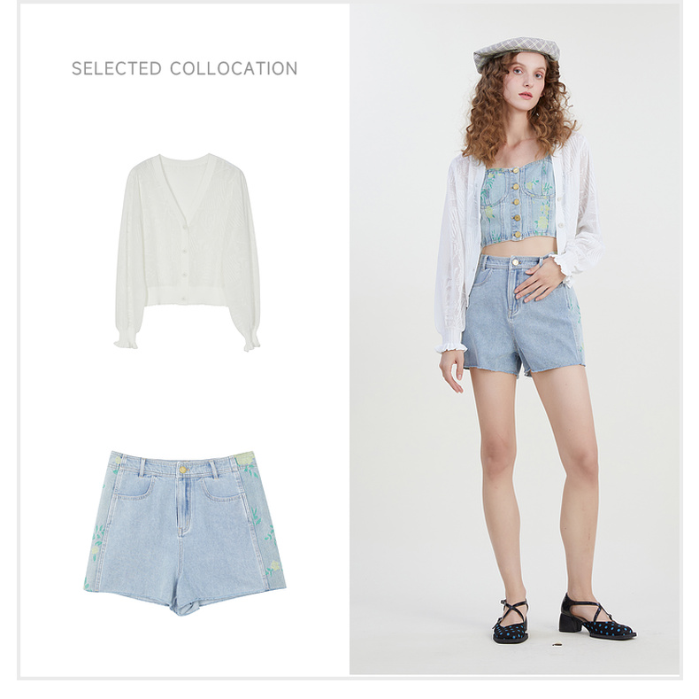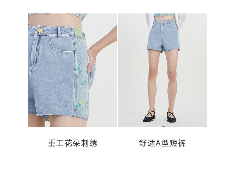 谜底绣花牛仔短裤女2023夏季新款时尚A型修身拼接直筒裤232MK0551