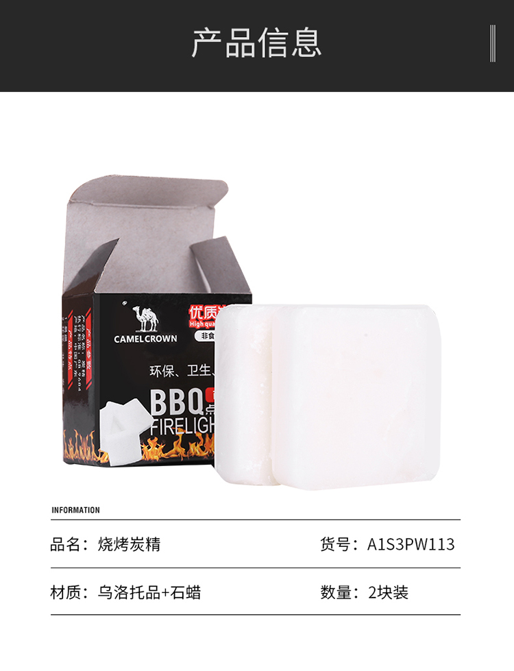 骆驼烧烤炭精助燃引火燃料无烟易燃小巧便携烧烤生火木炭助燃剂 A1S3PW113
