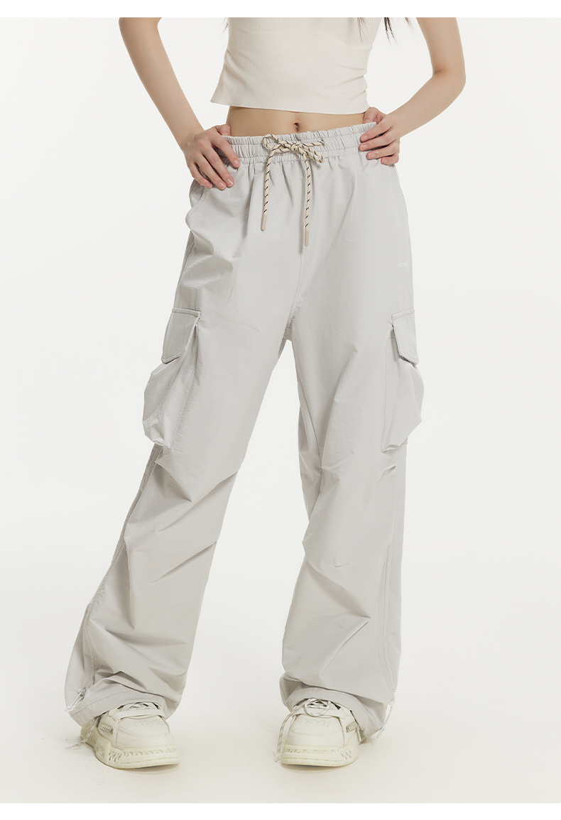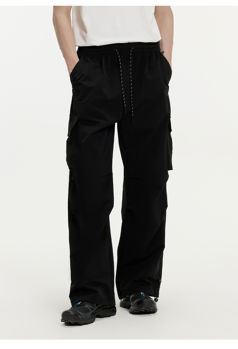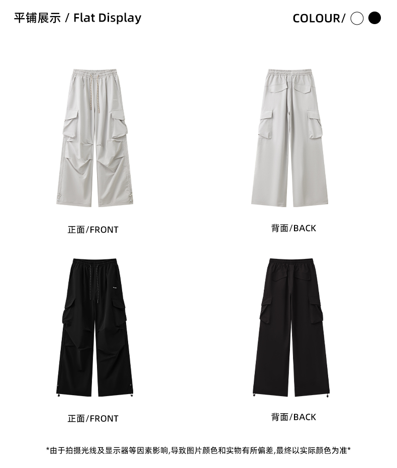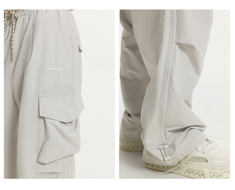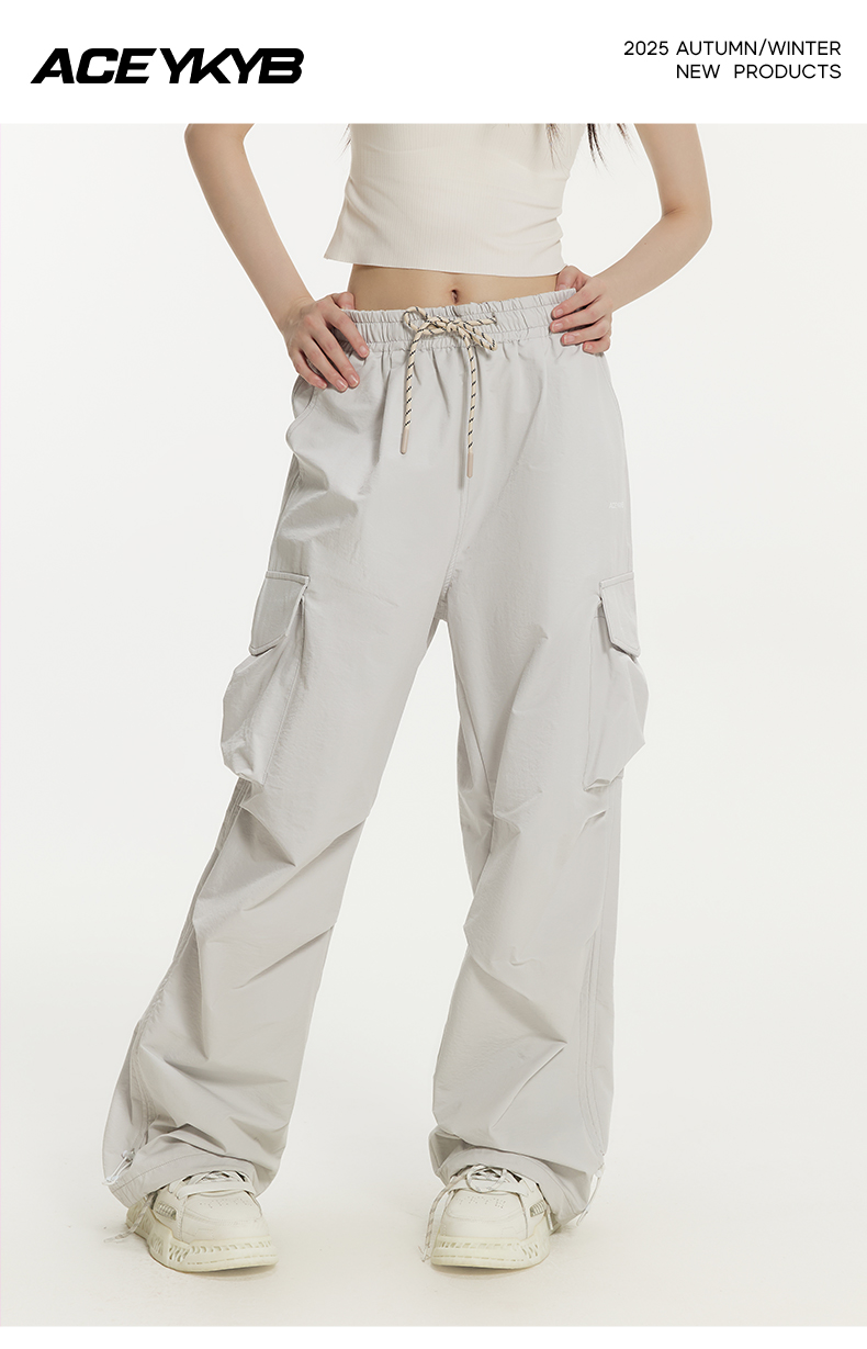 YKYB黄子韬 潮流打褶直筒户外休闲裤 宽松百搭松紧腰薄款工装长裤Y53NXK033