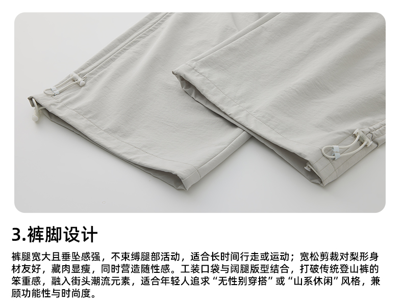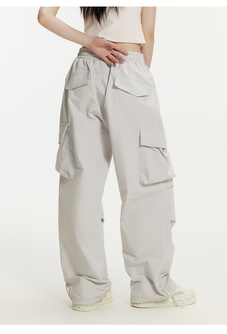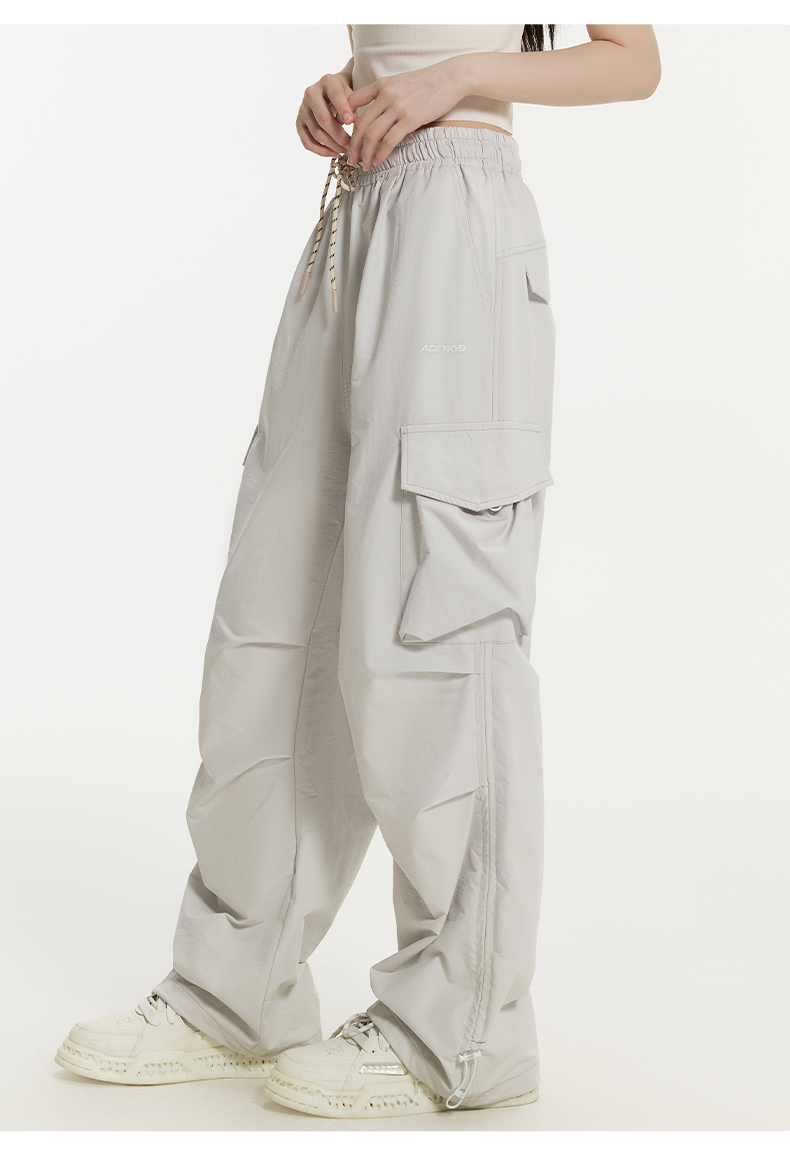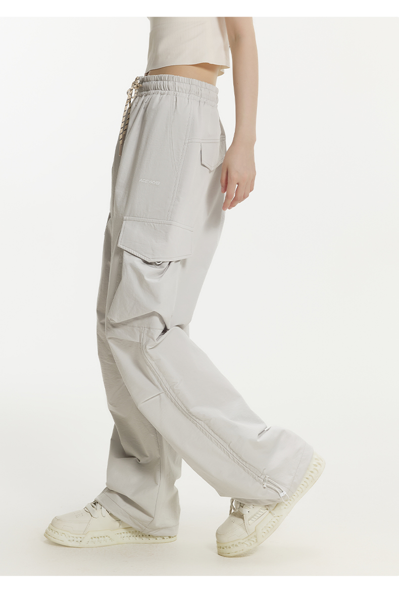 YKYB黄子韬 潮流打褶直筒户外休闲裤 宽松百搭松紧腰薄款工装长裤Y53NXK033