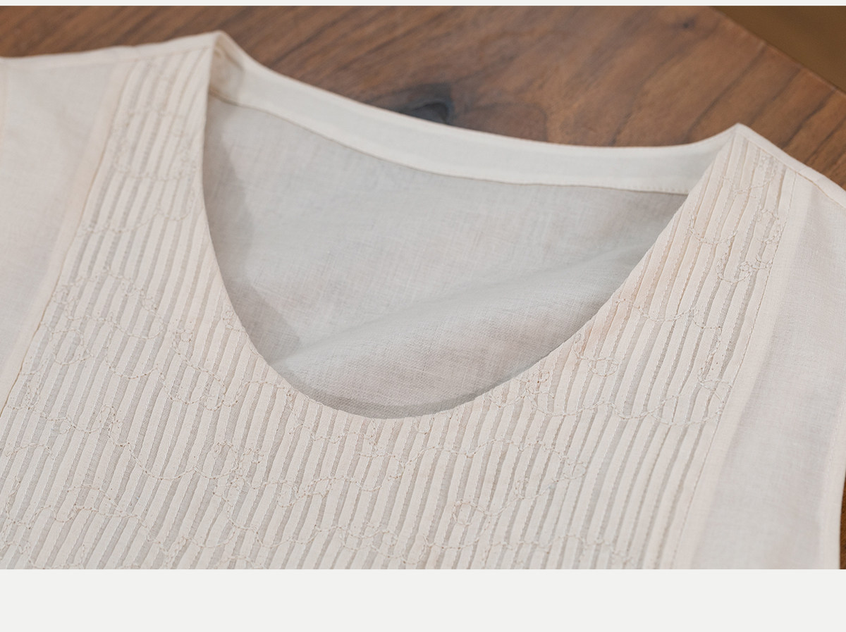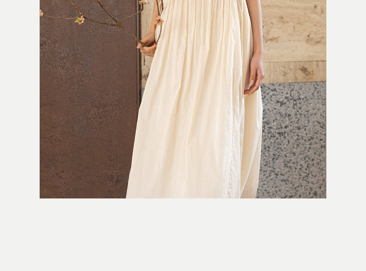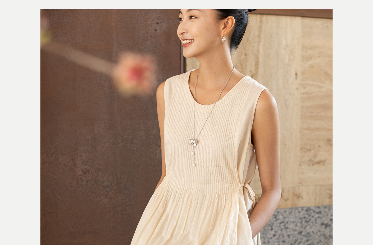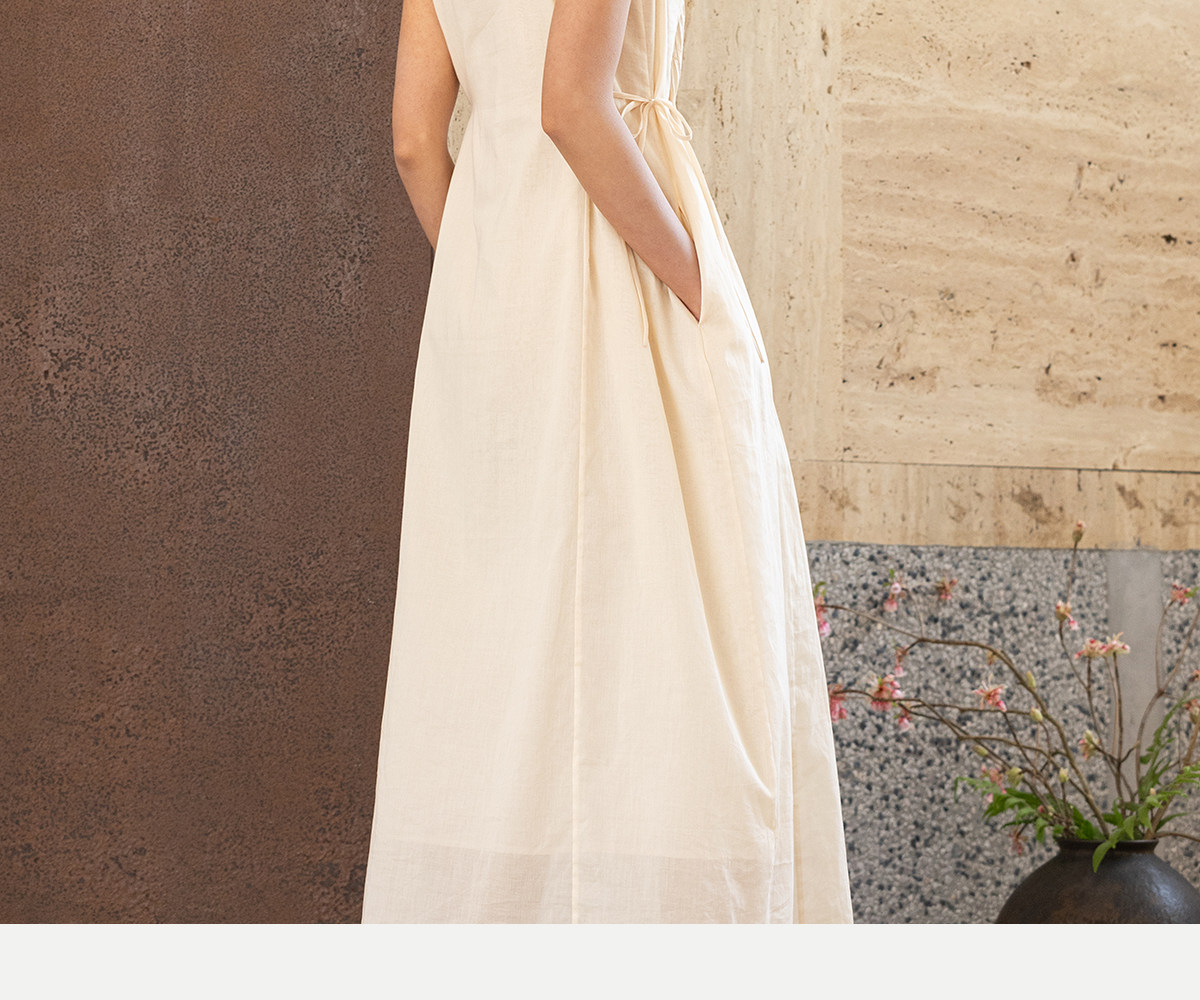 牧衣游原创 100支纯棉净色打条连衣裙女新款气质无袖长裙 花满市