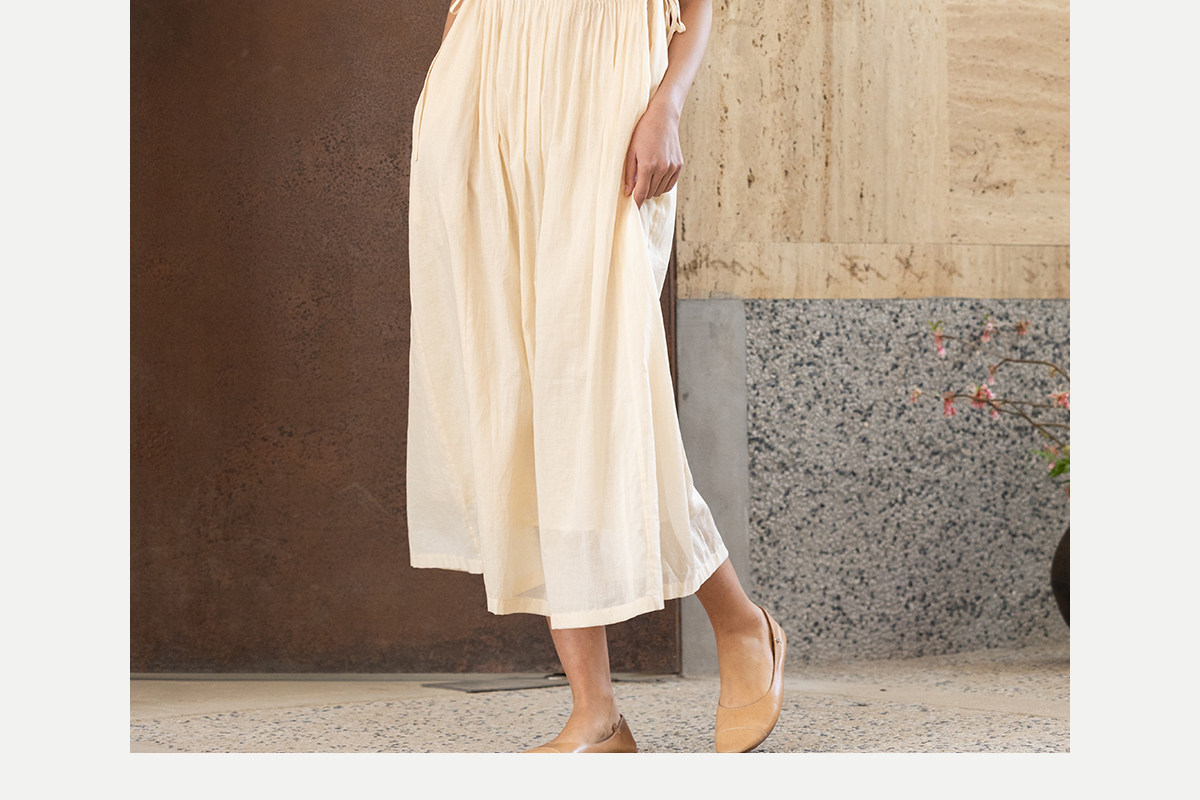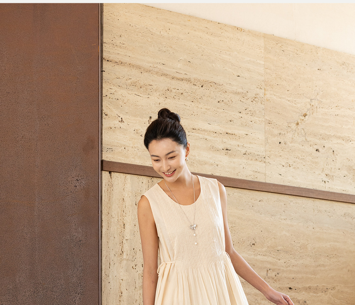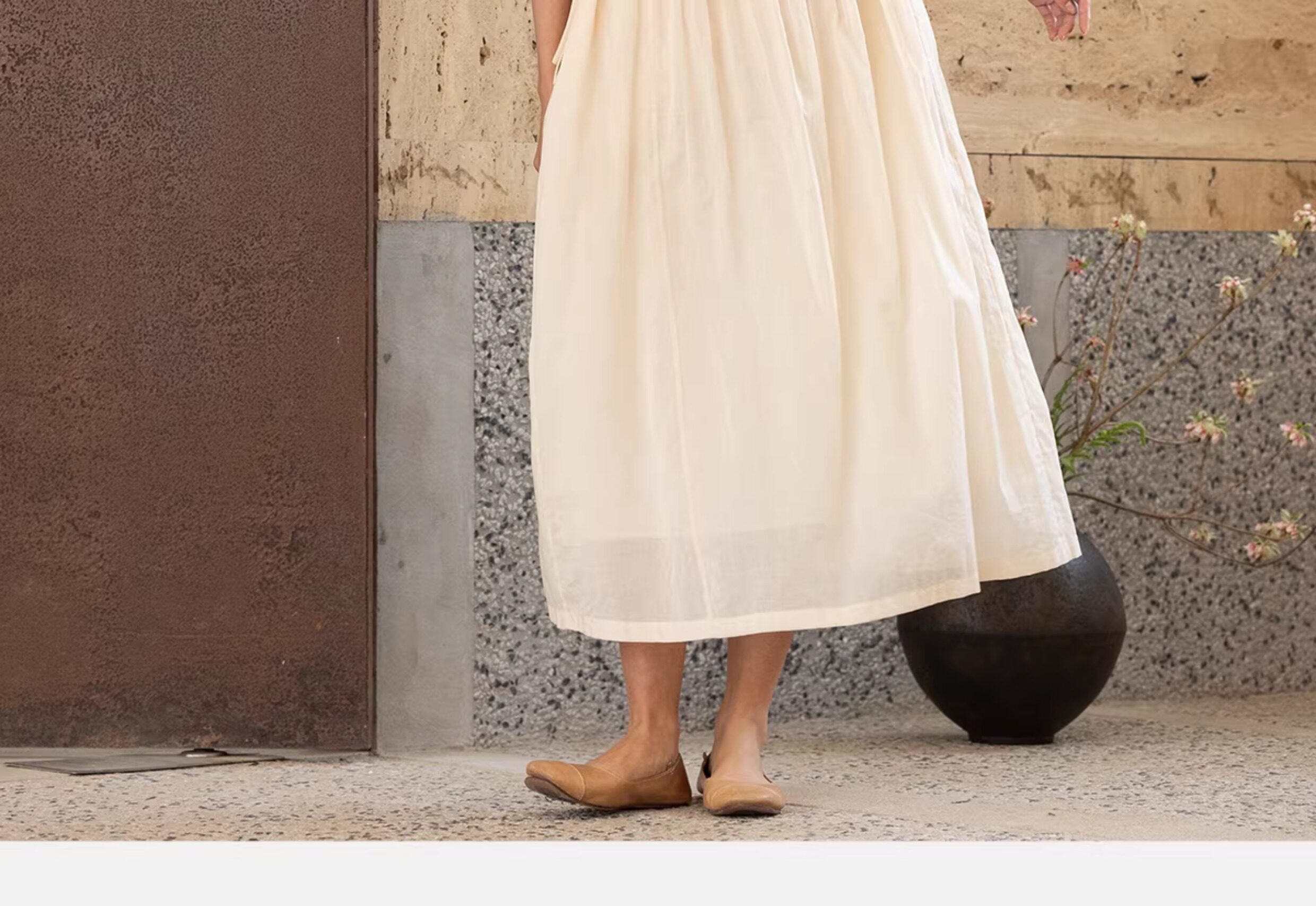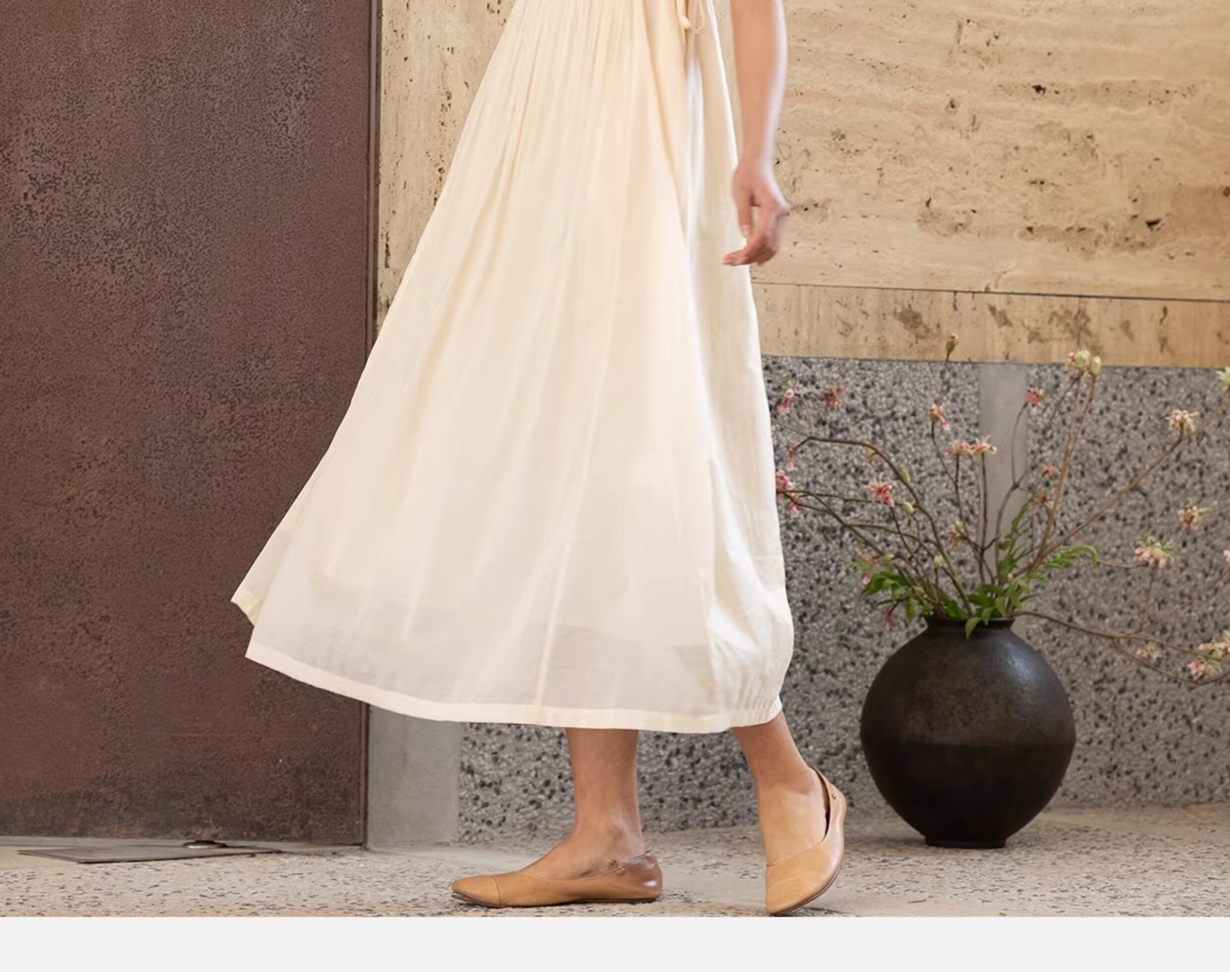 牧衣游原创 100支纯棉净色打条连衣裙女新款气质无袖长裙 花满市
