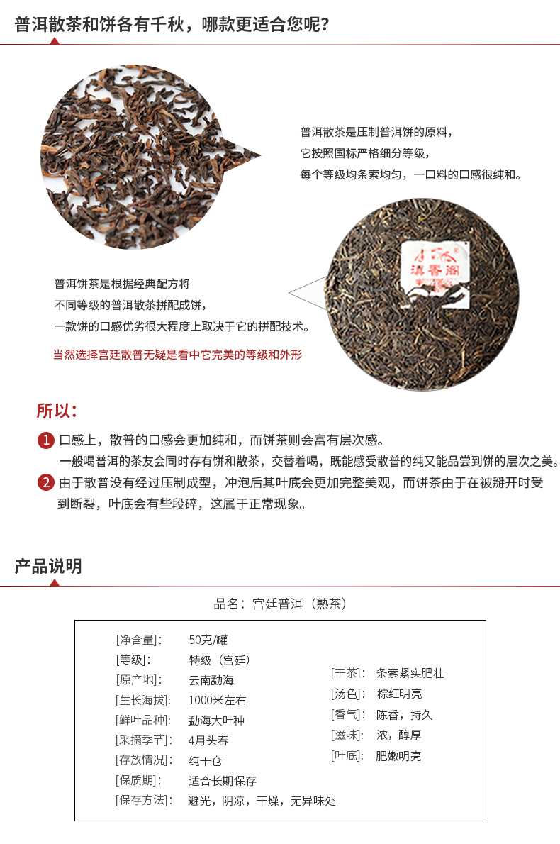 滇香阁 宫廷普洱熟茶 老茶 50克